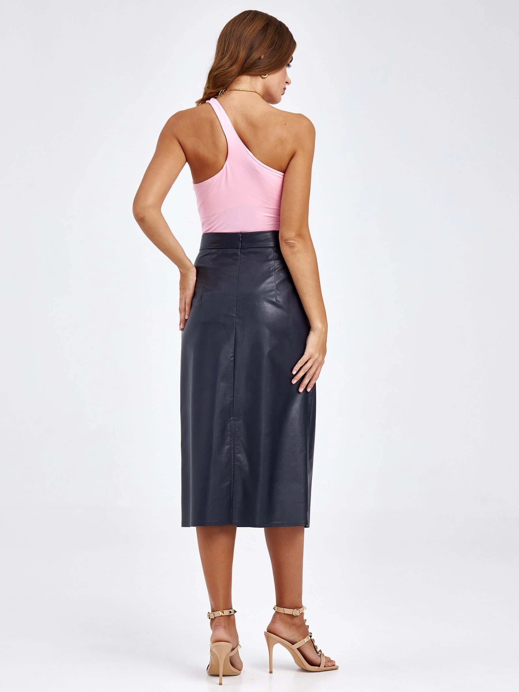 Эта прямая юбка-карандаш из экокожи длиной 73 см — воплощение сдержанной классики и безупречного кроя. Её строгий прямой силуэт элегантно облегает фигуру, создавая вытянутый и лаконичный образ, уместный как в офисе, так и в городе. Модель выполнена в минималистичном дизайне: без отделки и подкладки, что фокусирует внимание на идеальных линиях и гладкой, современной фактуре материала. Застёжка-молния обеспечивает аккуратную посадку, а универсальная длина делает эту юбку идеальной основой для демисезонного гардероба. Сочетайте её с рубашкой и жакетом для делового стиля или с объёмным свитером и кедами для умного кэжуала — она всегда добавит образу собранности и стиля.