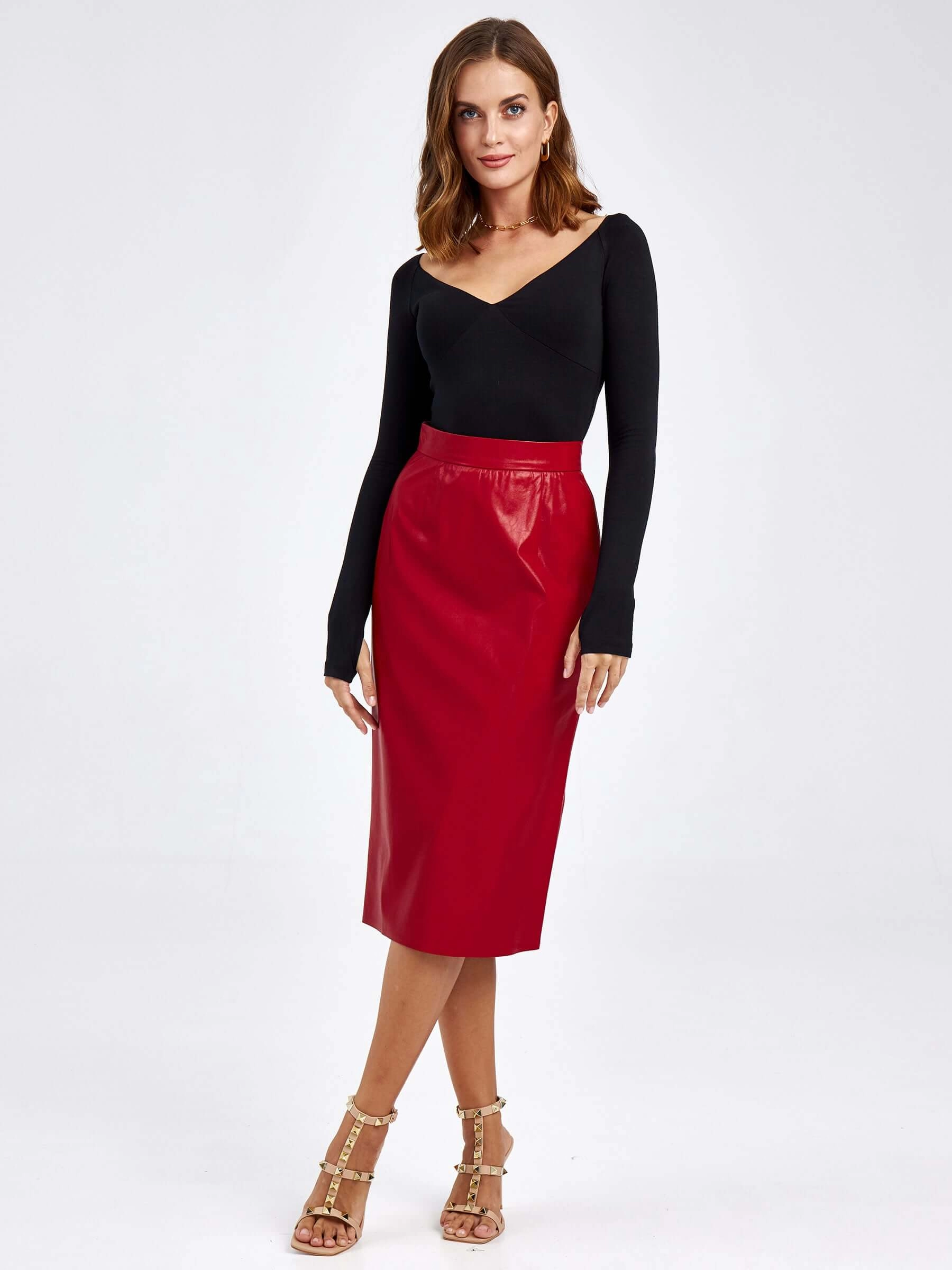 Товар женские кожаная юбка из экокожи 4540009, красная, размер 44, артикул 85740 выполнен из экокожи с застежкой молния. Рассчитан на сезон: демисезон. Длина изделия 73 см, силуэт прямой.