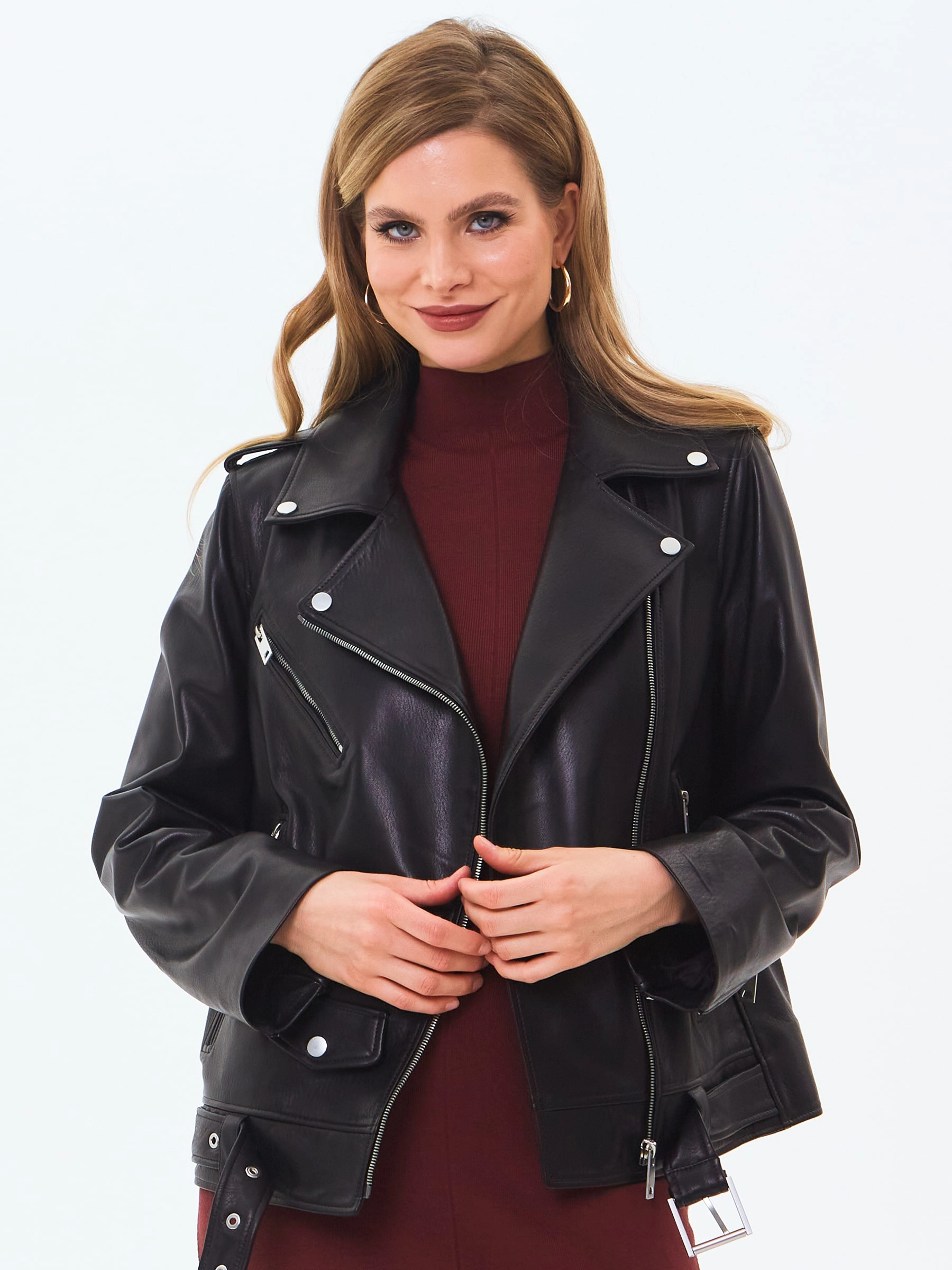 Товар кожаная женская куртка косуха с поясом премиум класса 3078, черная, размер 44, артикул 24510 выполнен из натуральной кожи с застежкой молния. Рассчитан на сезон: весна-лето. Длина изделия 58 см, силуэт прямой.