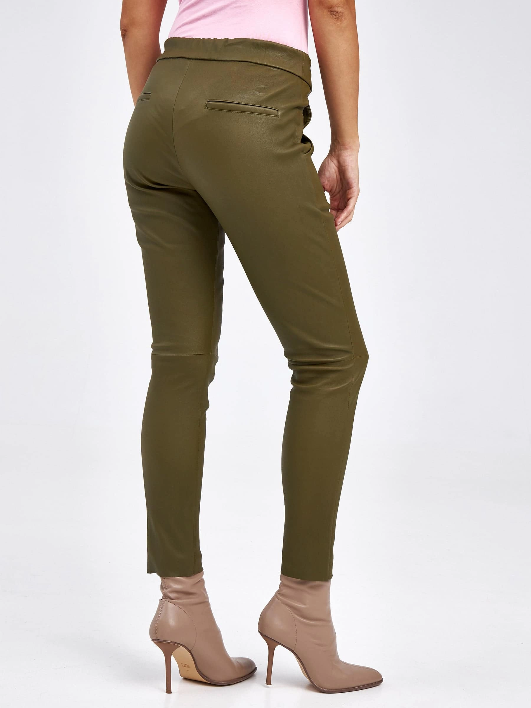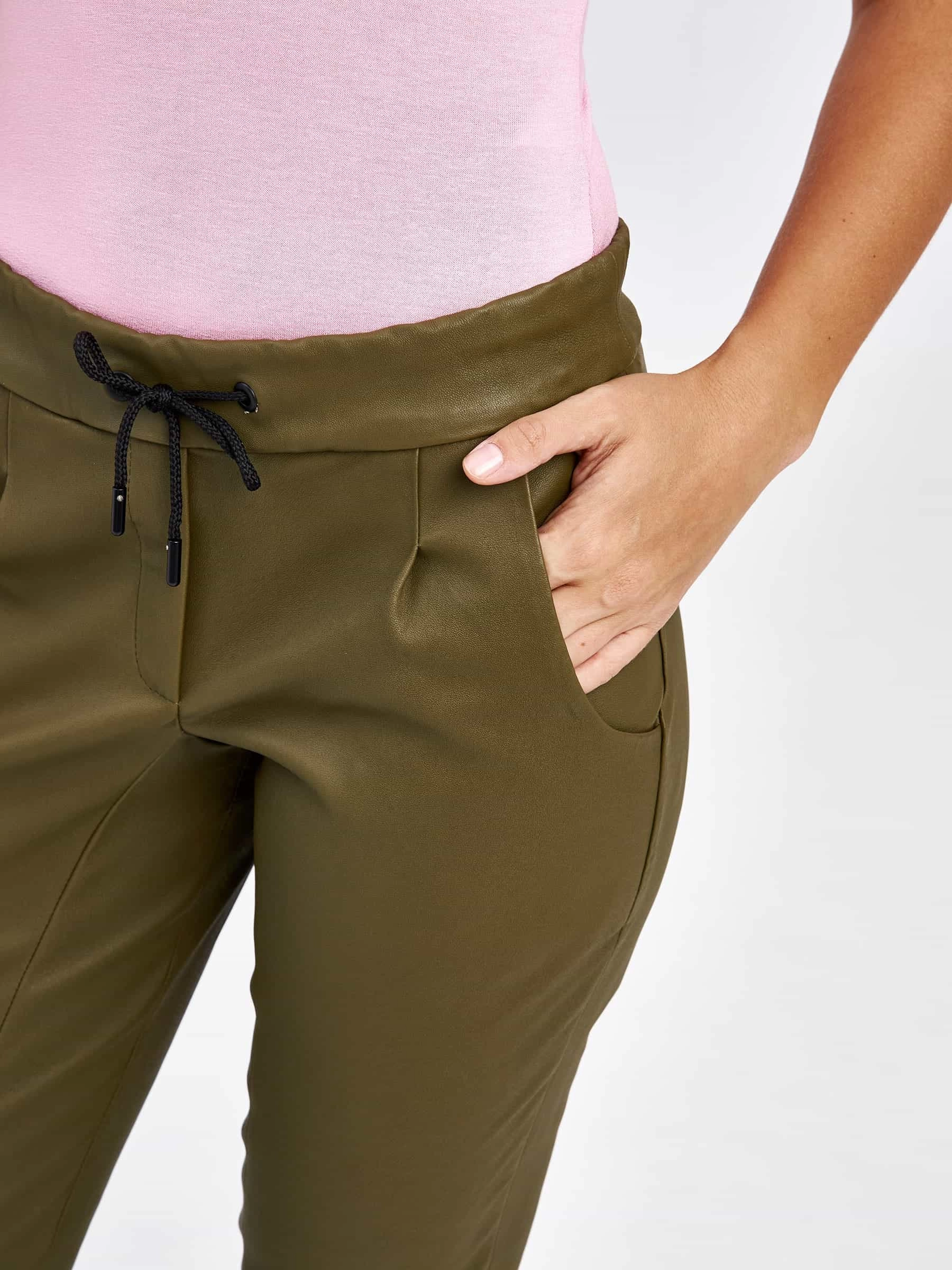 Товар кожаные женские брюки из натуральной кожи 07, хаки, размер 42, артикул 85540 выполнен из натуральной кожи стрейч с застежкой резинка. Рассчитан на сезон: демисезон. Длина изделия свыше 90 см, силуэт облегающий.