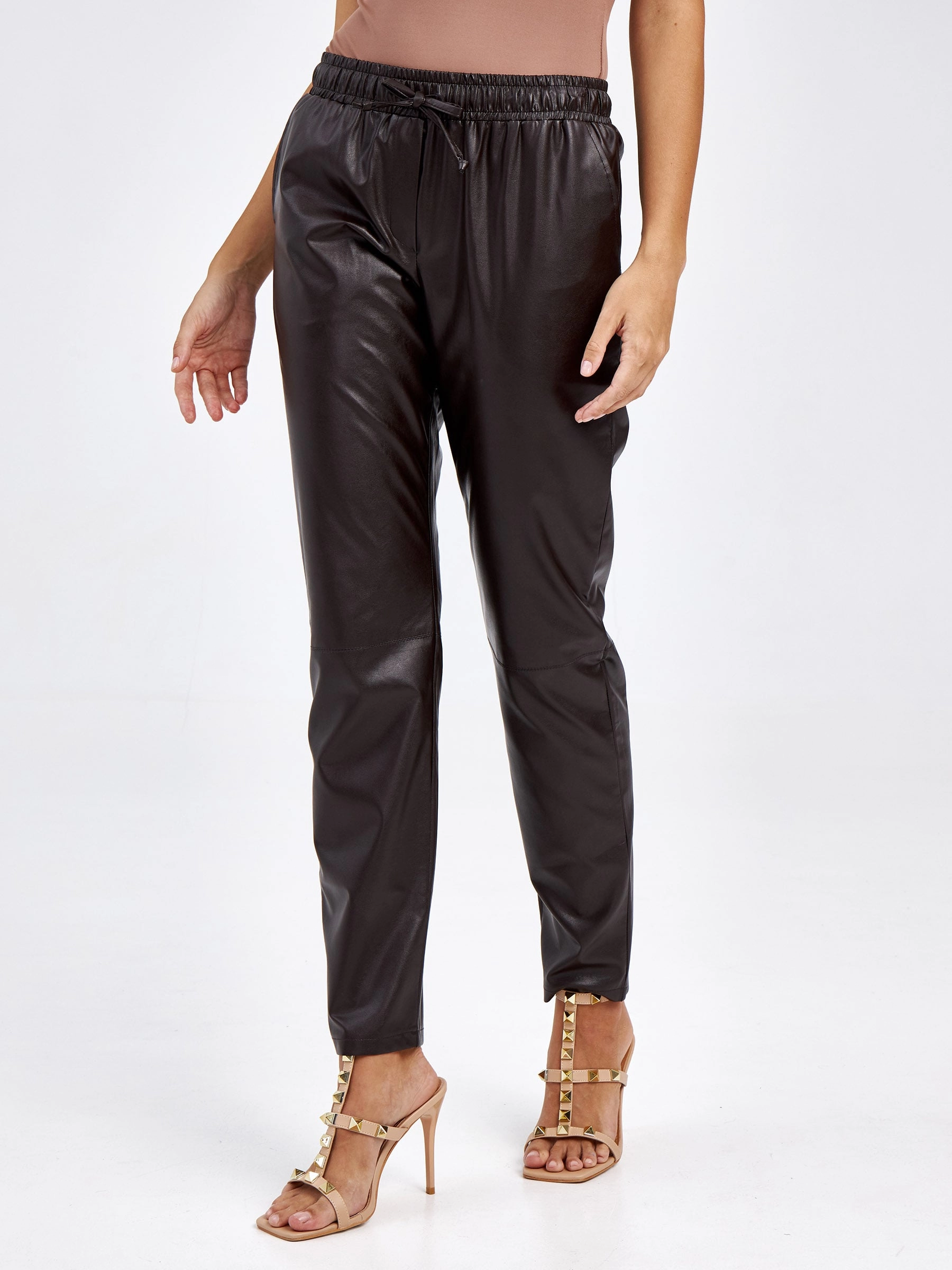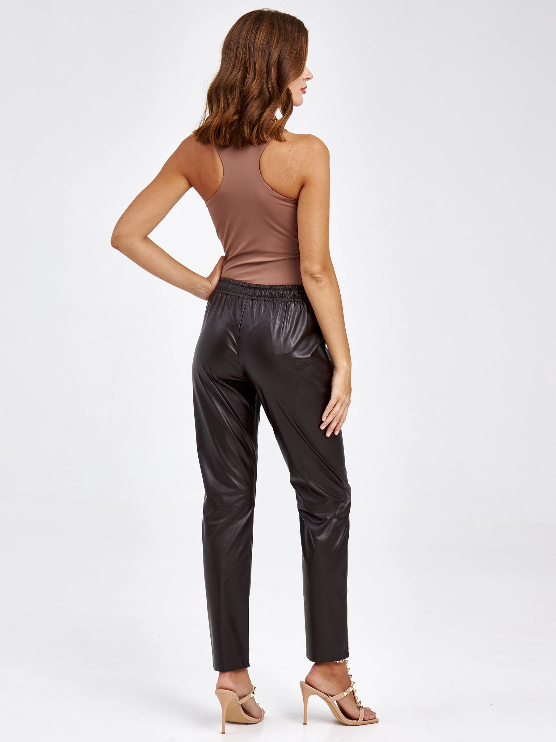 Товар женские кожаные брюки из экокожи 4616633, коричневые, размер 44, артикул 85640 выполнен из экокожи с застежкой резинка. Рассчитан на сезон: демисезон. Длина изделия свыше 90 см, силуэт свободный.