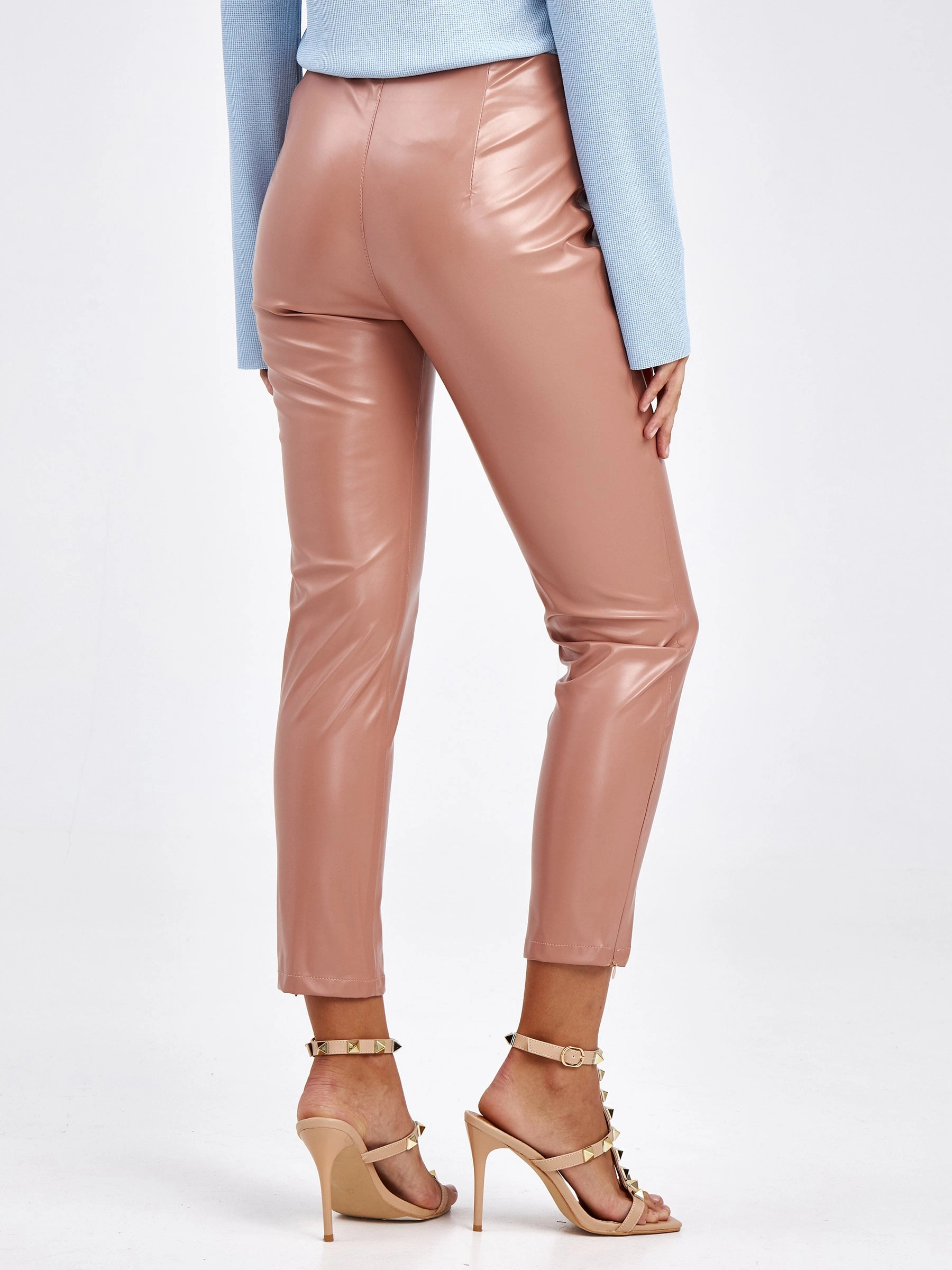 Кожаные женские брюки из экокожи 4820734, пудровые, размер 42, артикул 85670