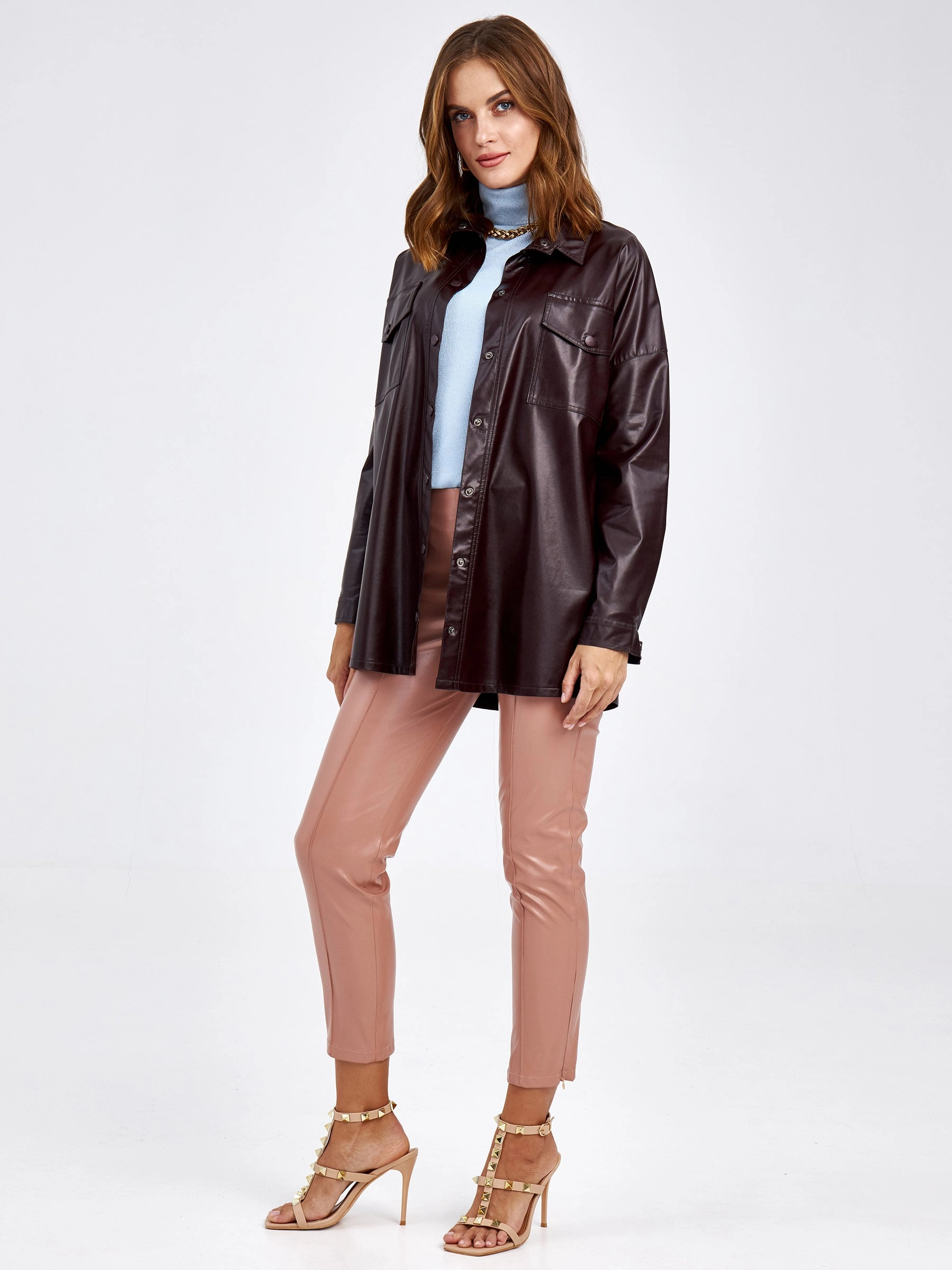 Товар кожаные женские брюки из экокожи 4820734, пудровые, размер 42, артикул 85670 выполнен из экокожи с застежкой молния. Рассчитан на сезон: демисезон. Длина изделия свыше 90 см, силуэт облегающий.