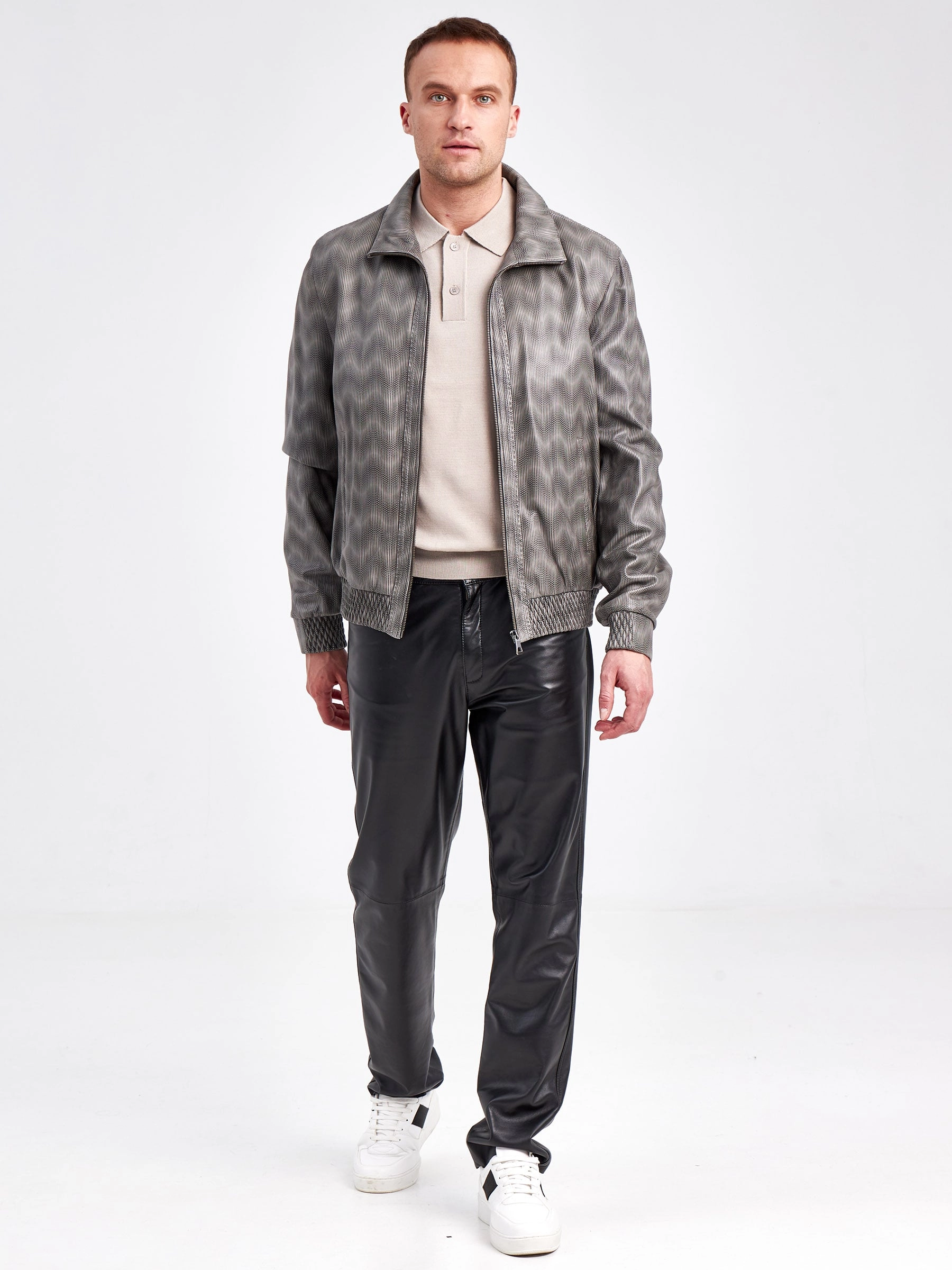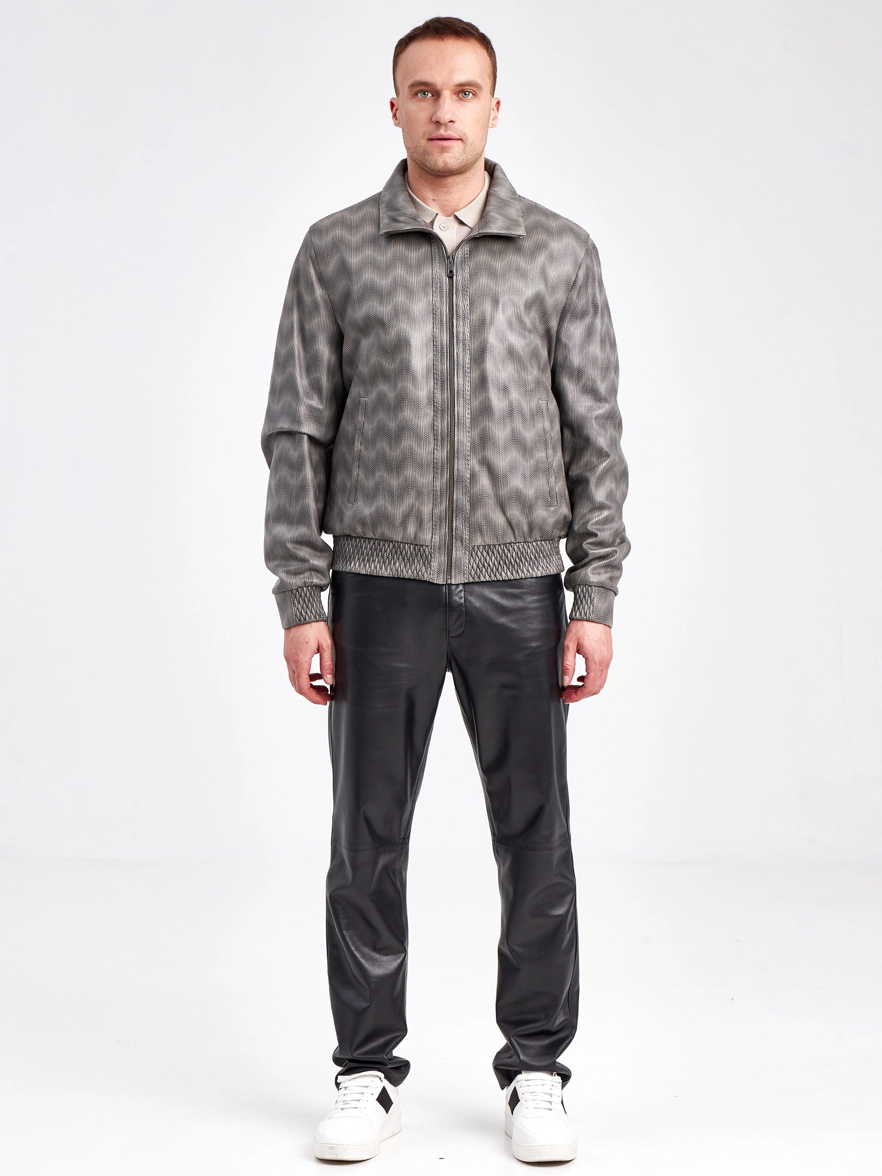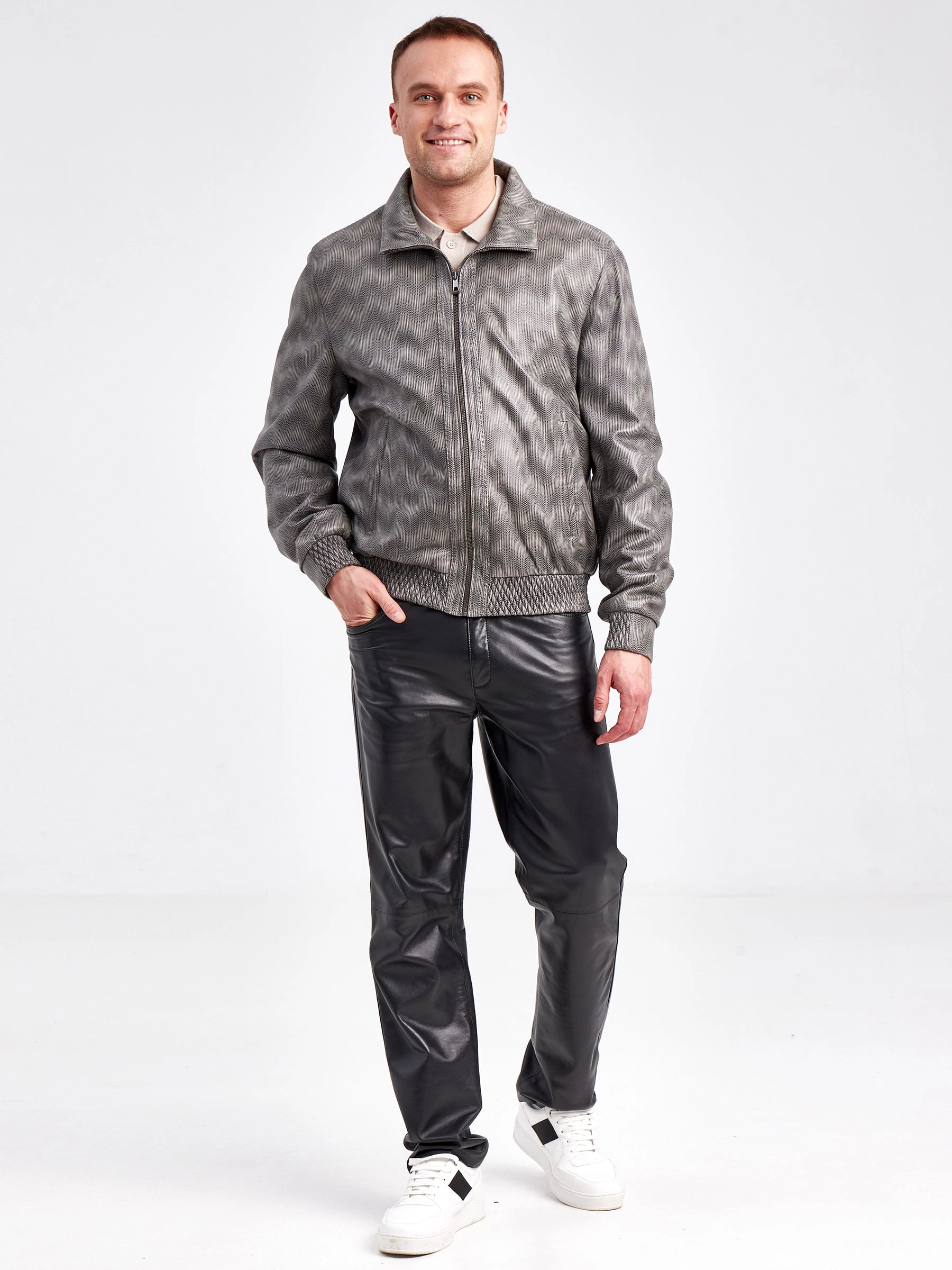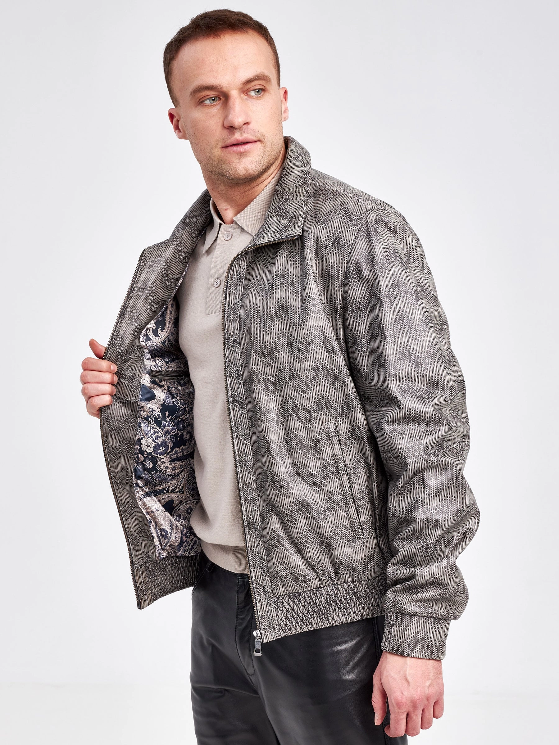 Кожаная куртка бомбер мужская Snake, серая, размер 52, артикул 29500