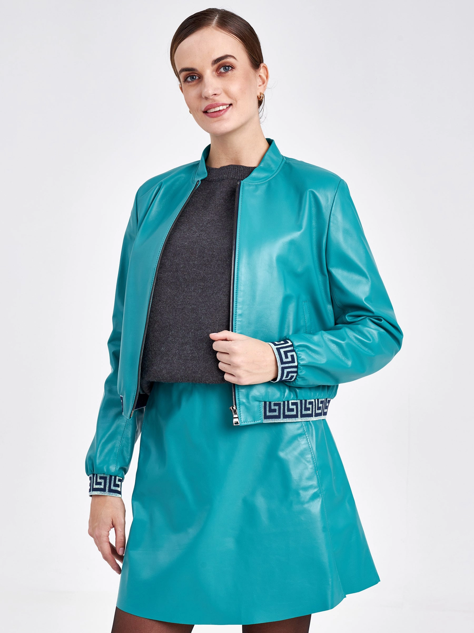 Кожаная куртка бомбер женская 3001, бирюзовый, размер 46, артикул 23070