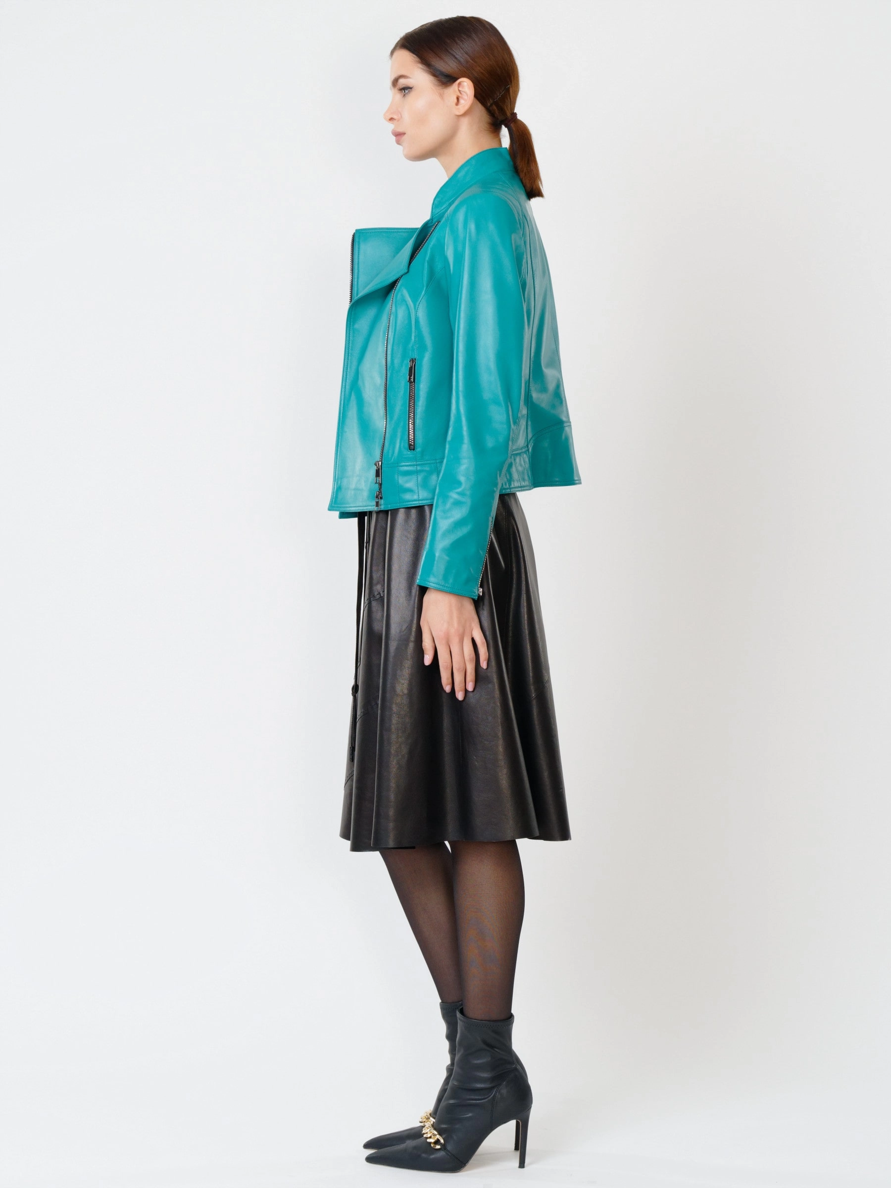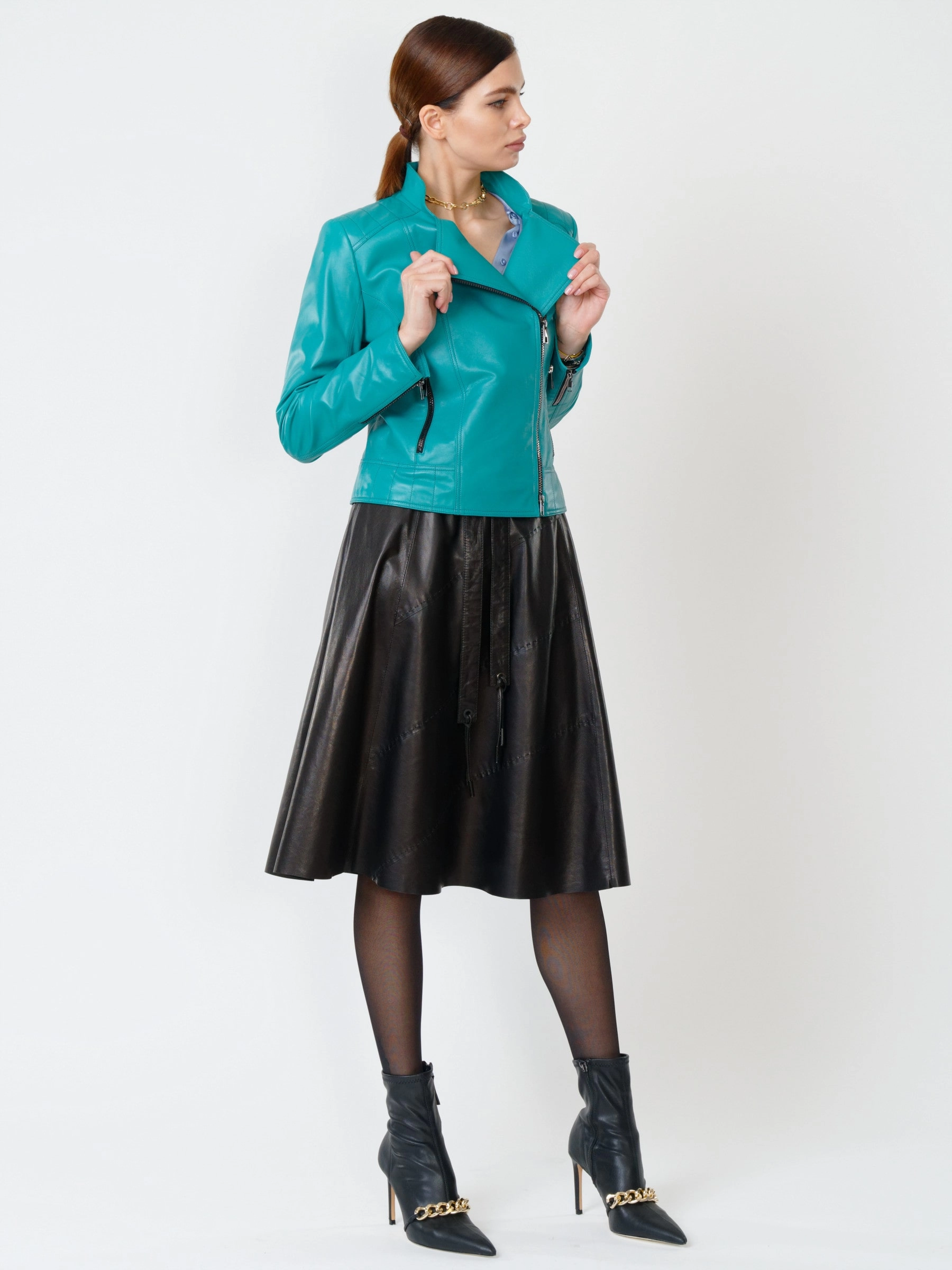 Кожаный комплект женский: Куртка 300 + Юбка 01рс, бирюзовый/черный, р. 44, арт. 111172
