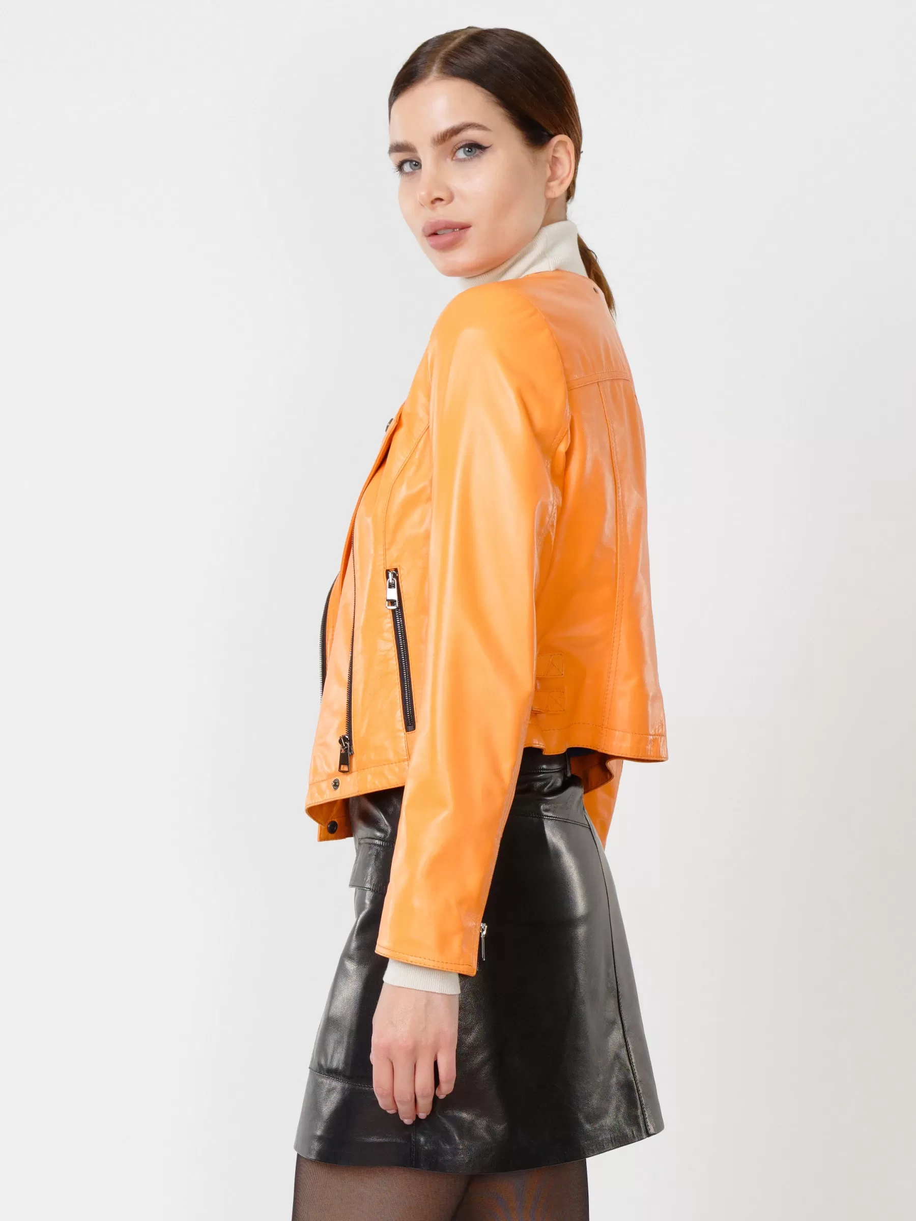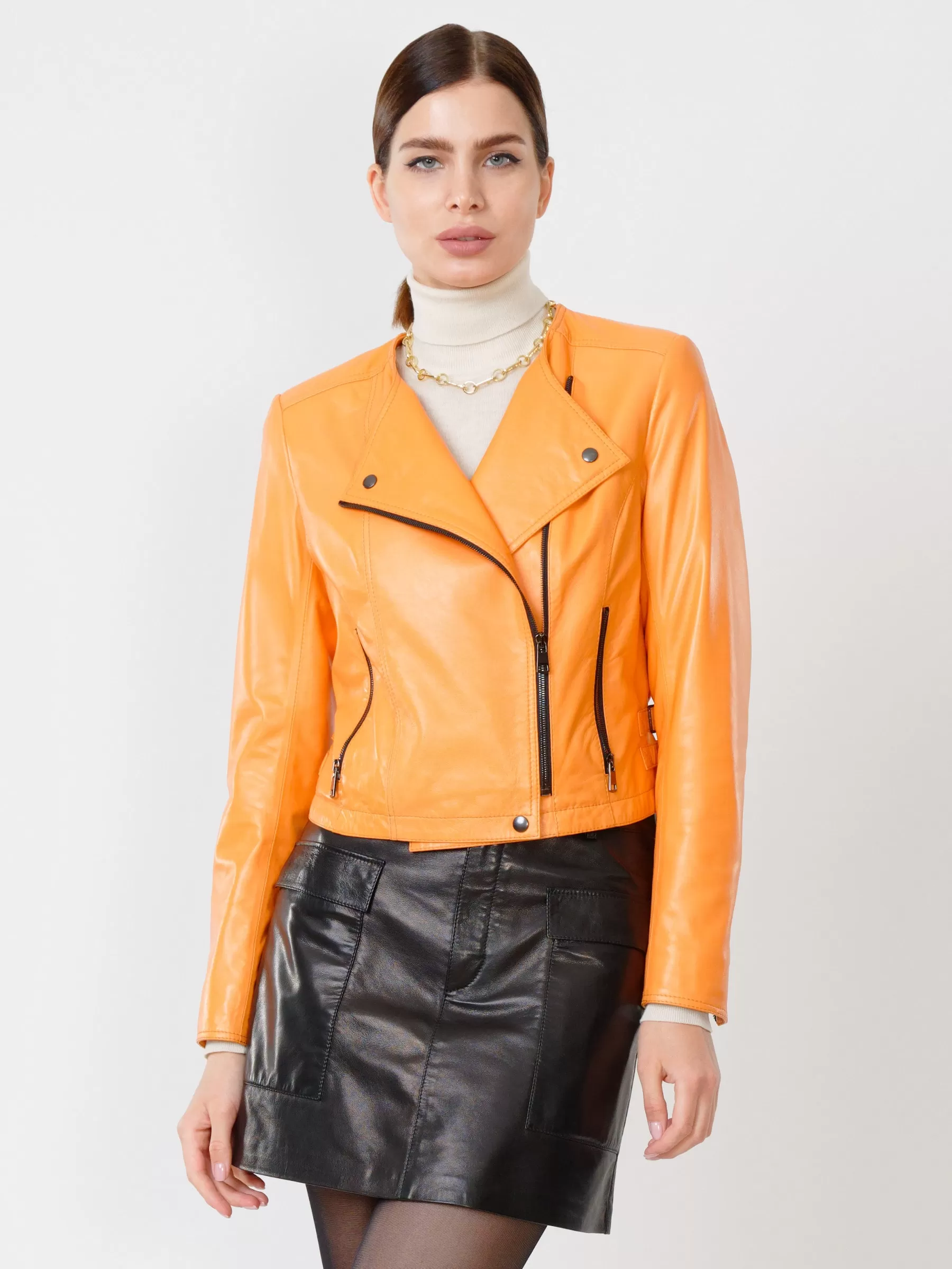 Товар кожаный комплект женский: куртка 389 + мини-юбка 03, оранжевый/черный, р. 42, арт. 111114. Рассчитан на сезон: весна-лето.