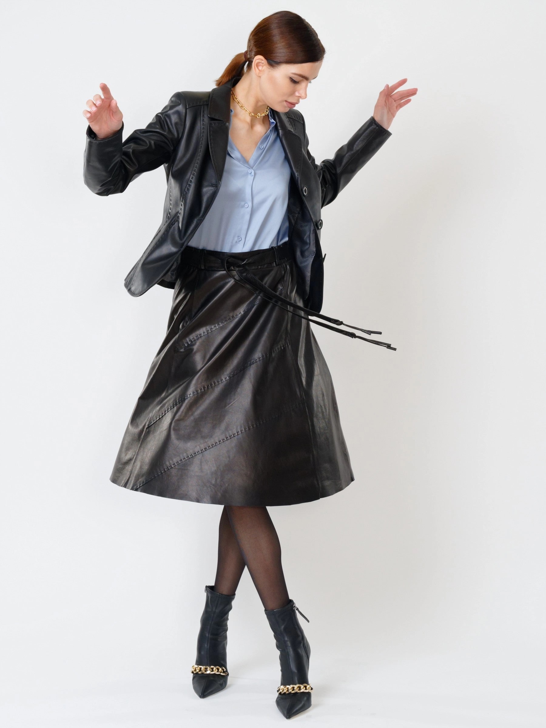 Товар кожаный костюм женский: пиджак 316рс + юбка 01рс, черный, р. 44, арт. 111150. Рассчитан на сезон: весна-лето.