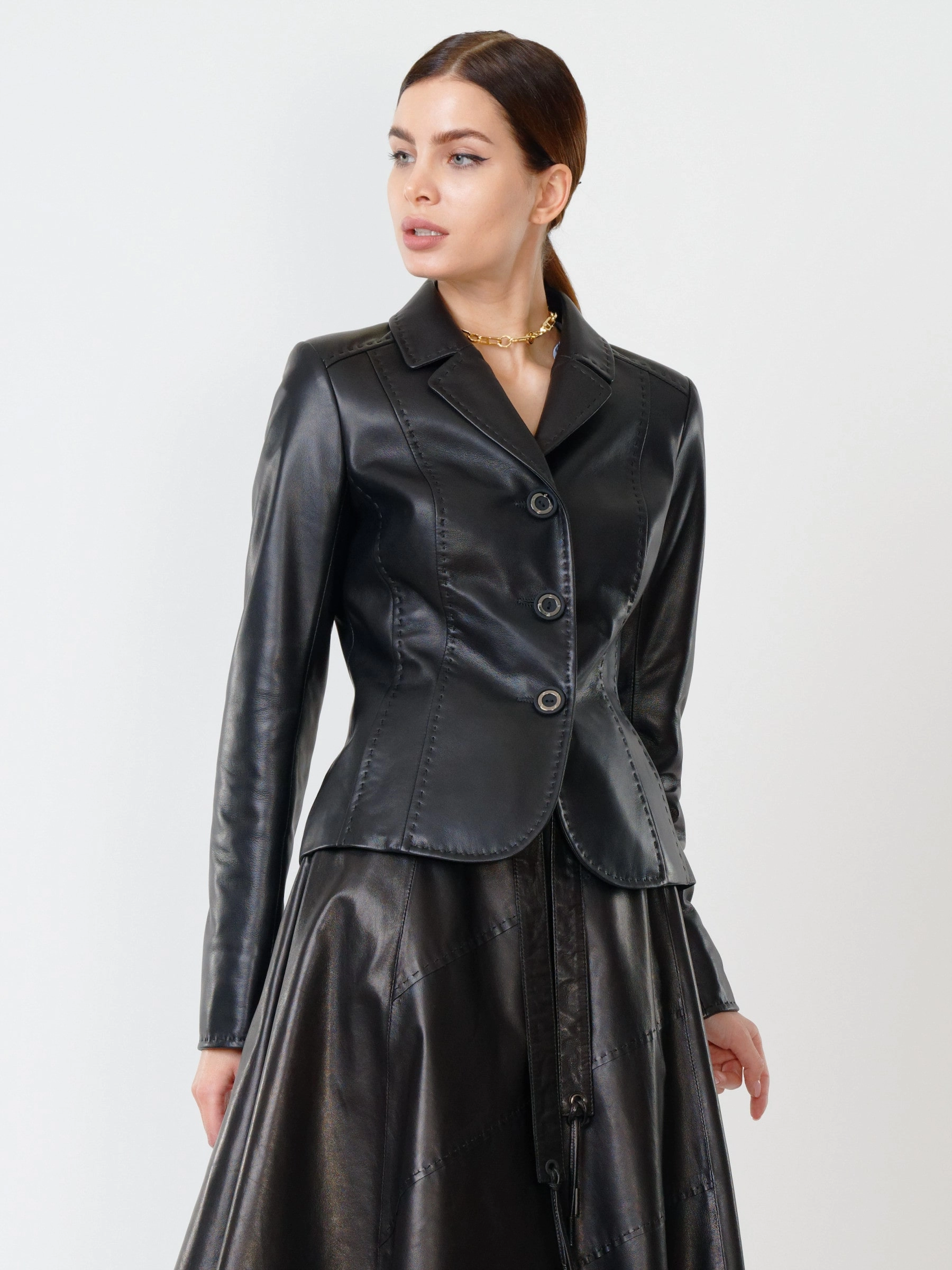 Кожаный костюм женский: Пиджак 316рс + Юбка 01рс, черный, р. 44, арт. 111150