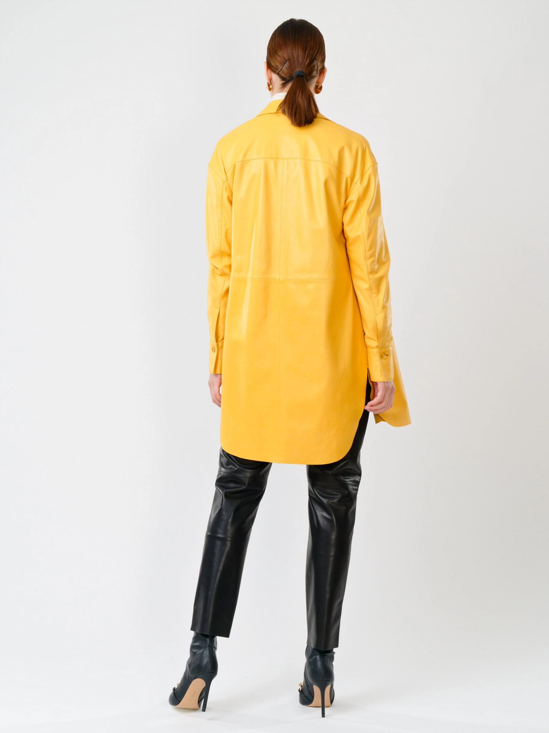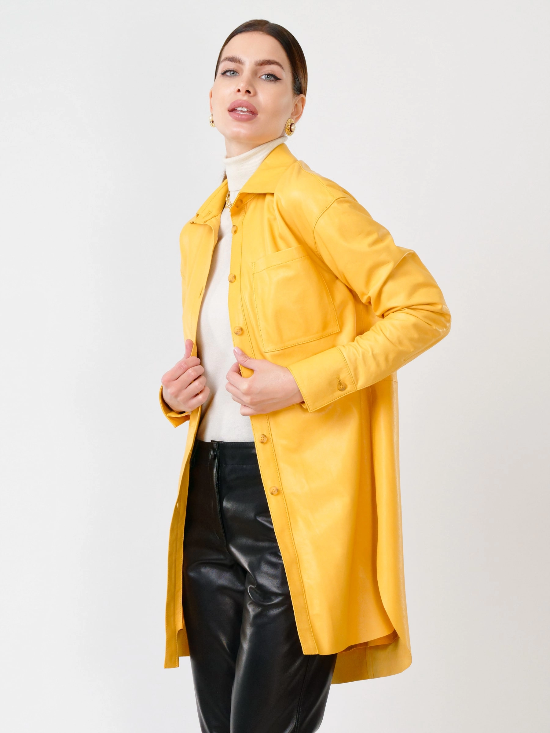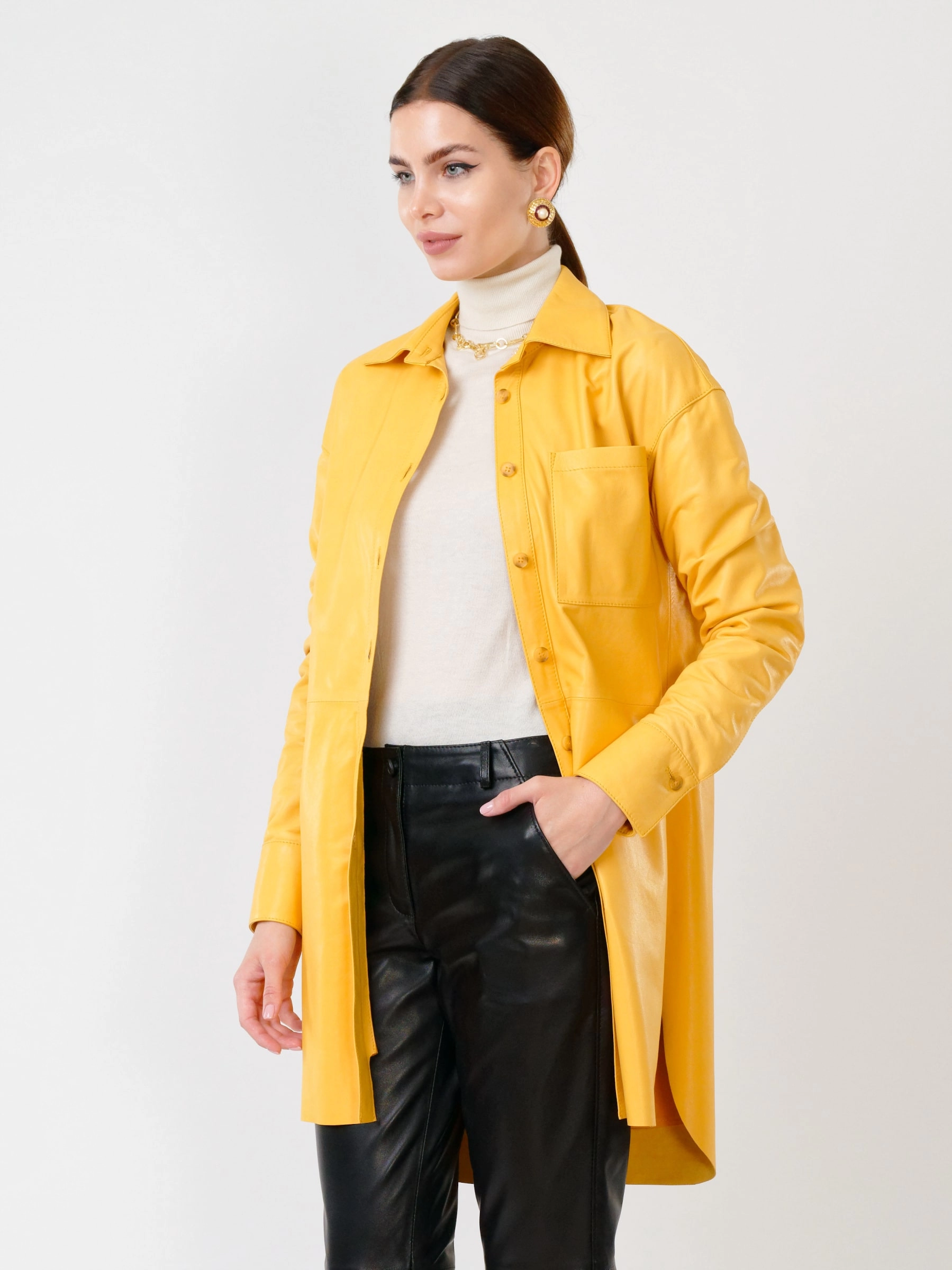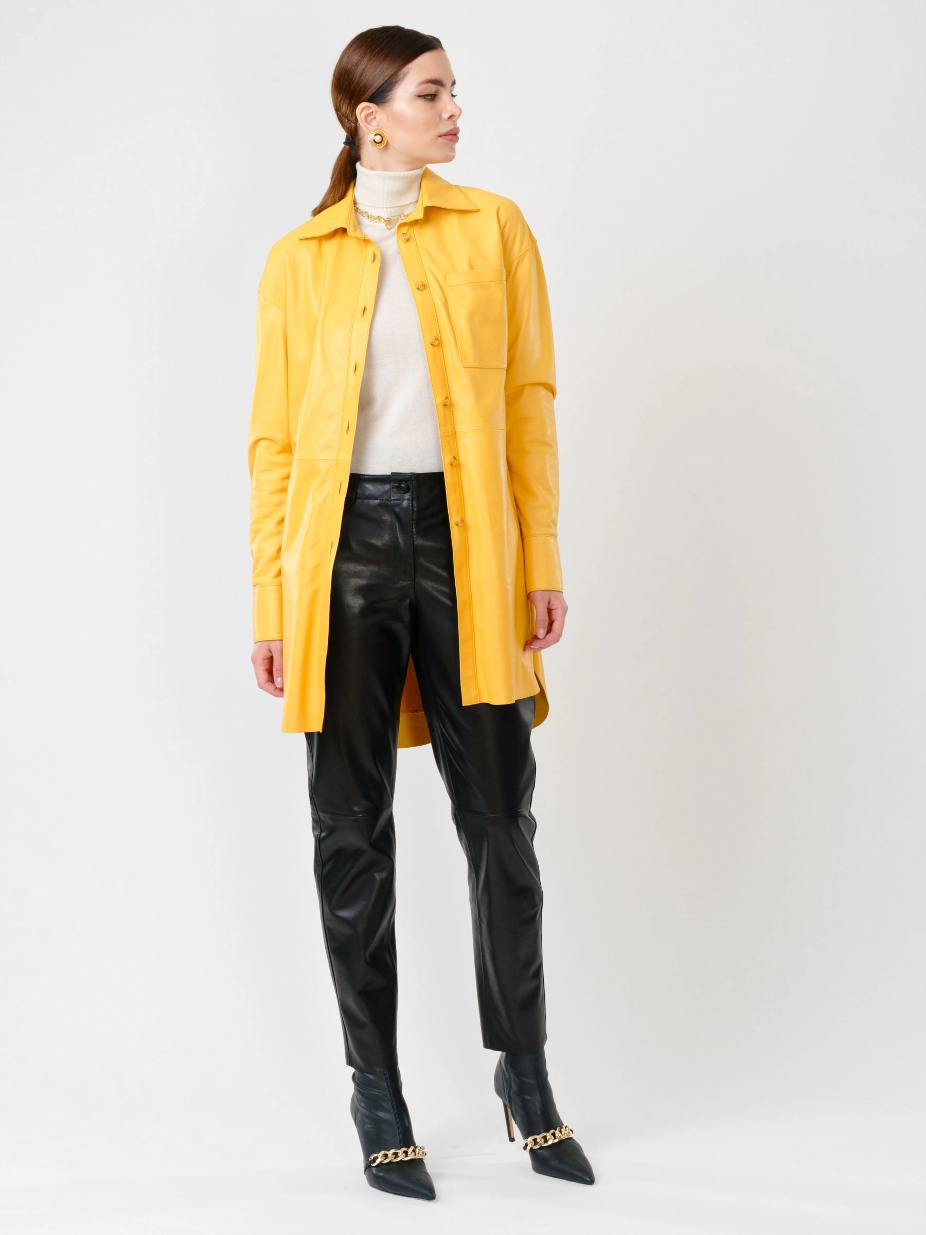 Кожаный костюм женский: Рубашка 01_1 + Брюки 03, желтый/черный, р. 46, арт. 111129