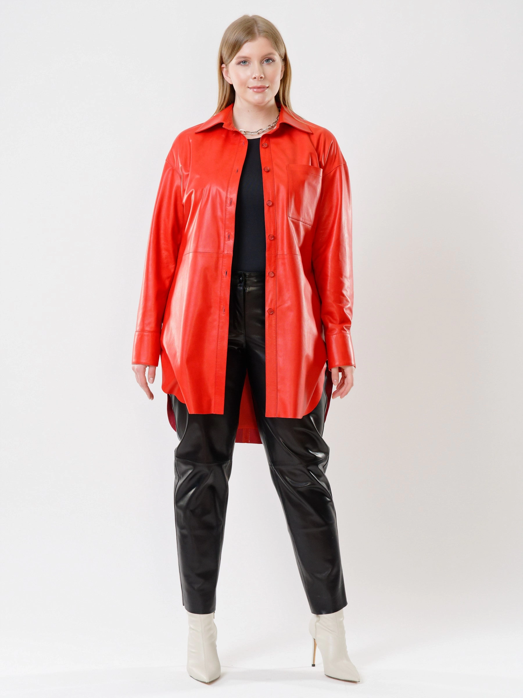 Составить актуальный лук с рубашкой из нежнейшей натуральной органической кожи и с модными брюками, что может быть проще? Такой дуэт идеально впишется в повседневный или офисный комплект. Идеальное качество. Превосходная посадка по фигуре.