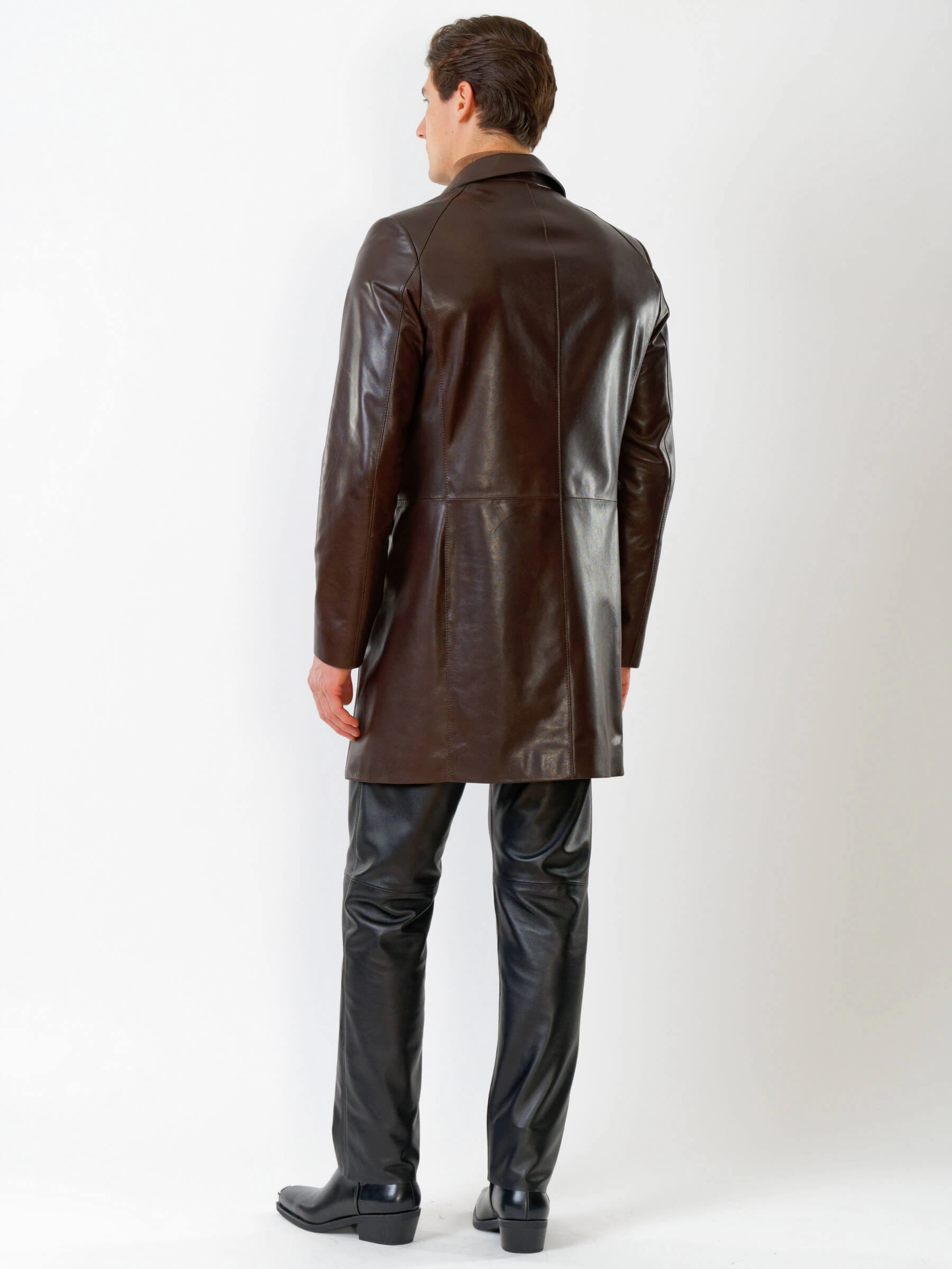 Удлиненный кожаный мужской пиджак премиум класса 539, коричневый, размер 50, артикул 29540