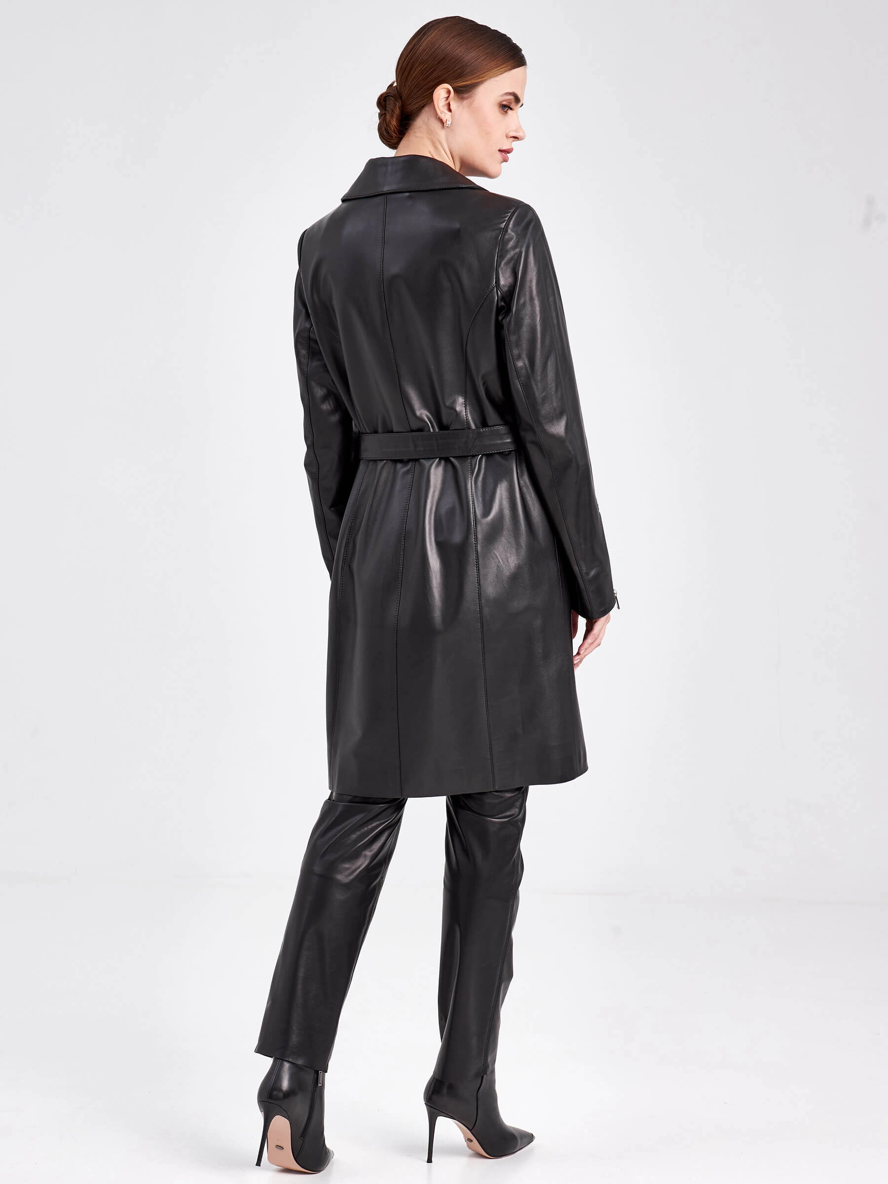 Кожаный женский плащ косуха с поясом 3017, черный, размер 48, артикул 91760