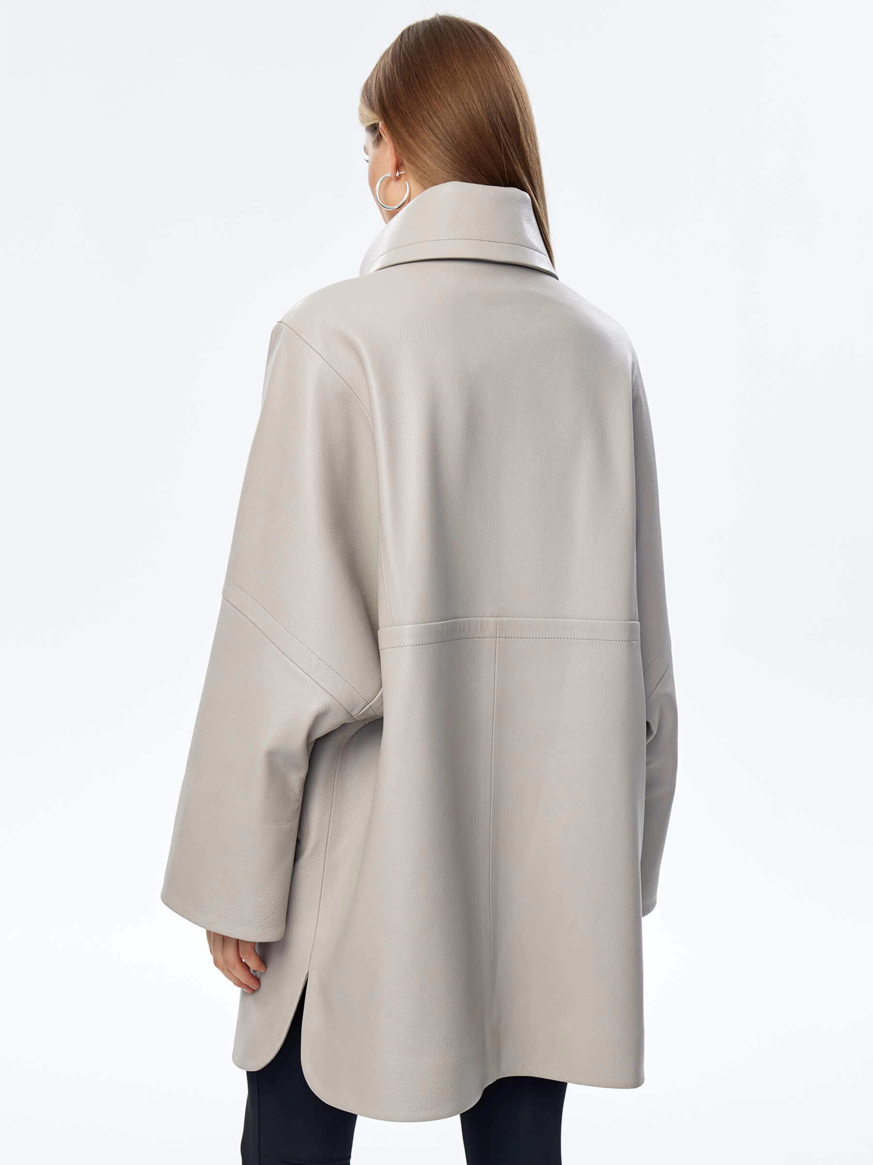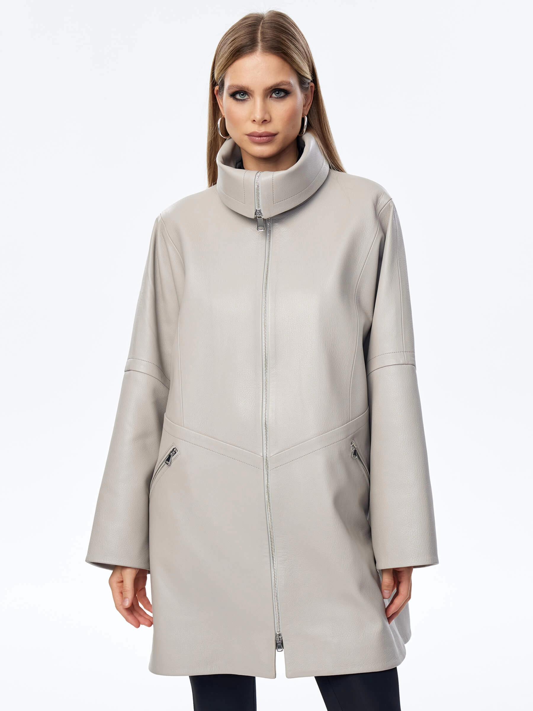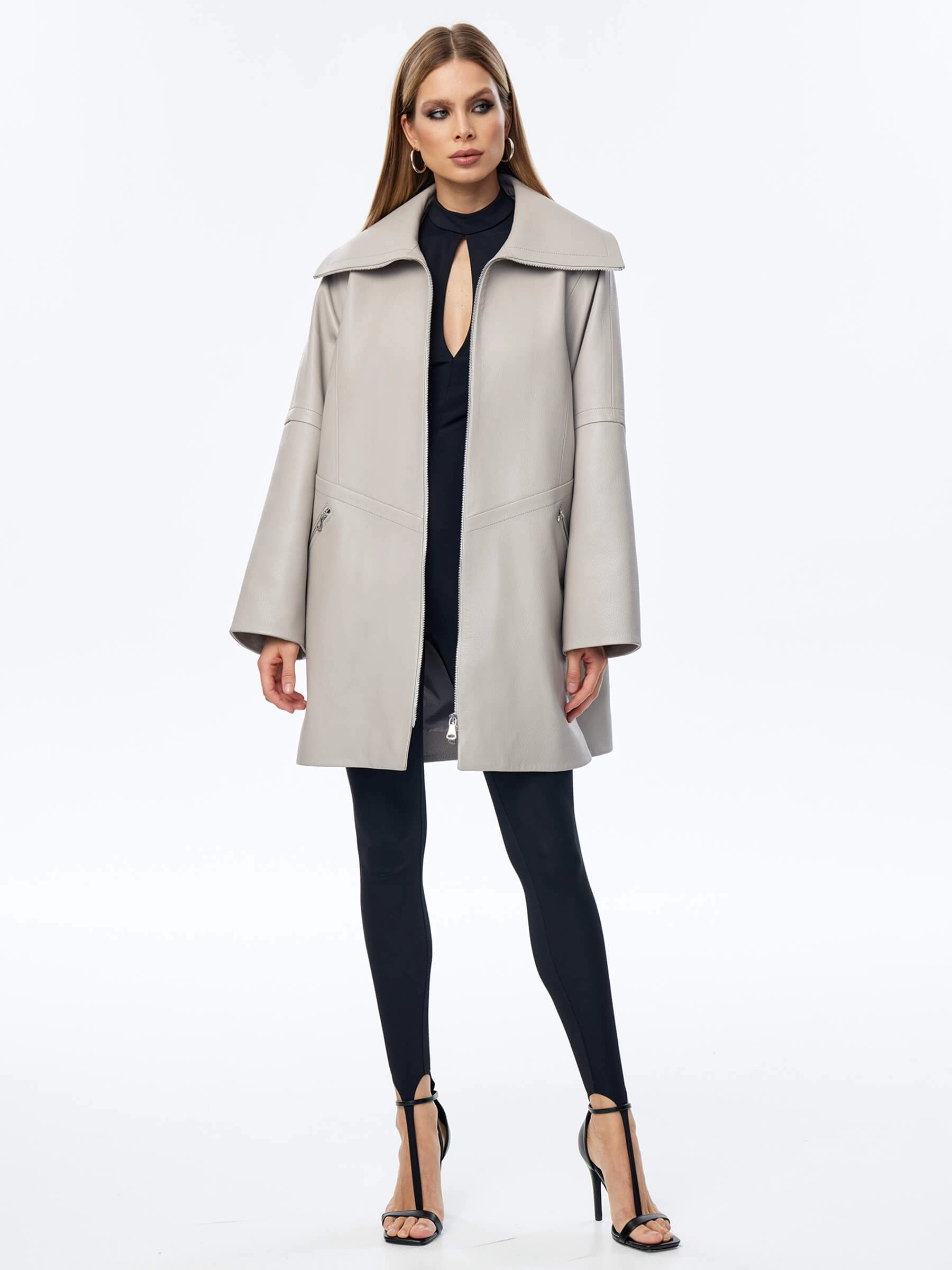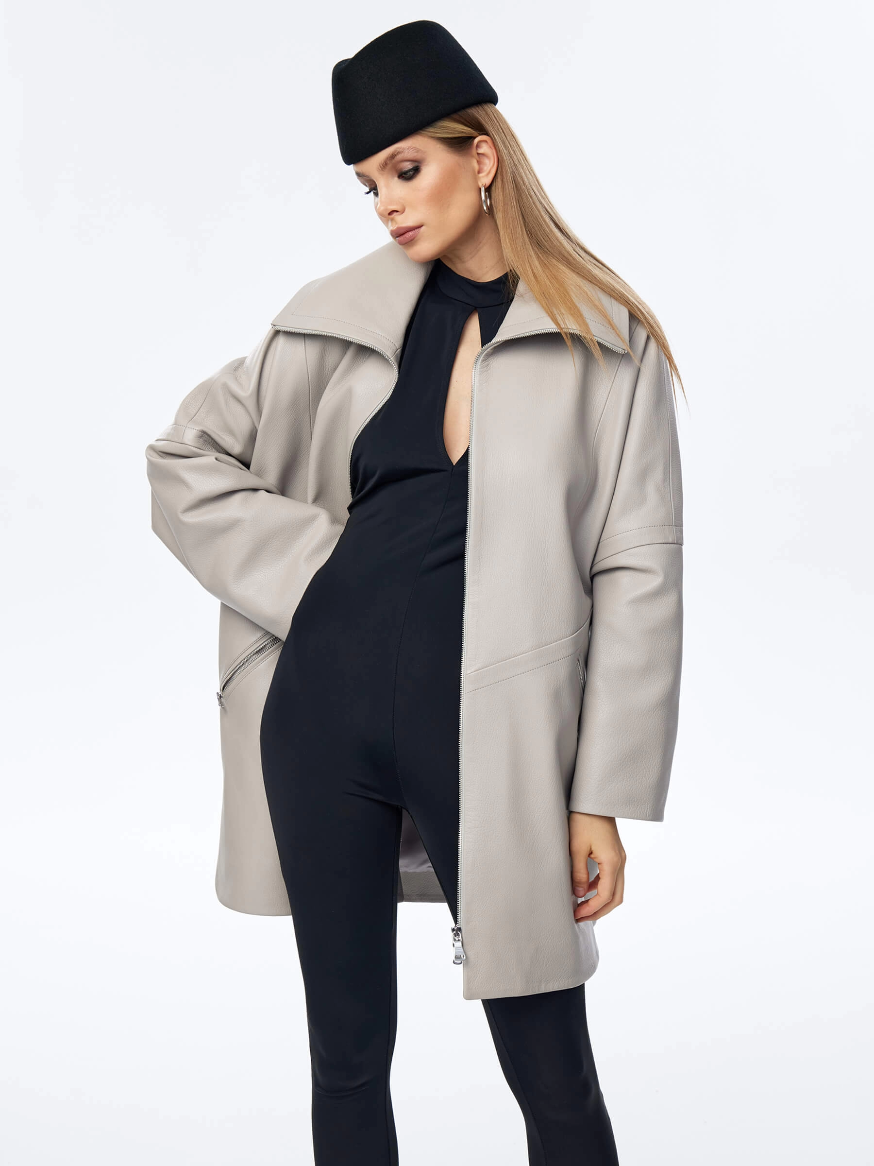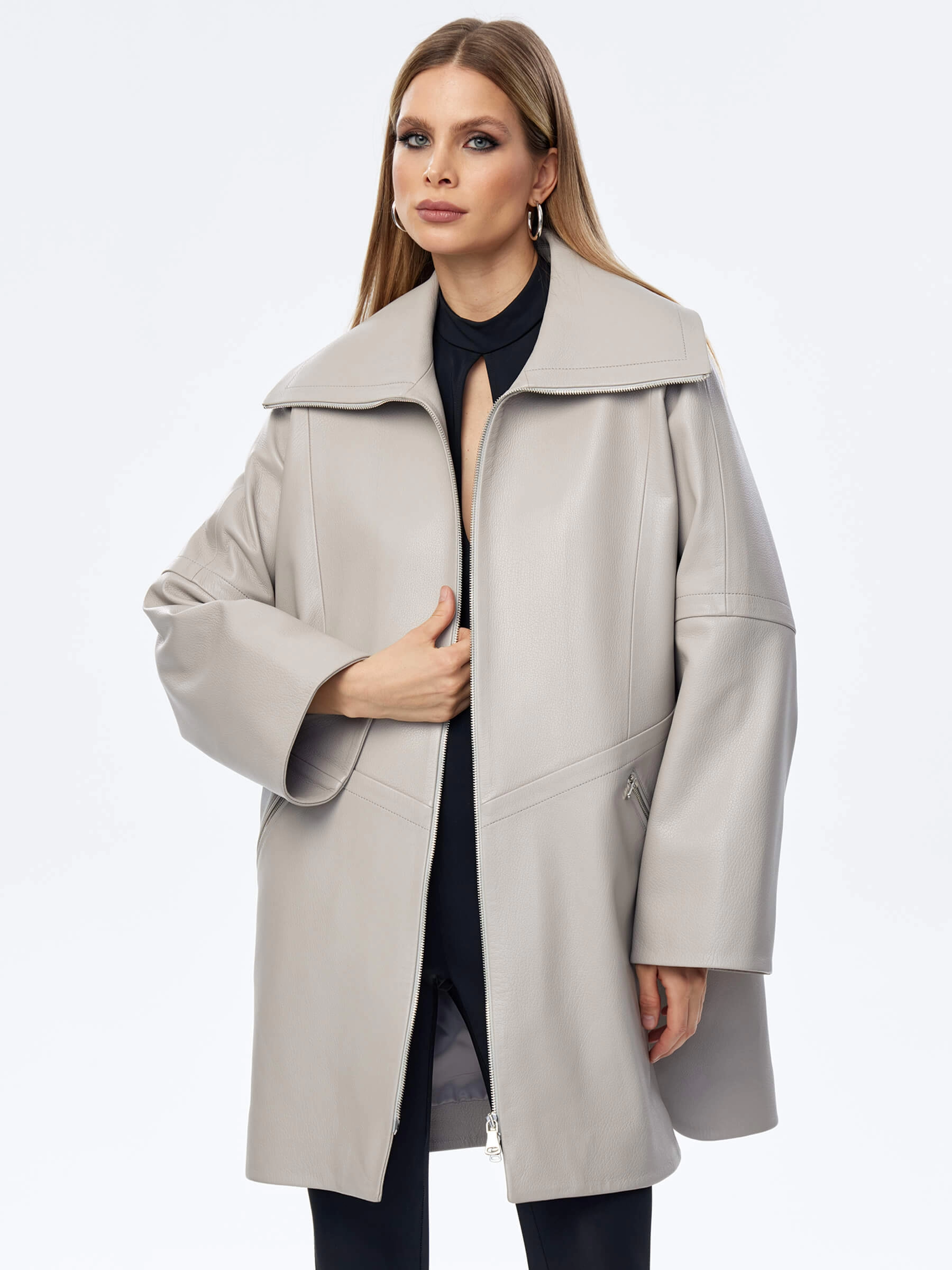 Кожаный плащ оверсайз на молнии для женщин премиум класса 3057, серый, размер 52, артикул 23540