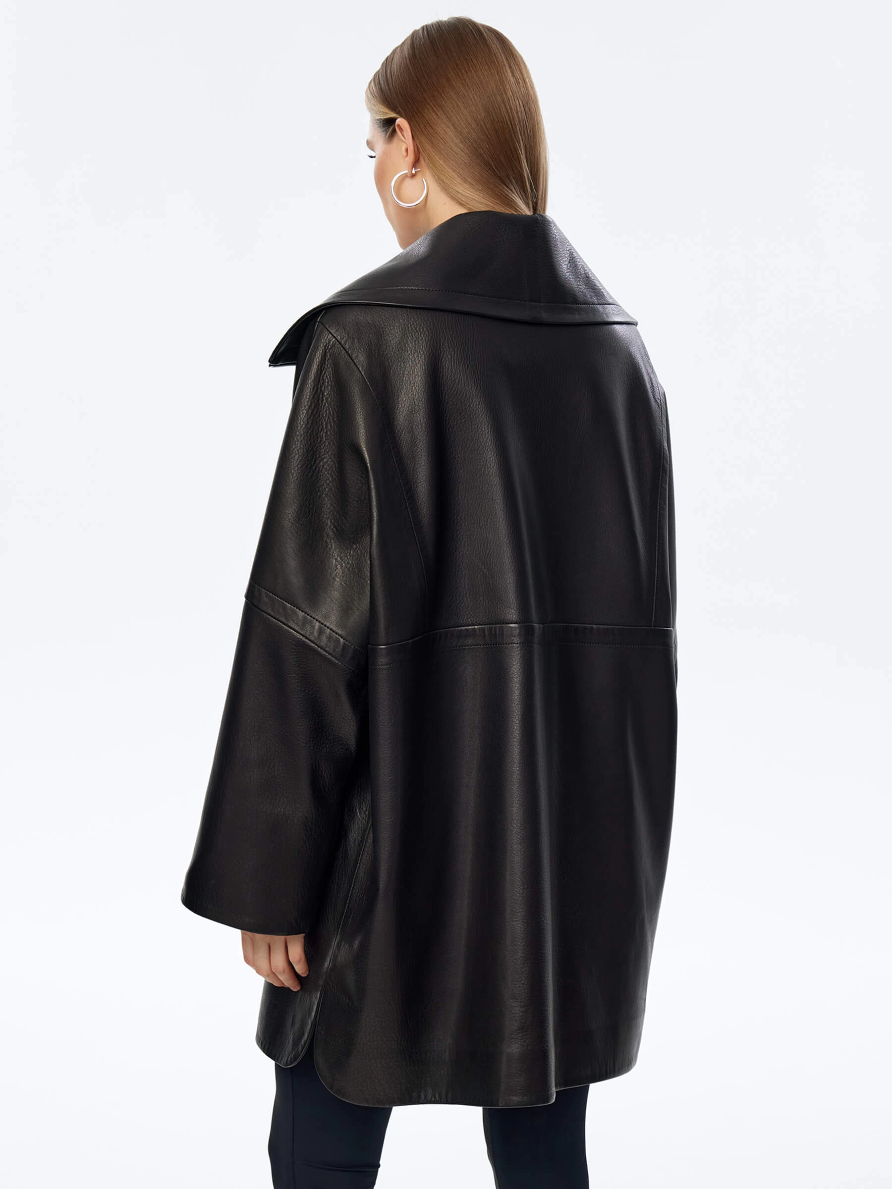 Кожаный плащ оверсайз на молнии для женщин премиум класса 3057, черный, размер 52, артикул 23520