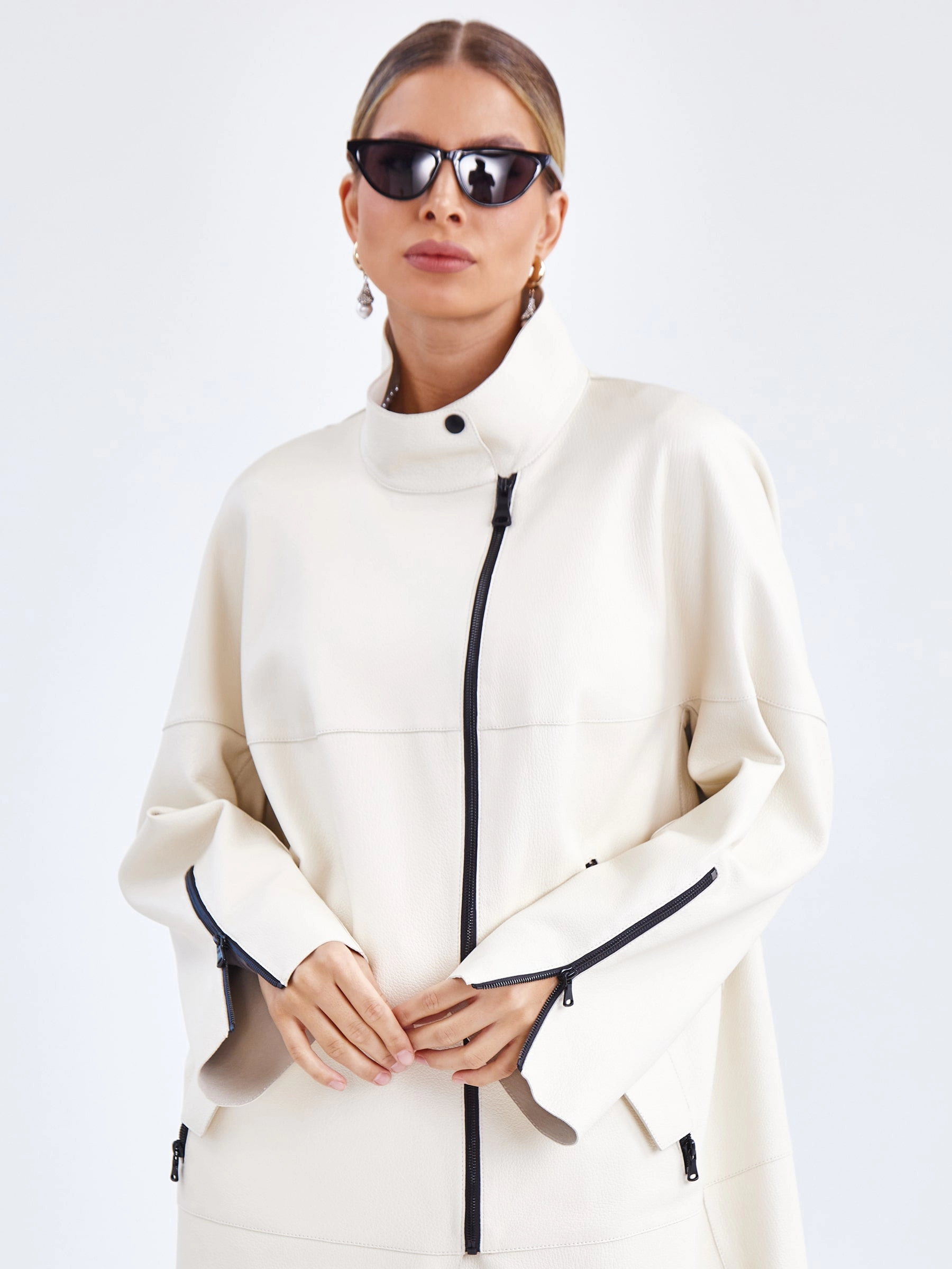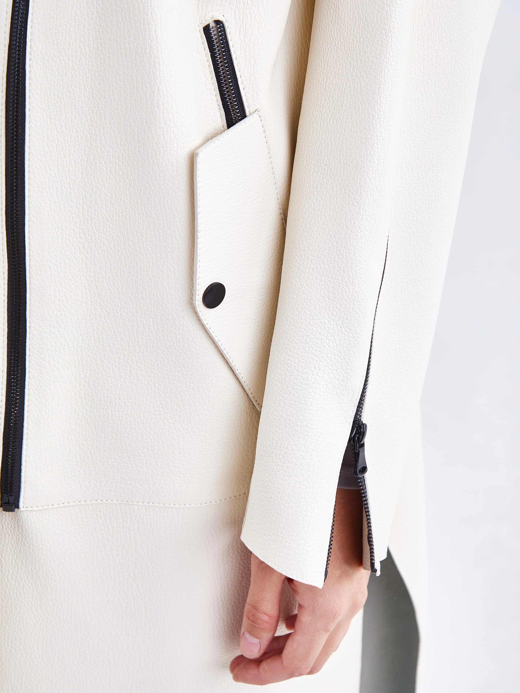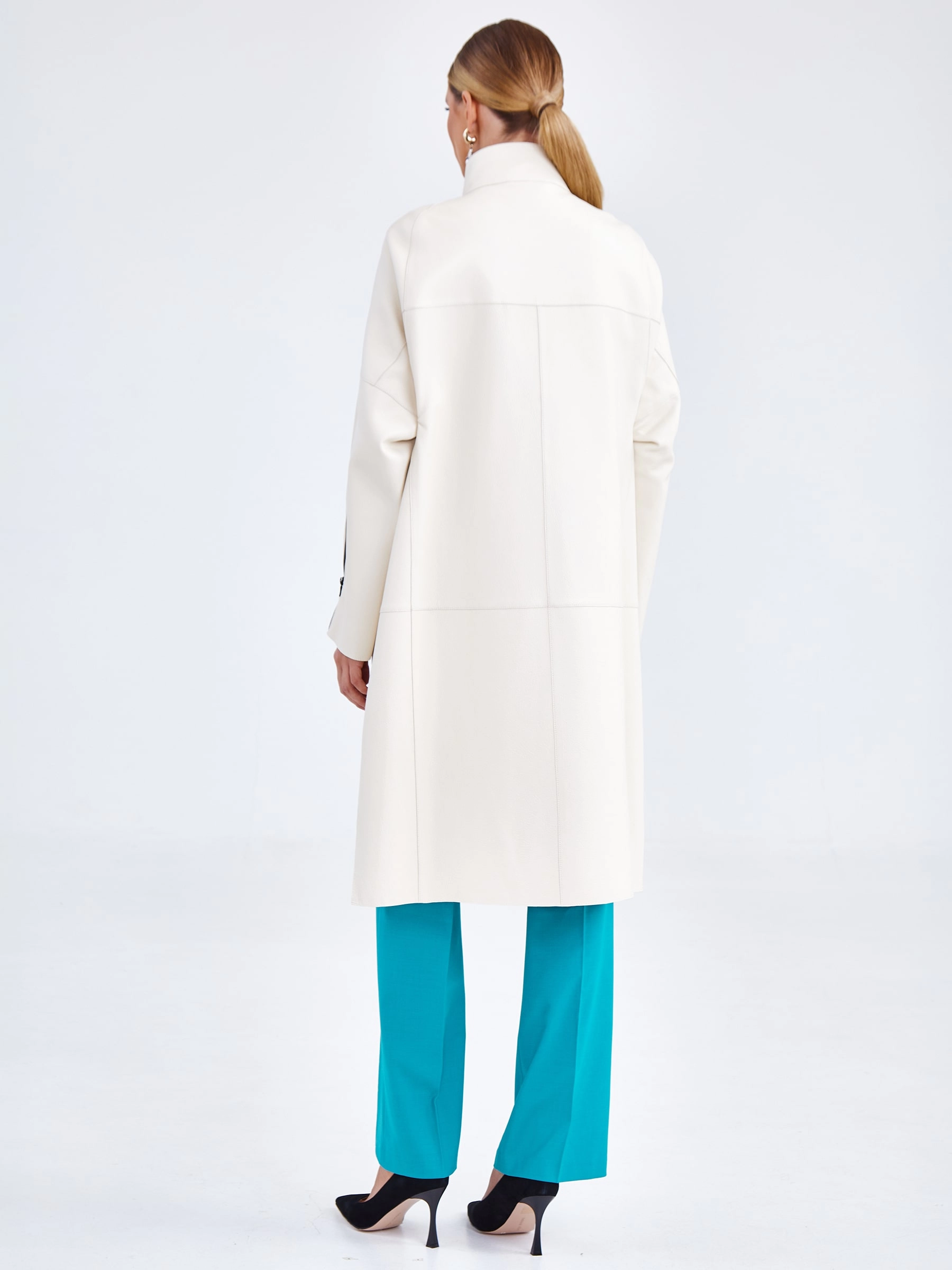 Женский кожаный плащ на молнии премиум класса 3041, белый, размер 48, артикул 91901