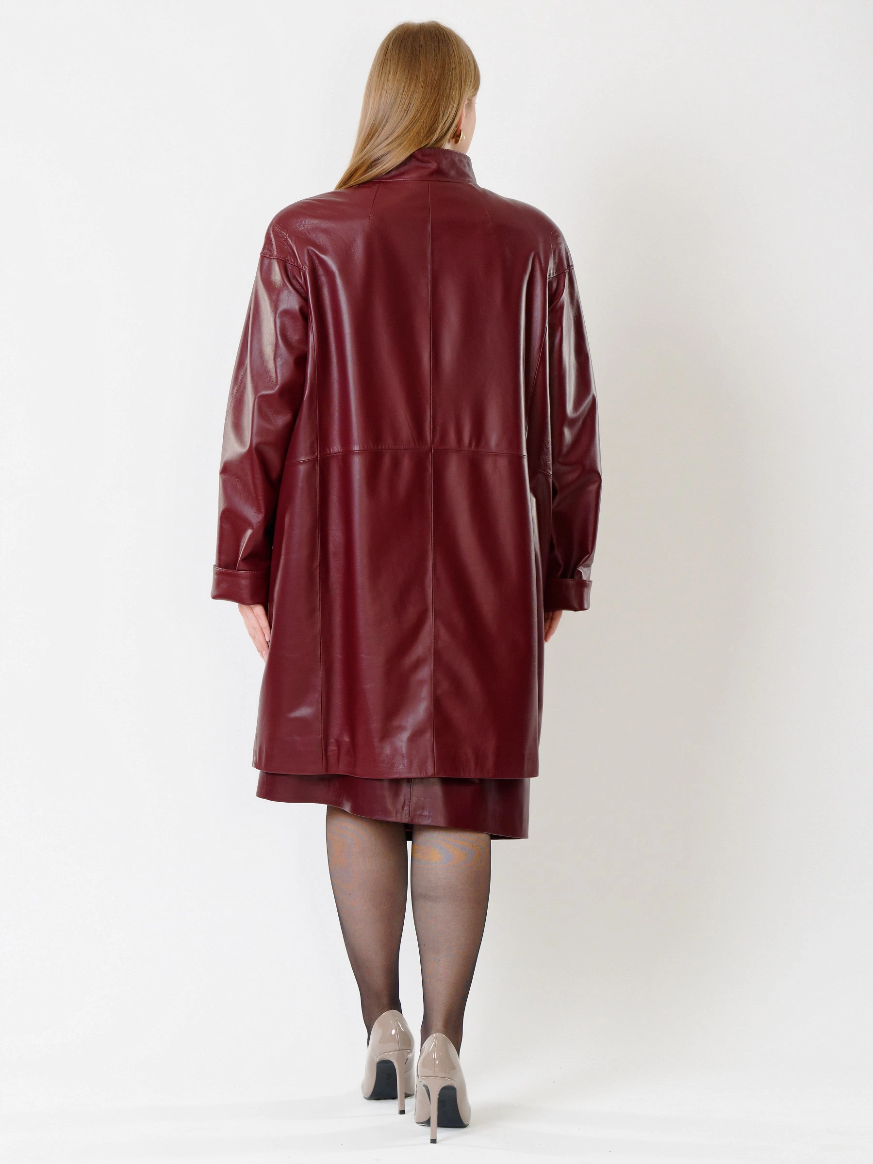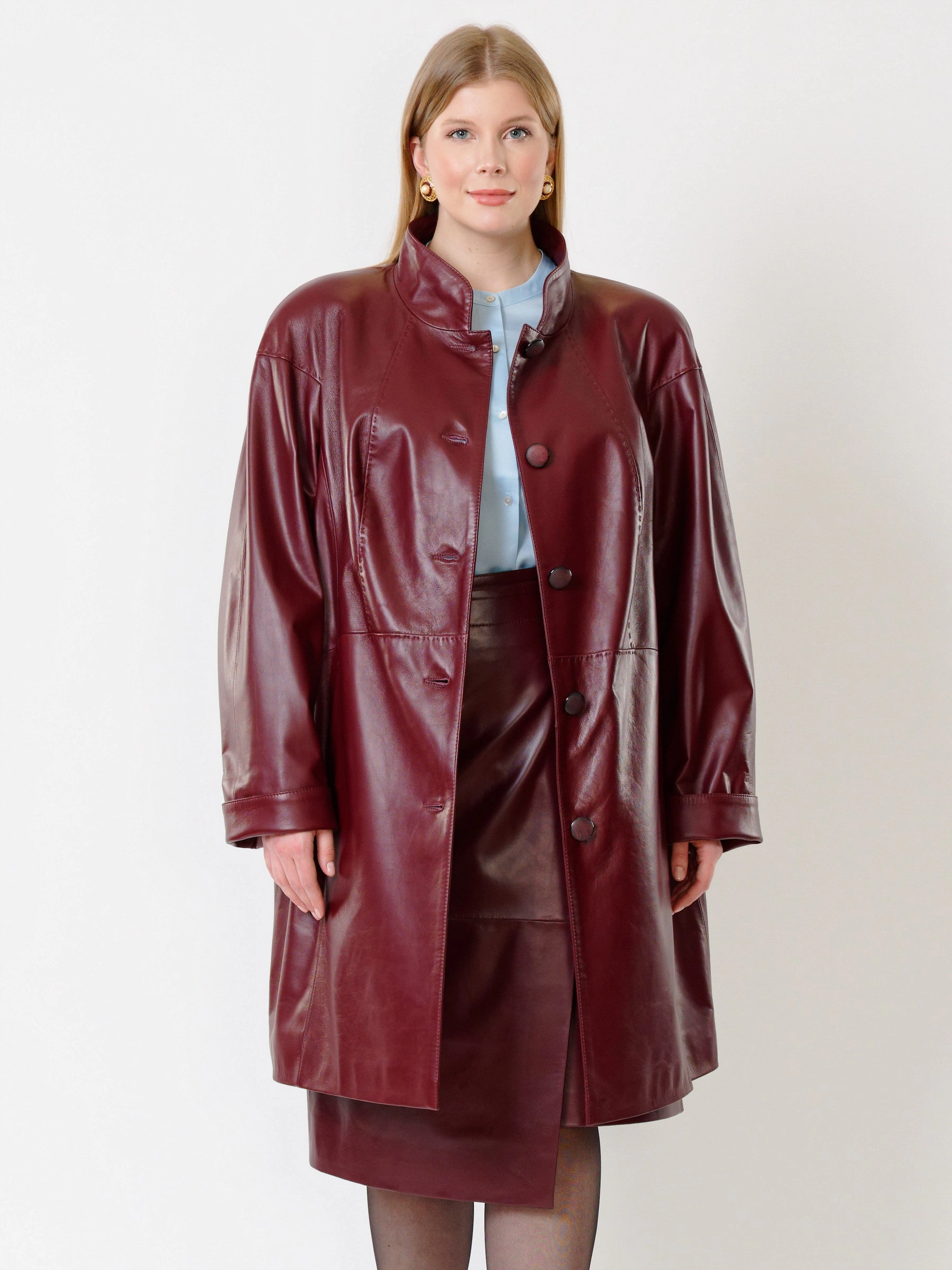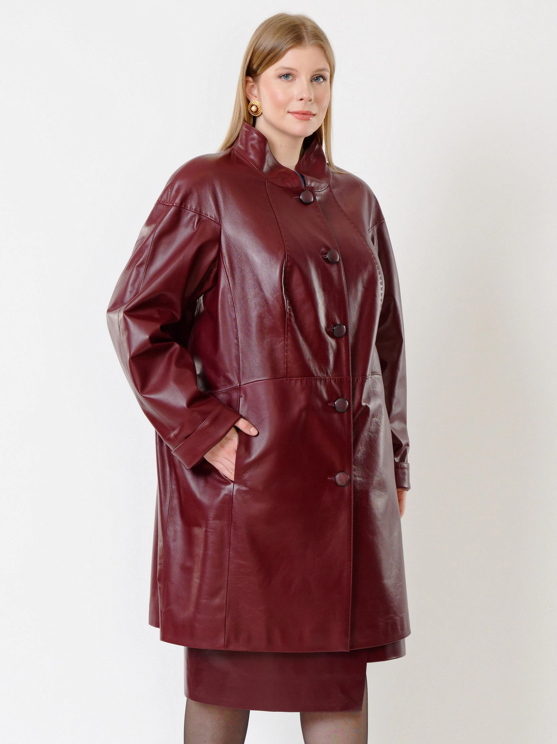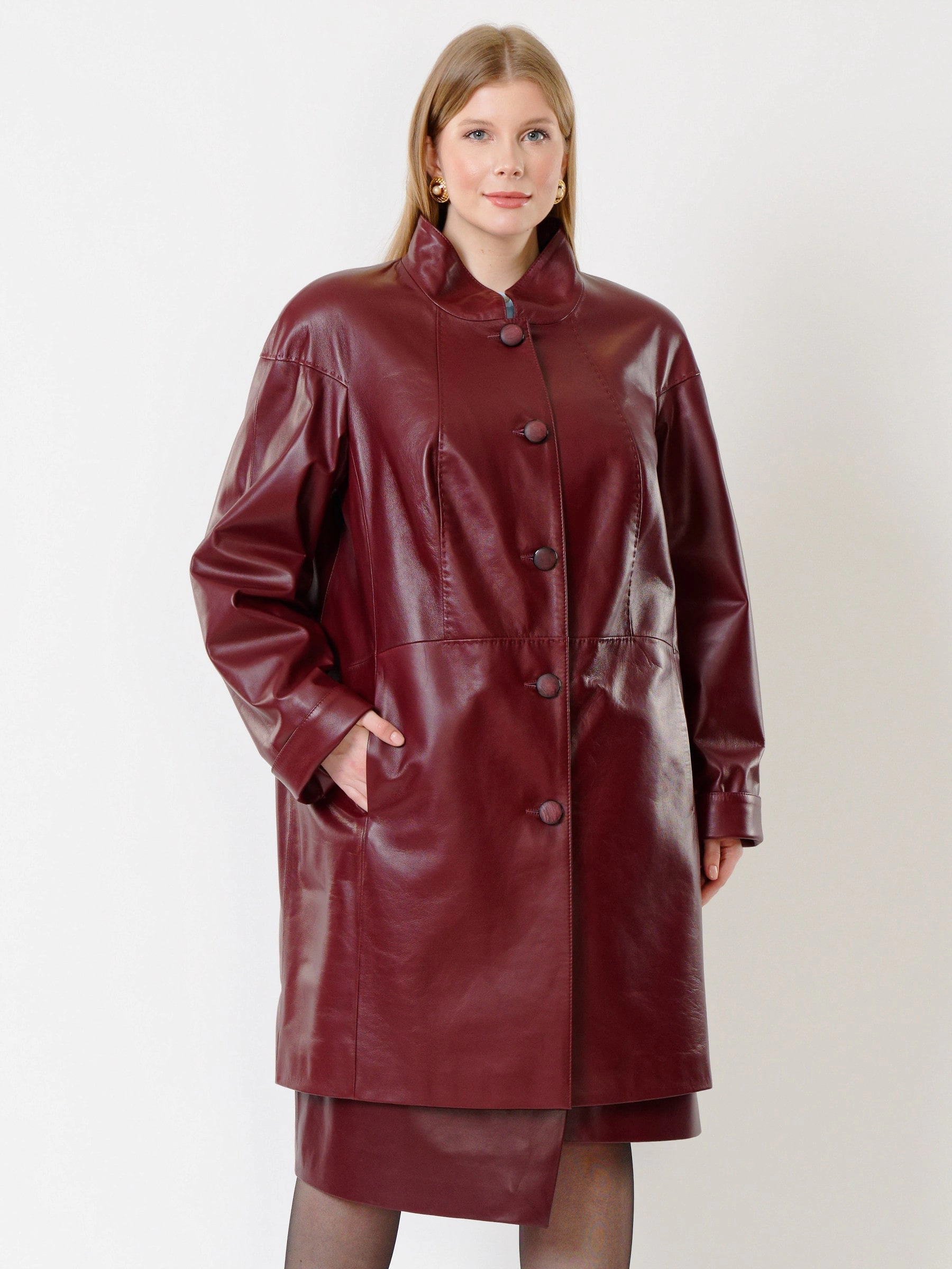 Кожаный женский плащ 378, бордовый, размер 58, артикул 91982
