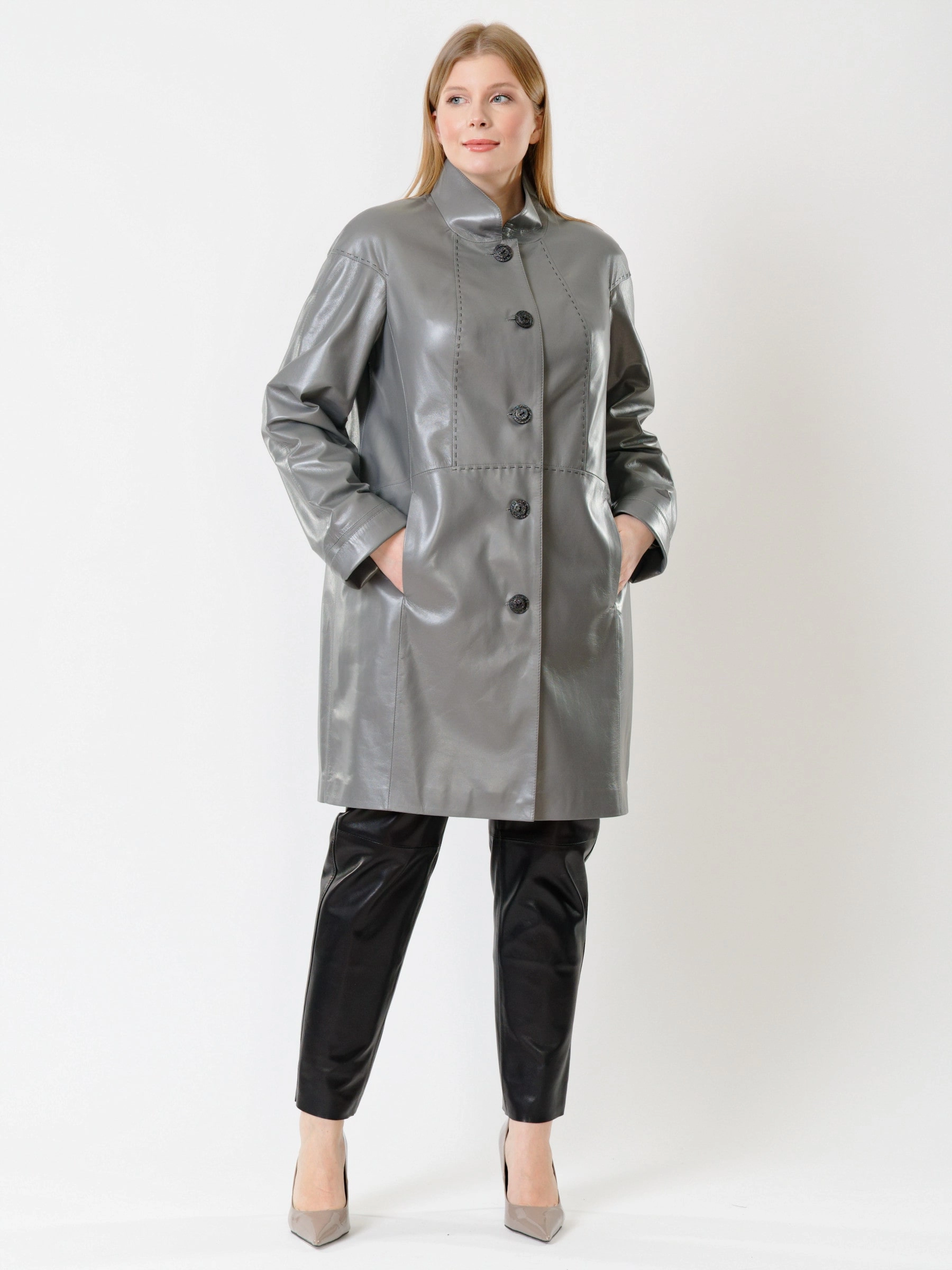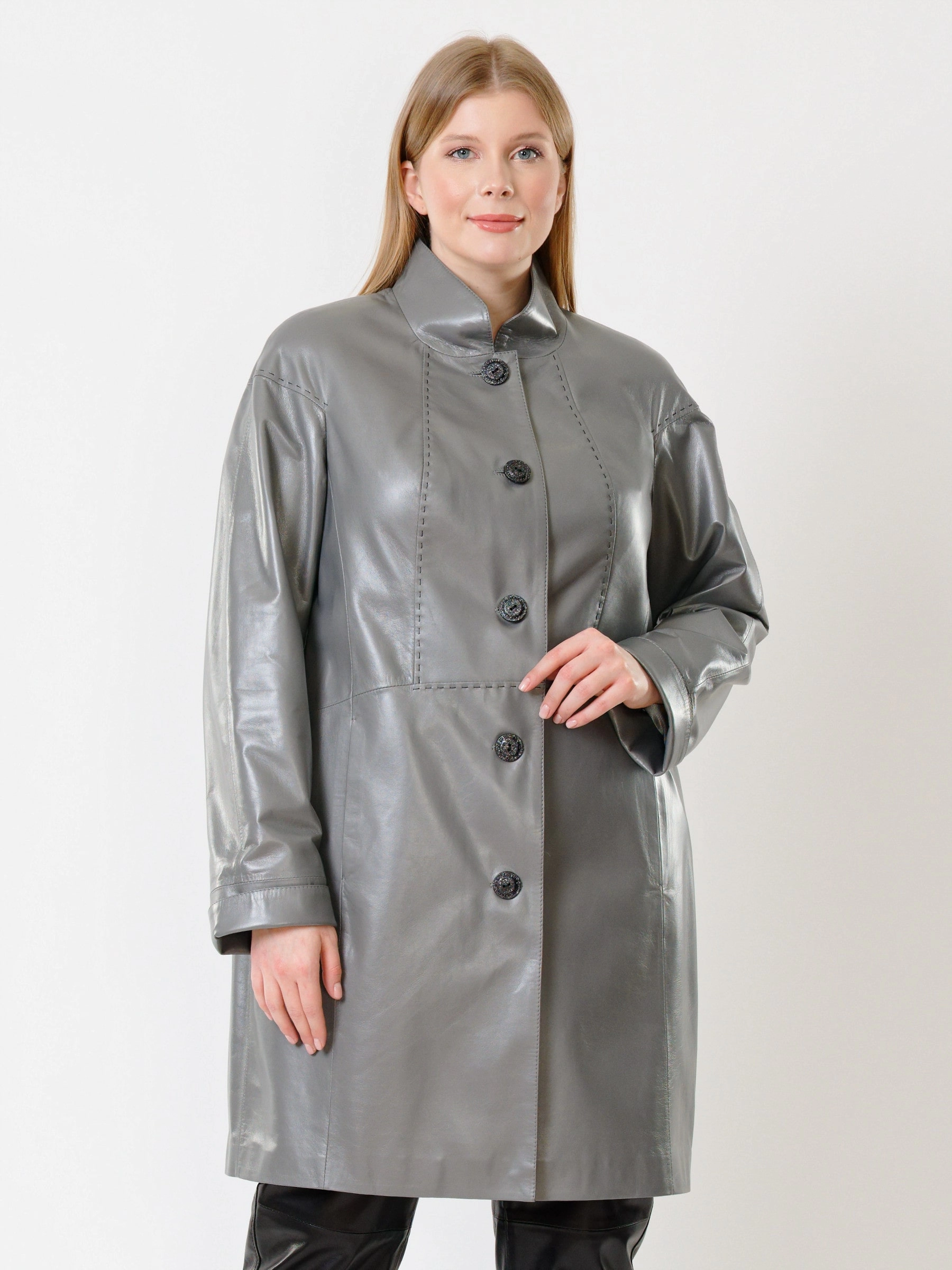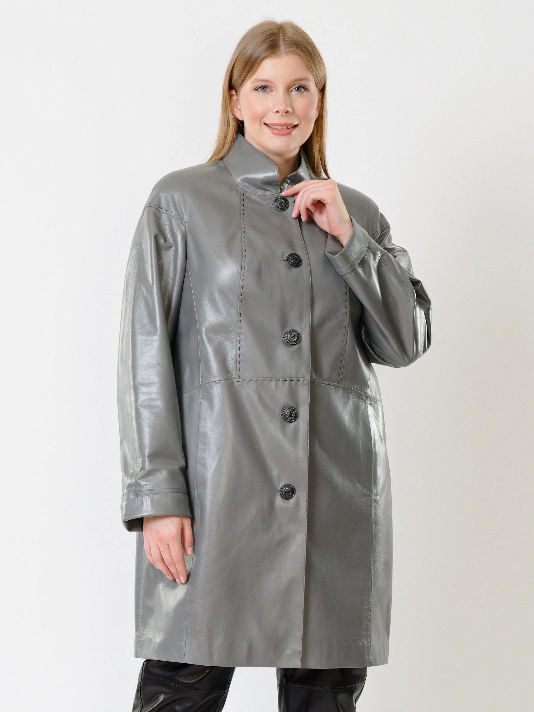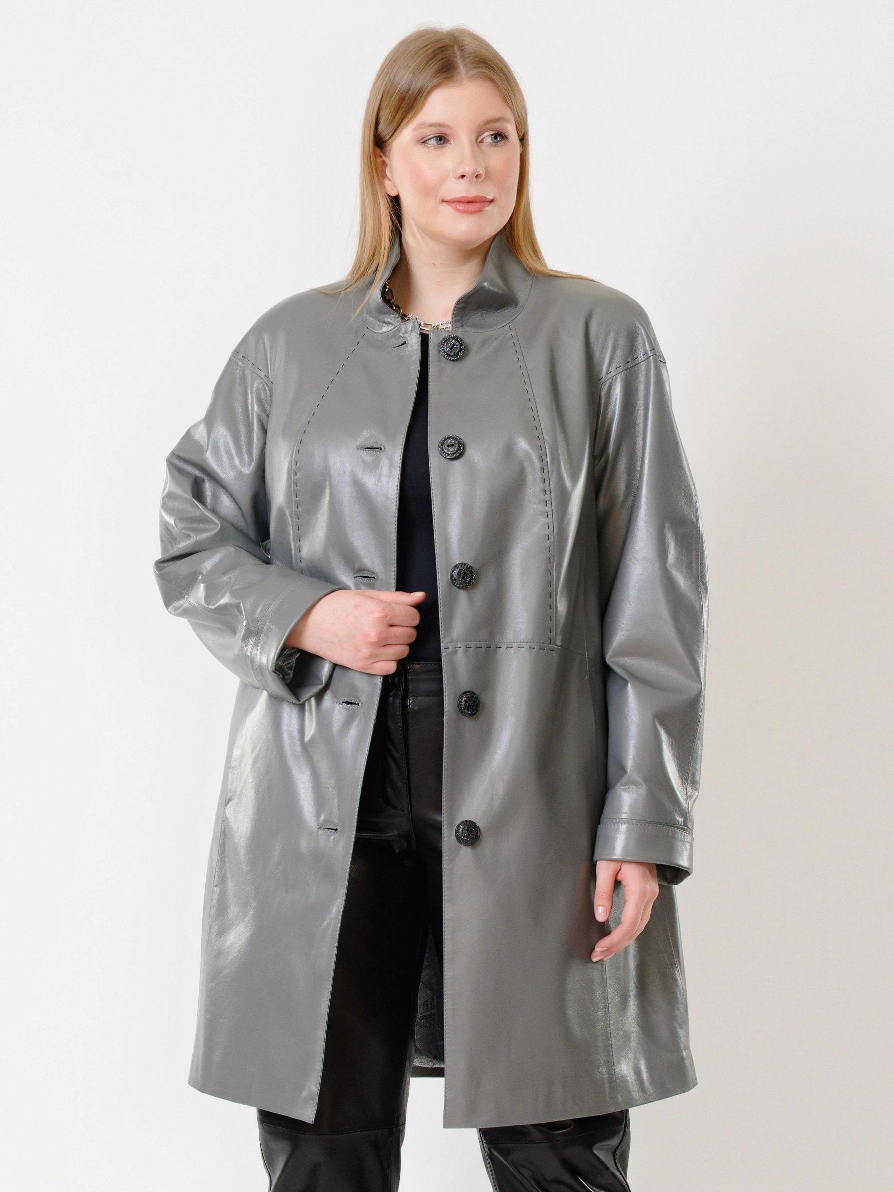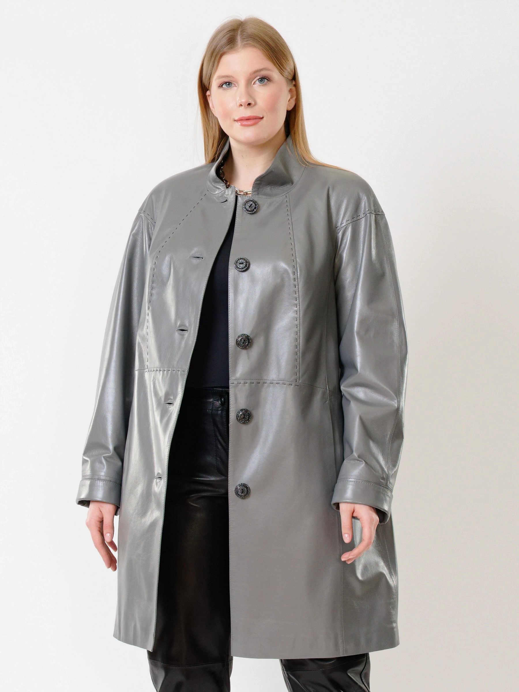 Кожаный женский плащ 378, серый, размер 50, артикул 91962