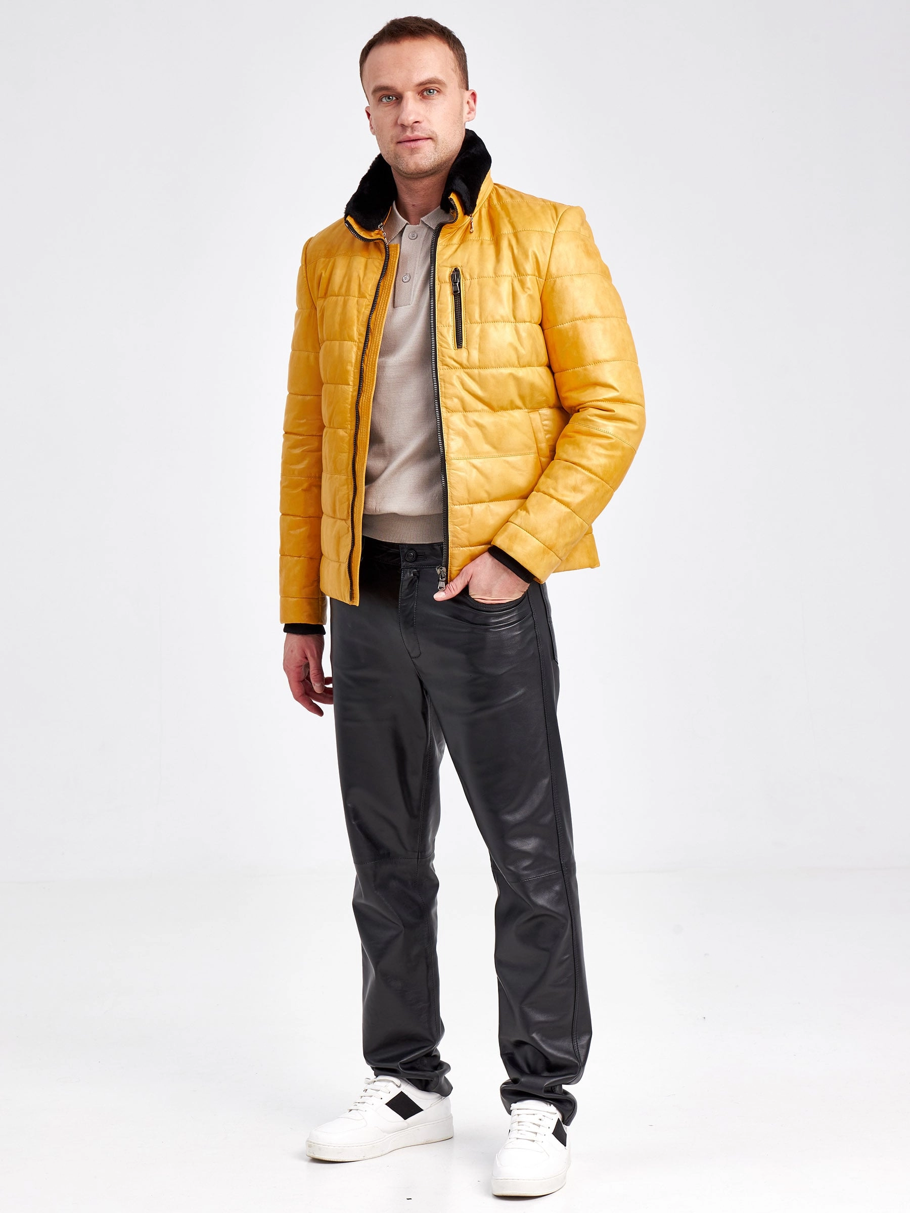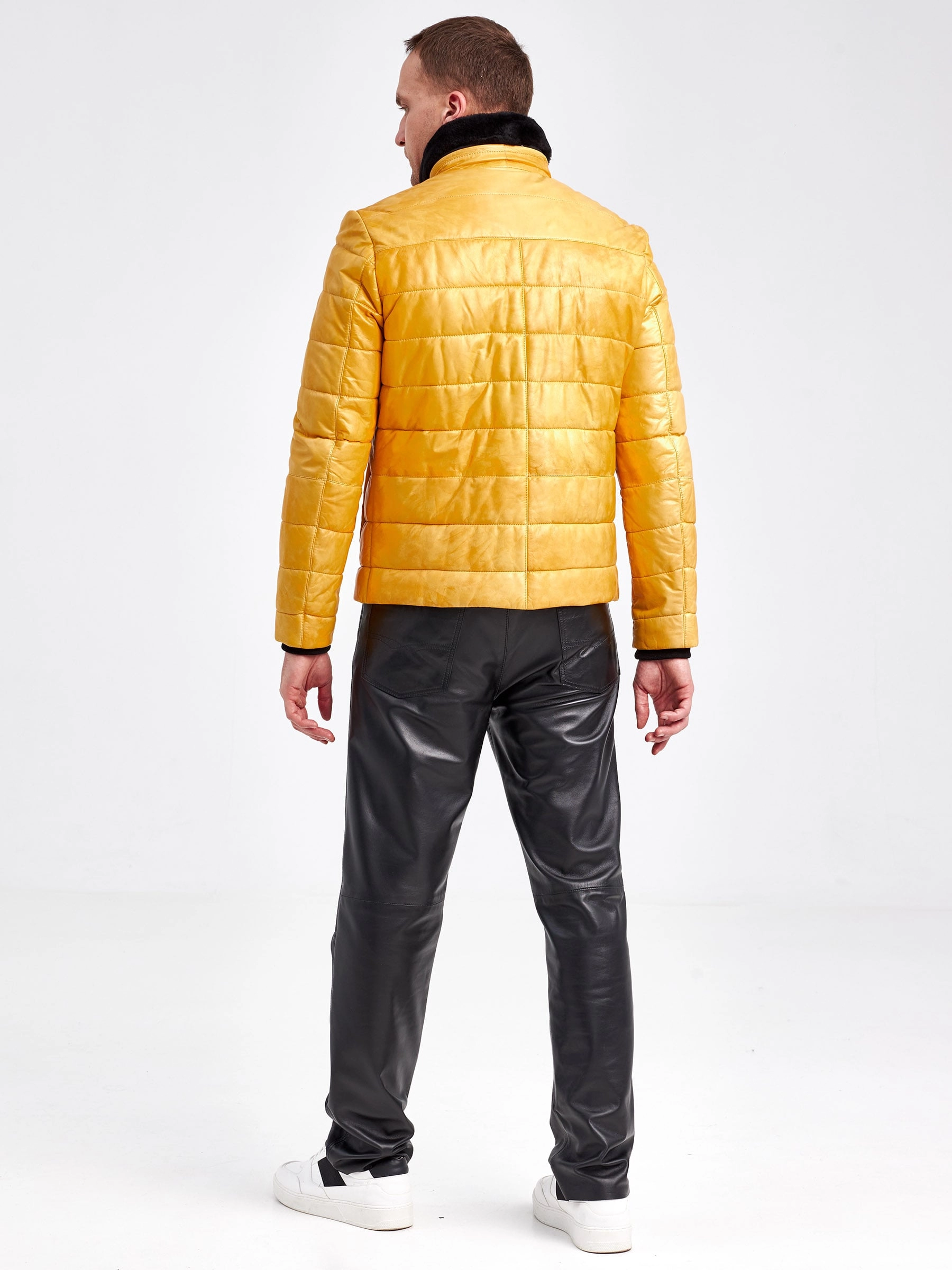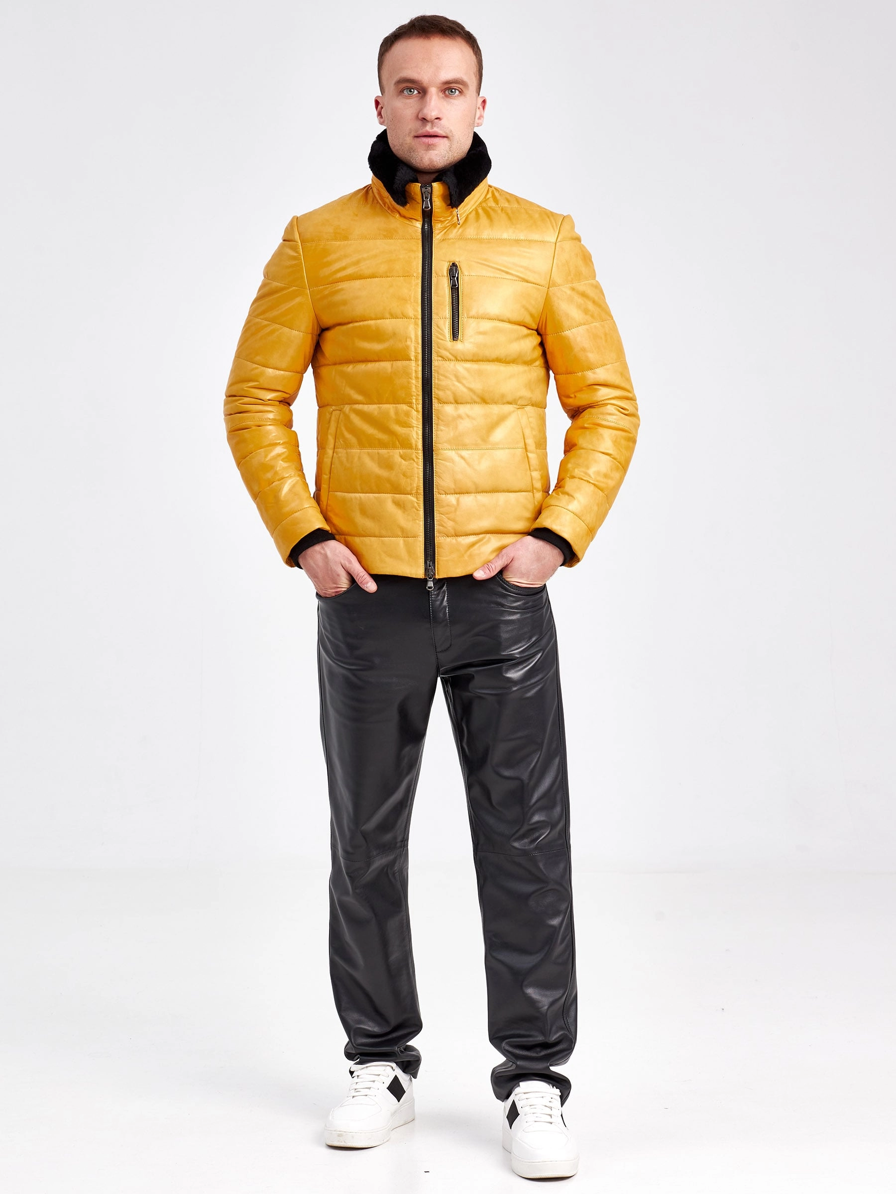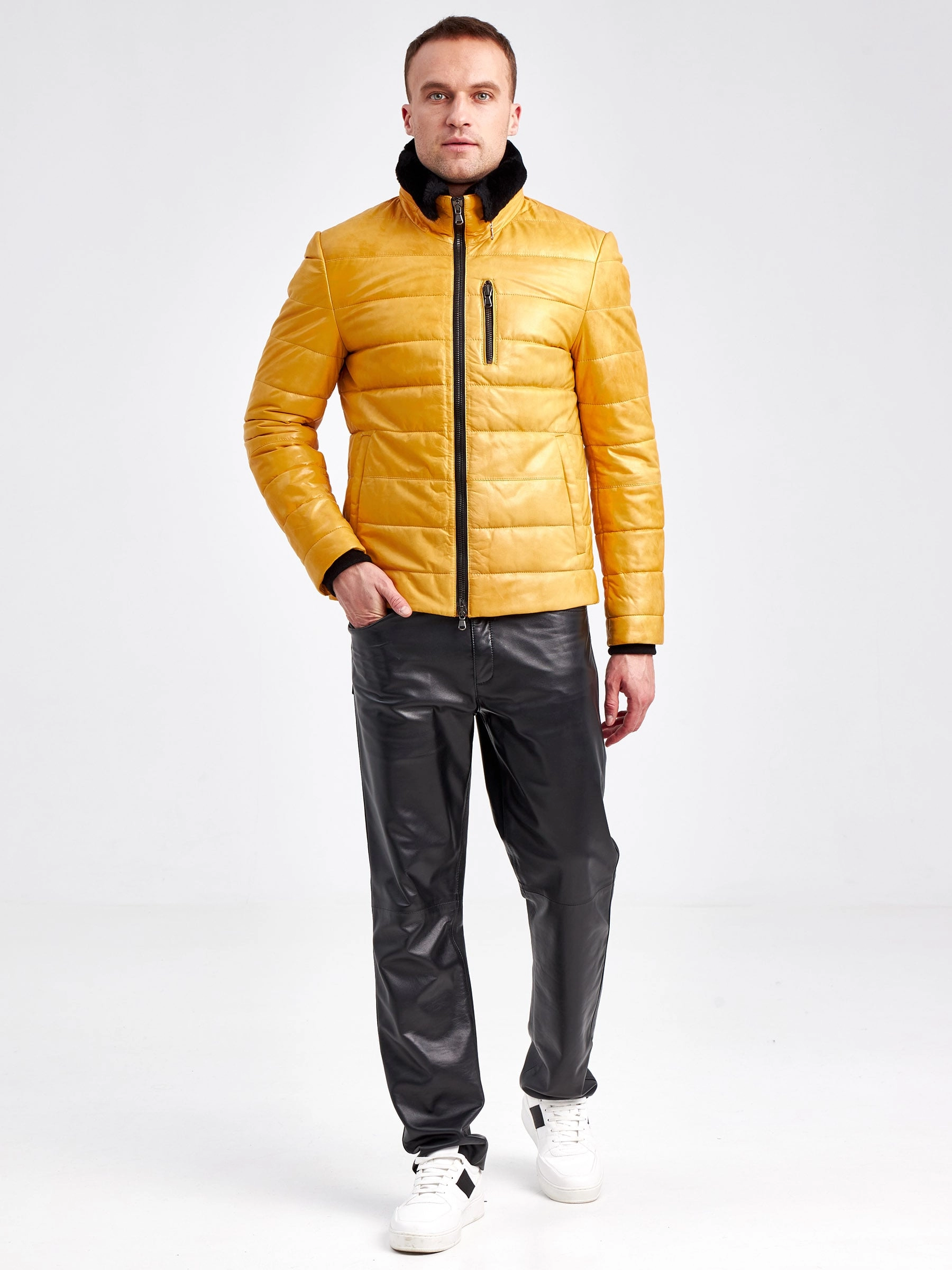 Товар зимний короткий кожаный пуховик для мужчин 40132, желтый, размер 48 , артикул 23110 выполнен из натуральной кожи с застежкой молния. Рассчитан на сезон: осень-зима. Длина изделия 69 см, силуэт полуприлегающий.