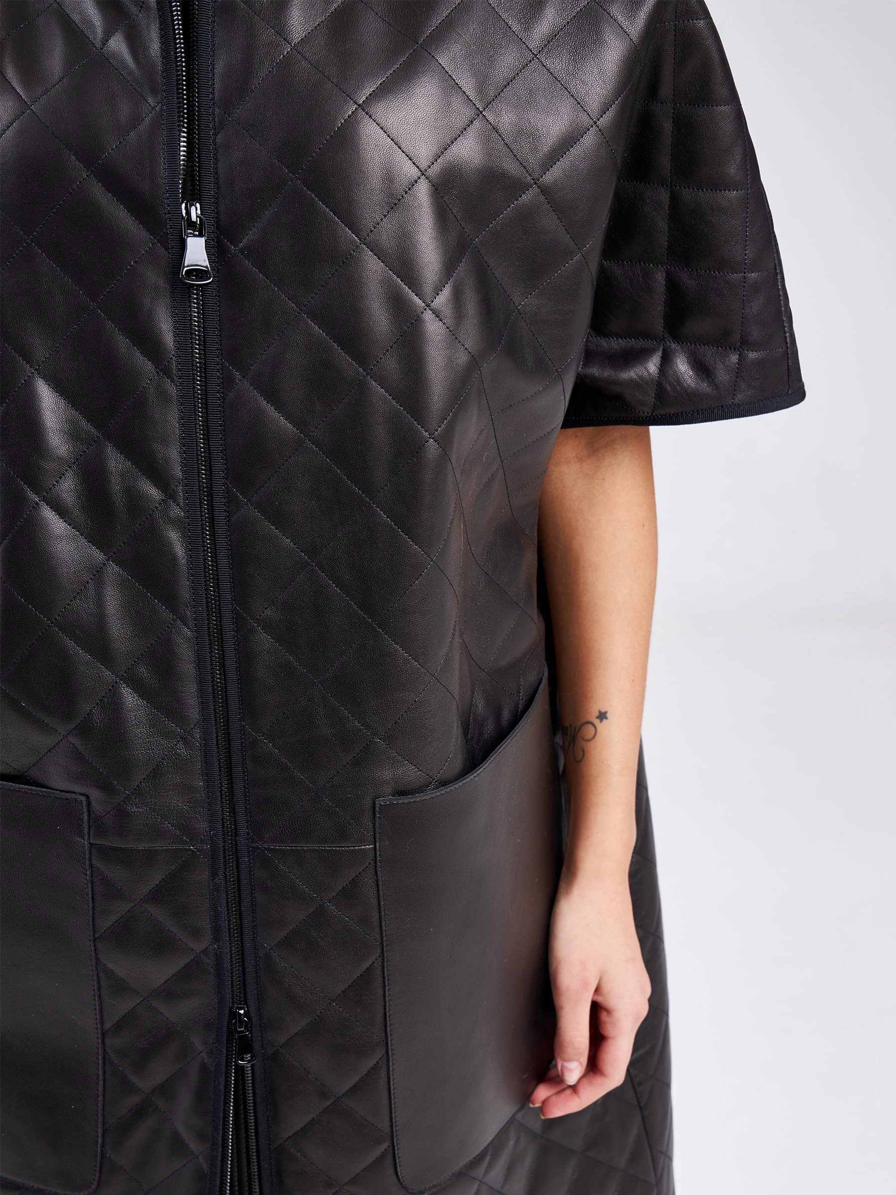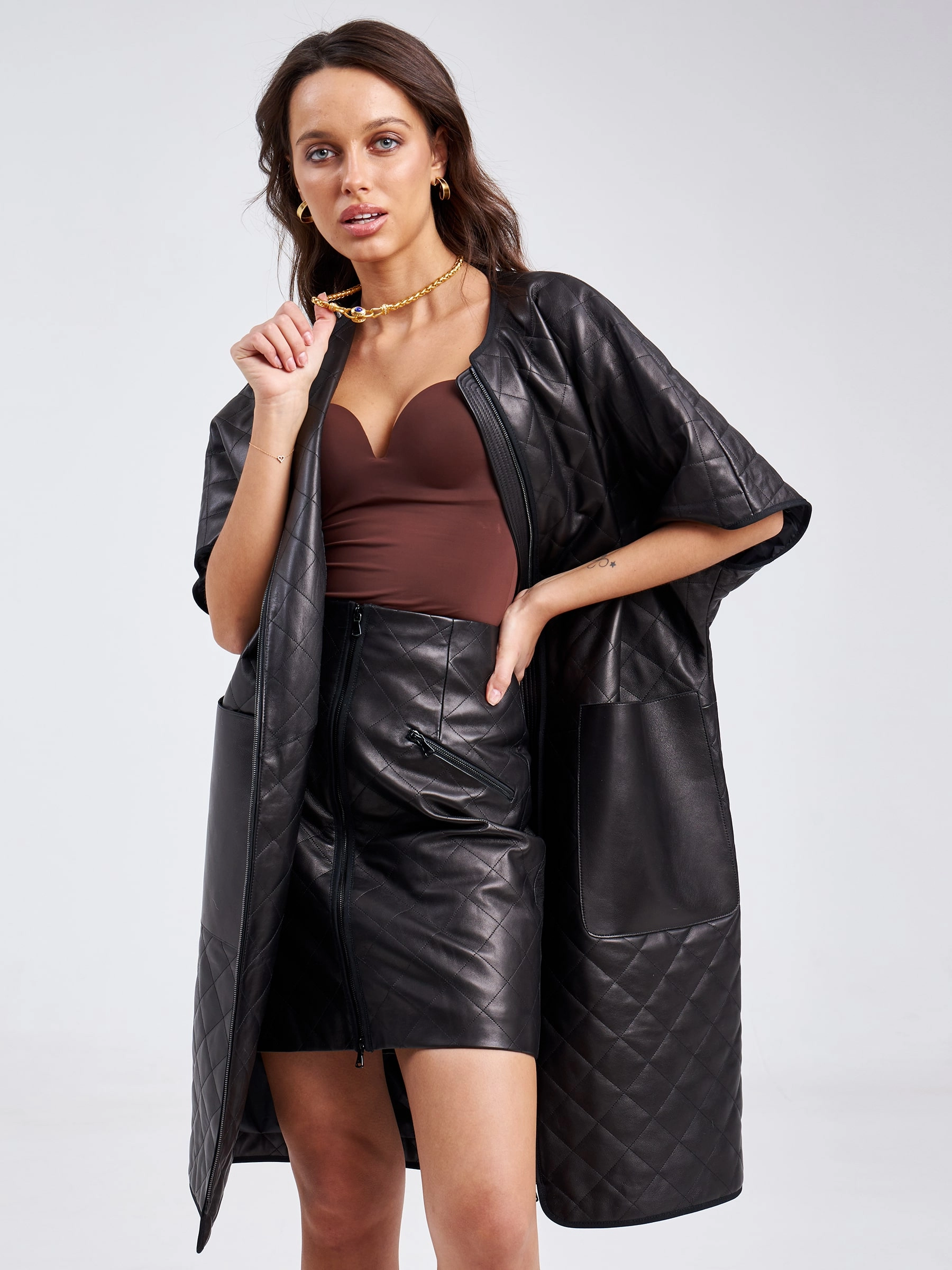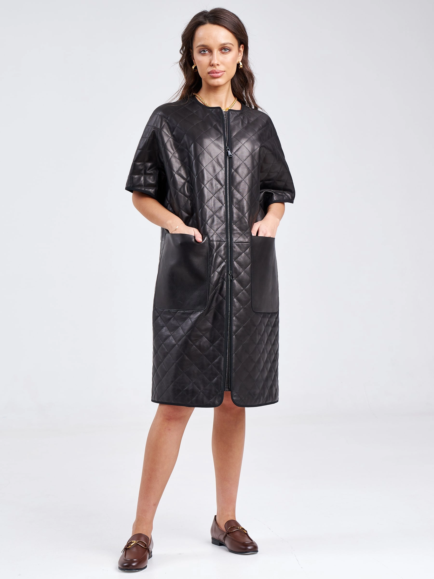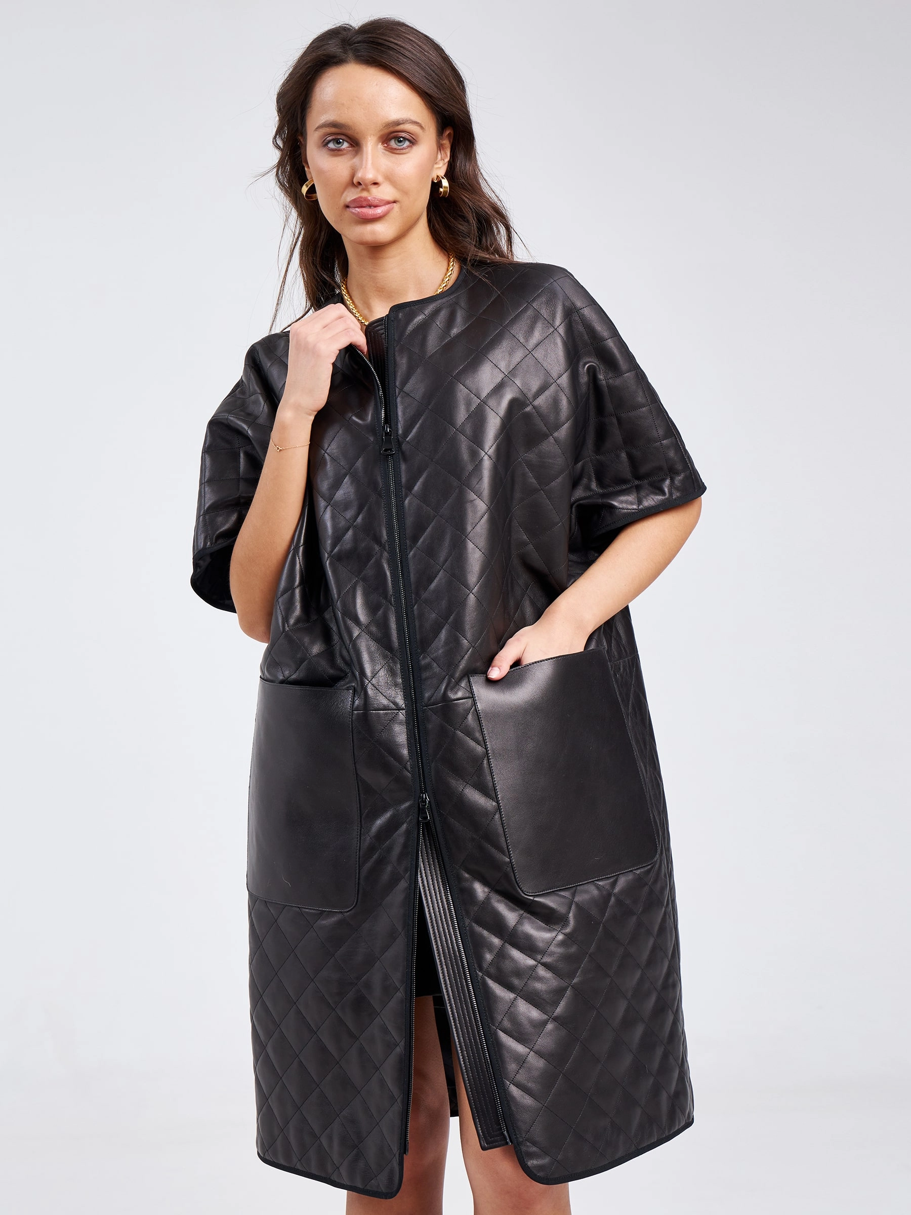 Товар кожаный женский стеганый жилет премиум класса 07, черный, размер 44, артикул 91970 выполнен из натуральной кожи с застежкой молния. Рассчитан на сезон: весна-лето. Длина изделия 100 см, силуэт прямой.