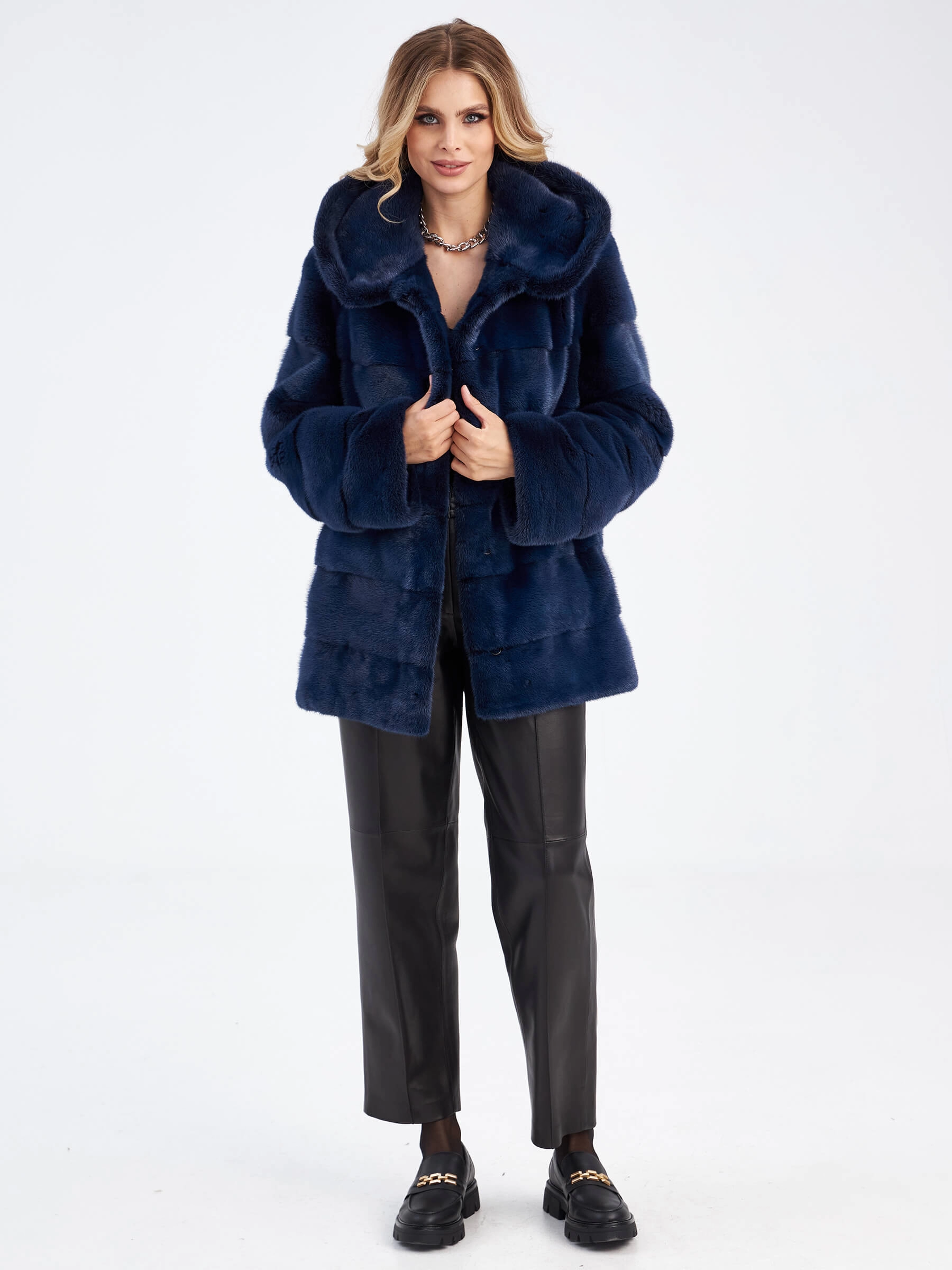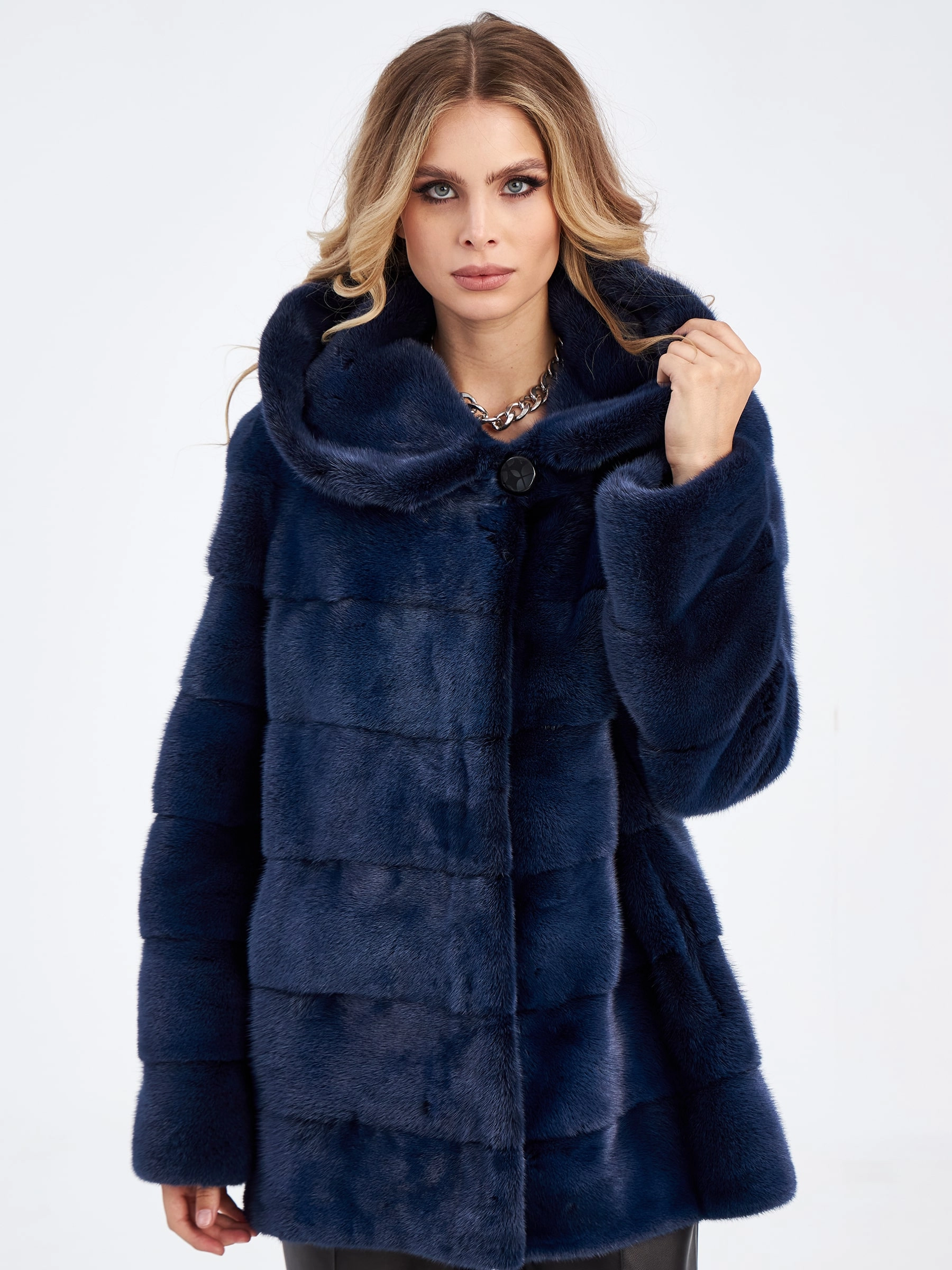 Товар короткая куртка автоледи из меха норки для женщин 2а-к(к), сине-черная, размер 44, артикул 33900 выполнен из норка с застежкой клипсы. Рассчитан на сезон: зима. Длина изделия 70 см, силуэт прямой.