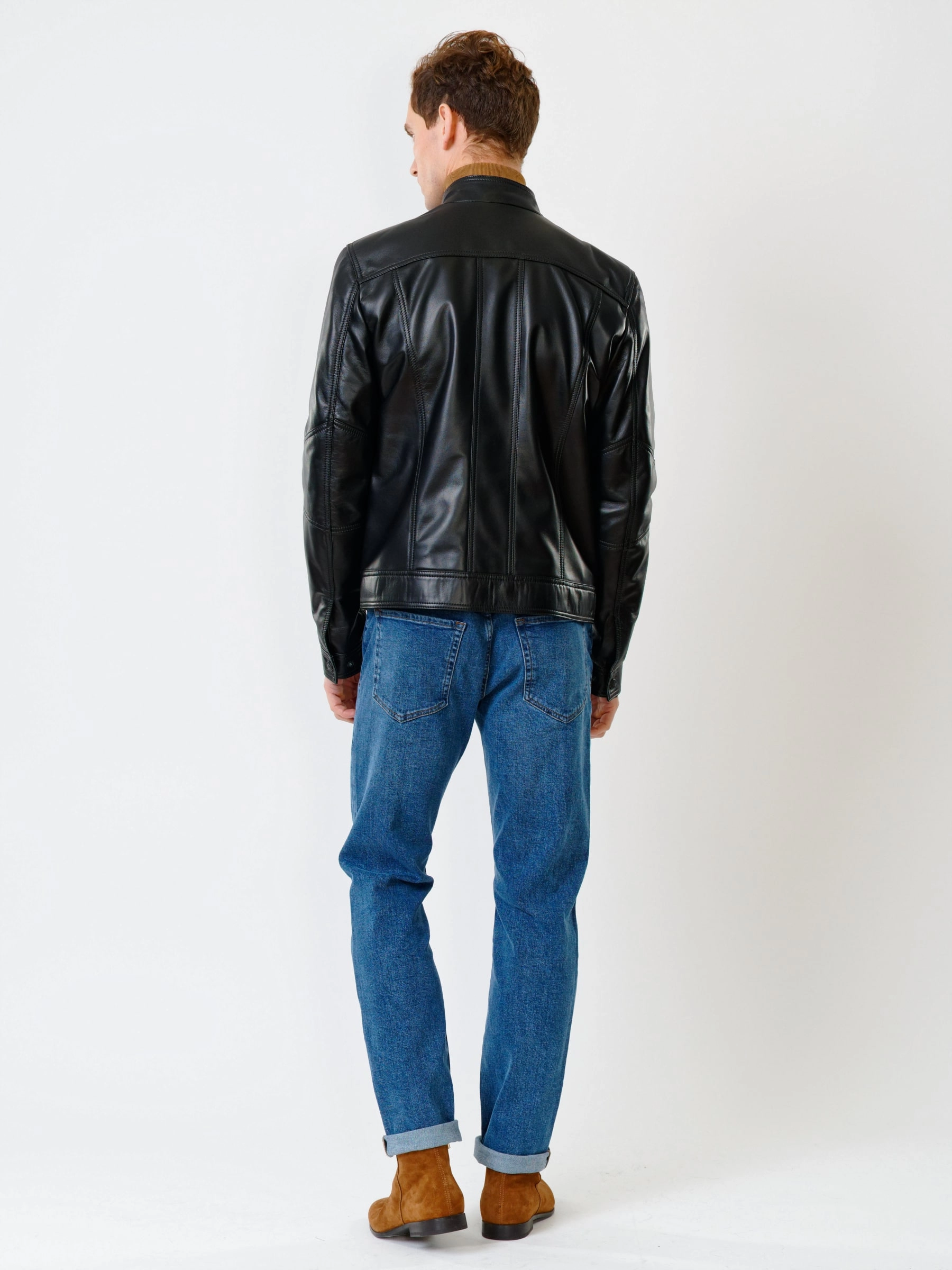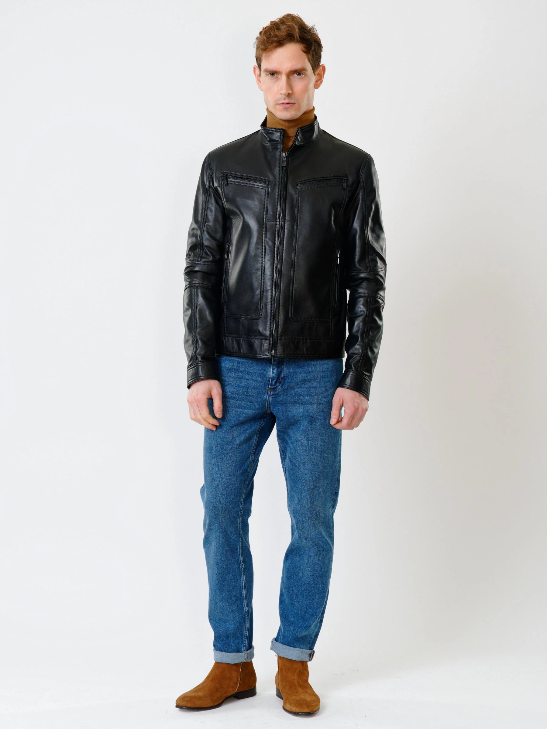 Кожаная куртка мужская 507, черная, размер 48, артикул 28430