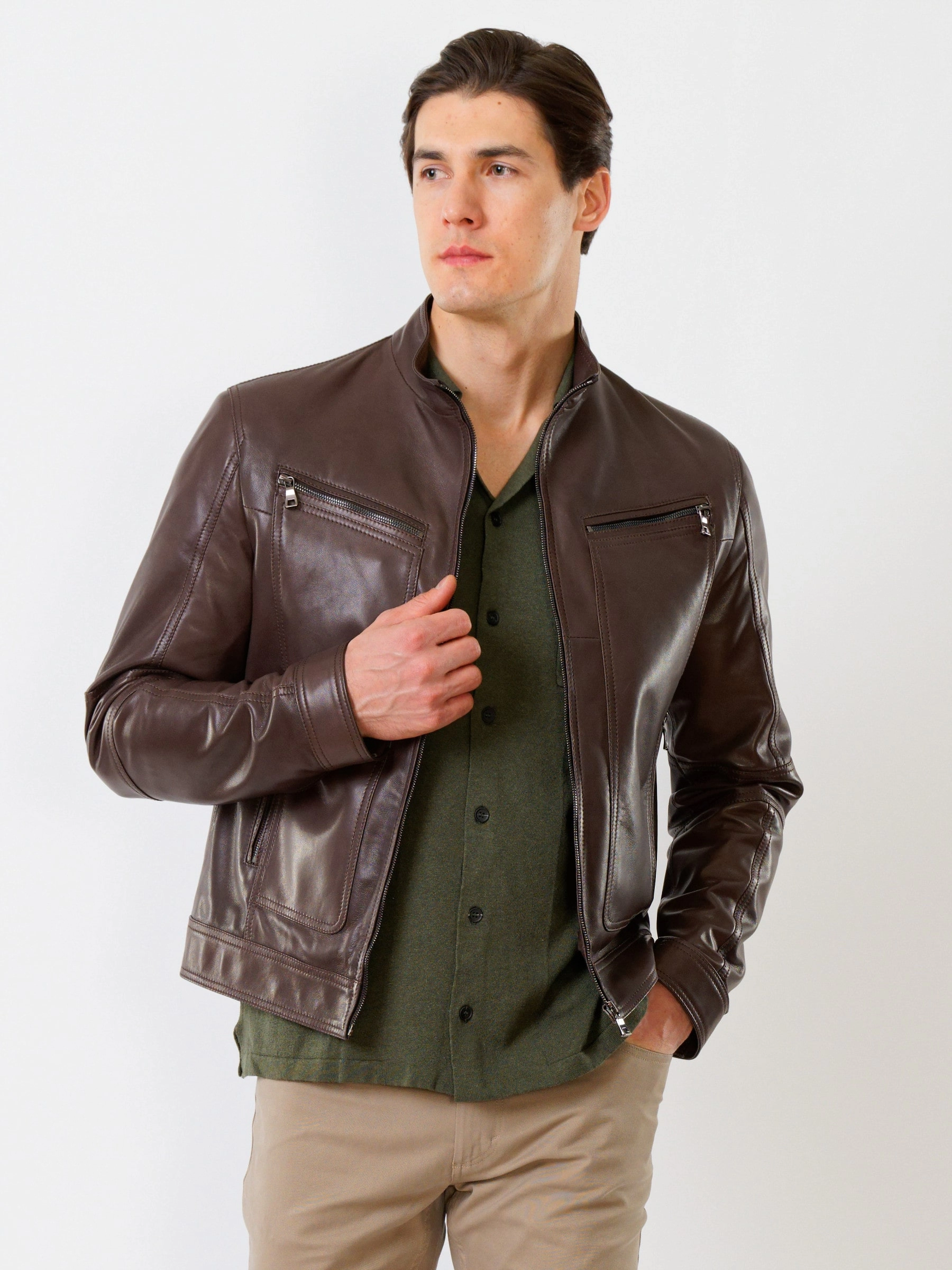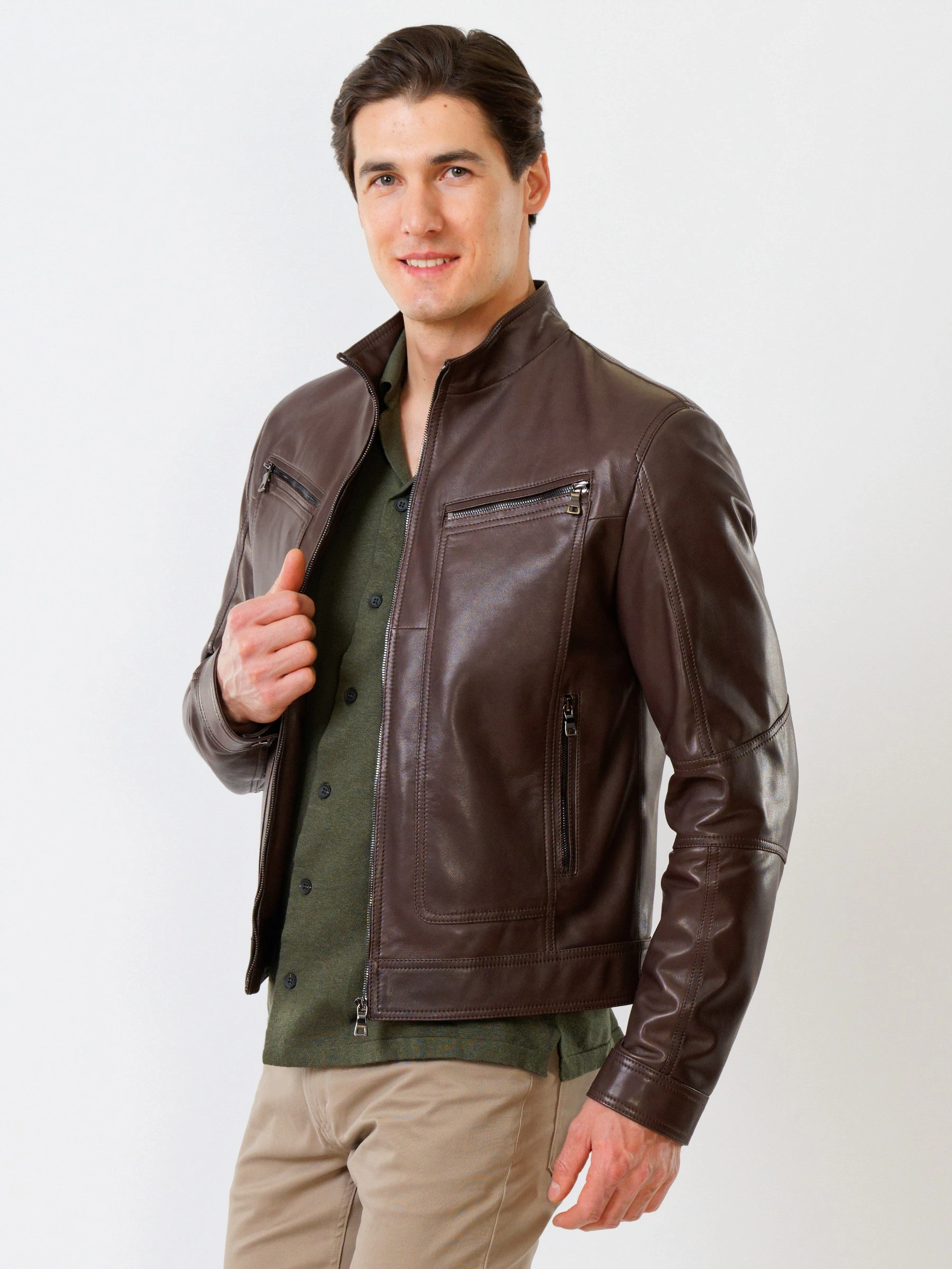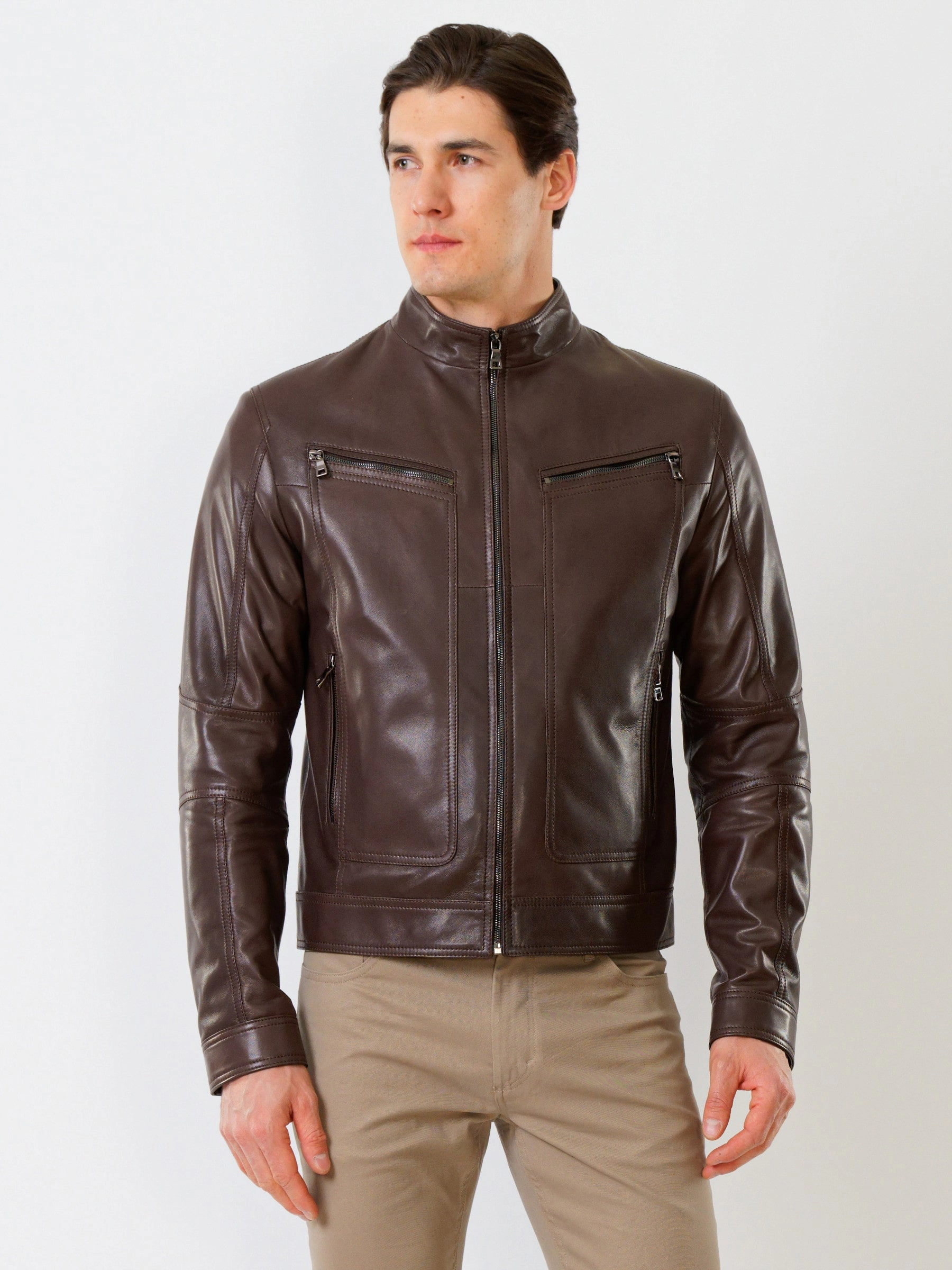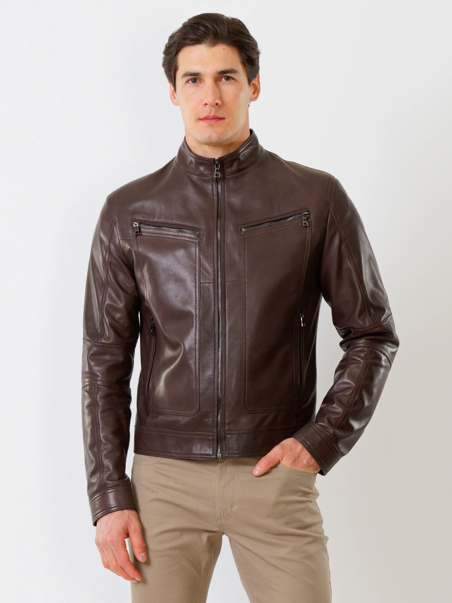 Кожаная куртка мужская 507, коричневая, размер 54, артикул 28591