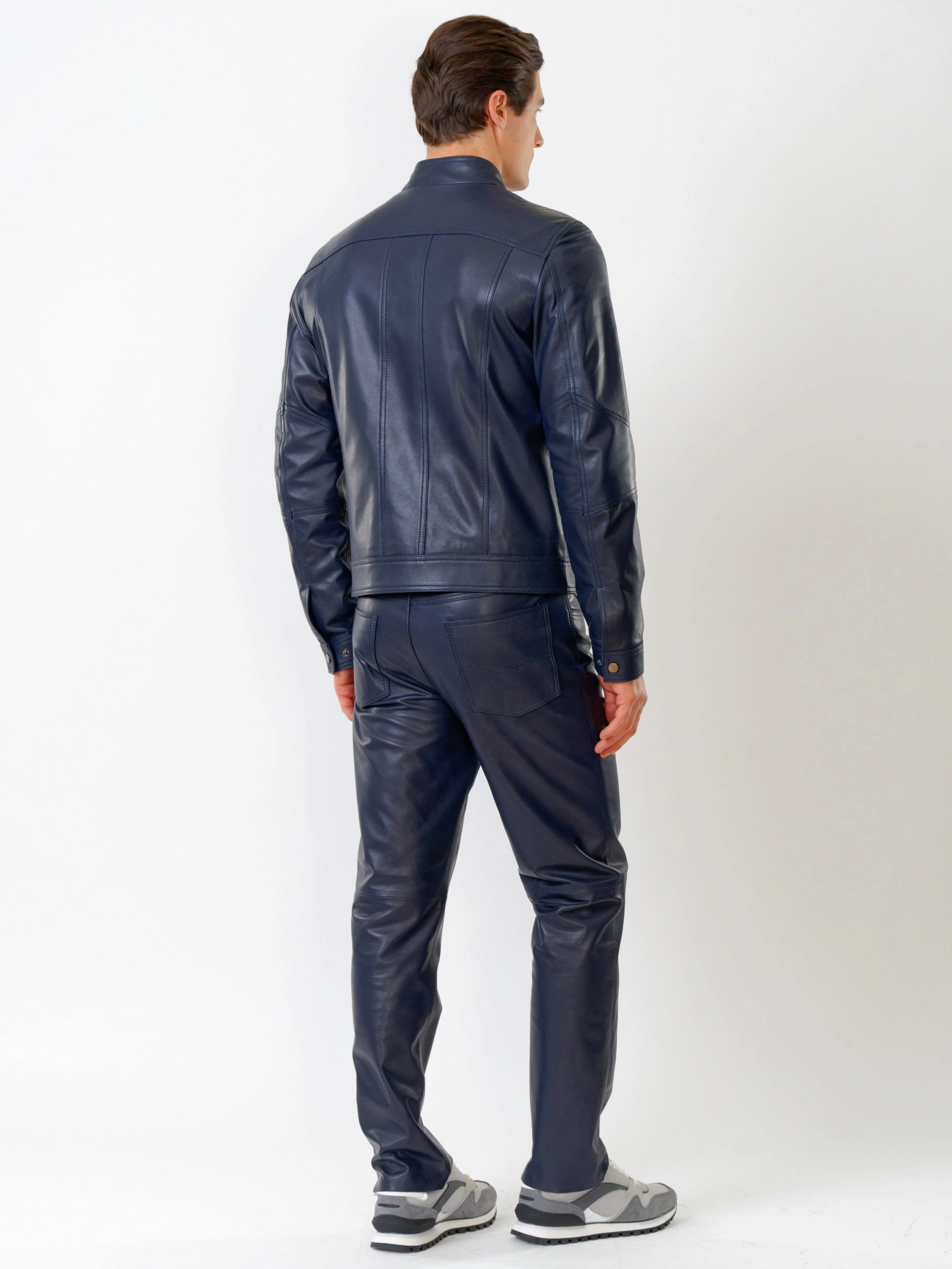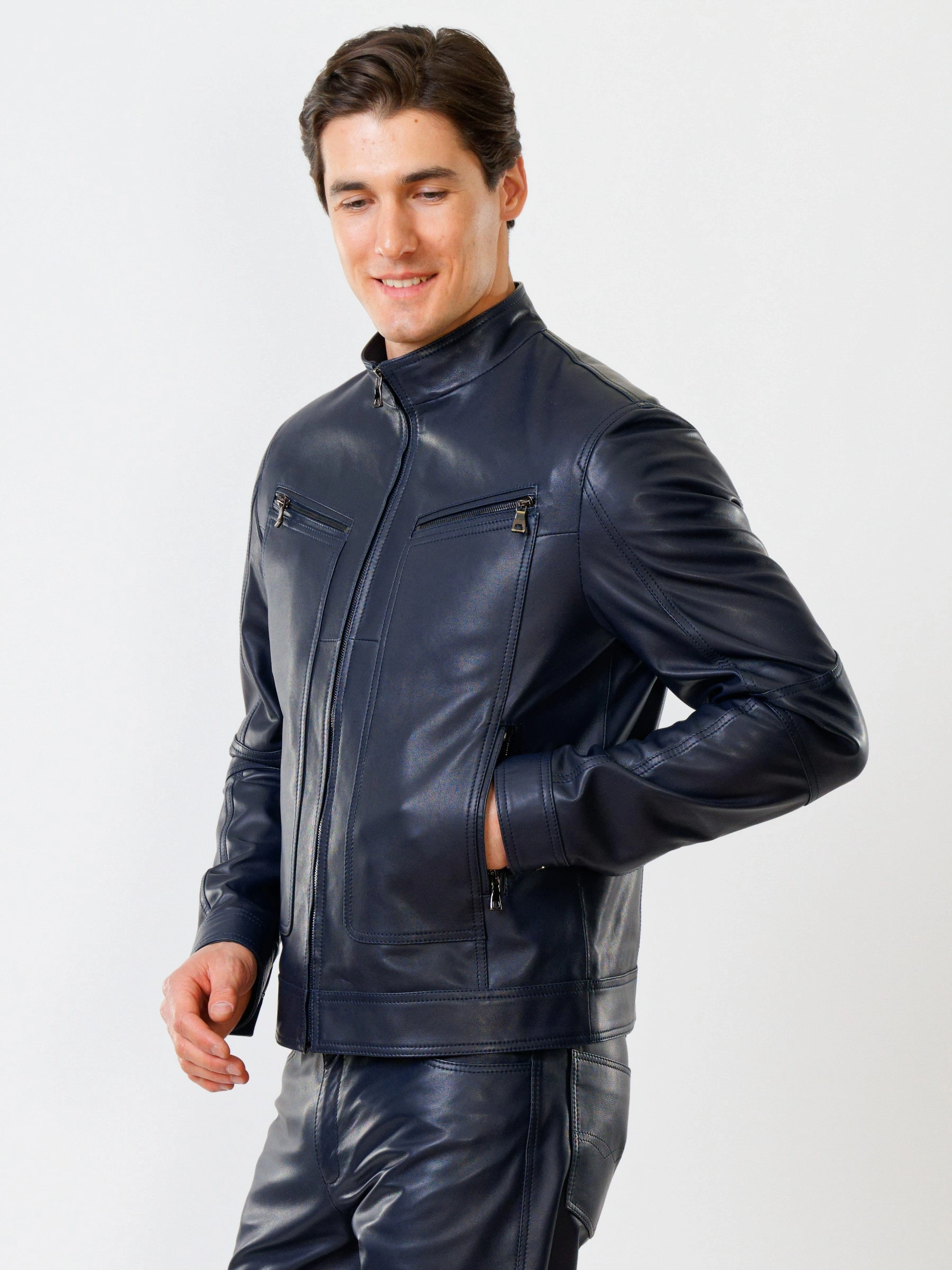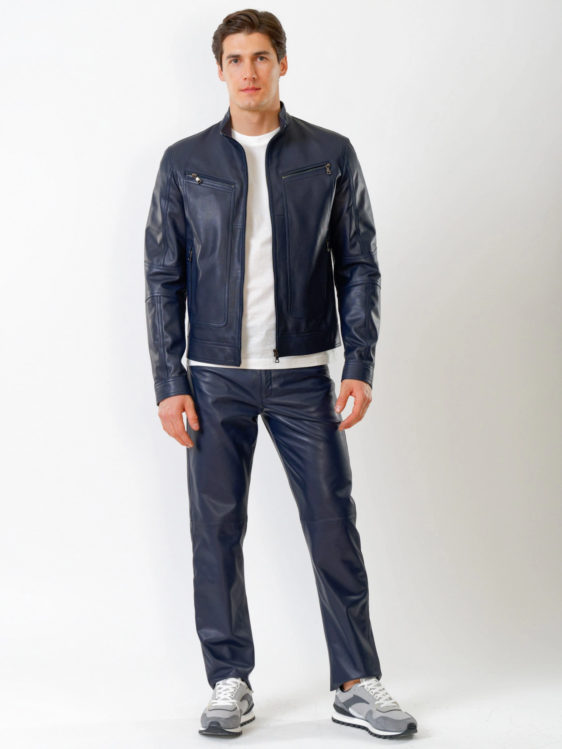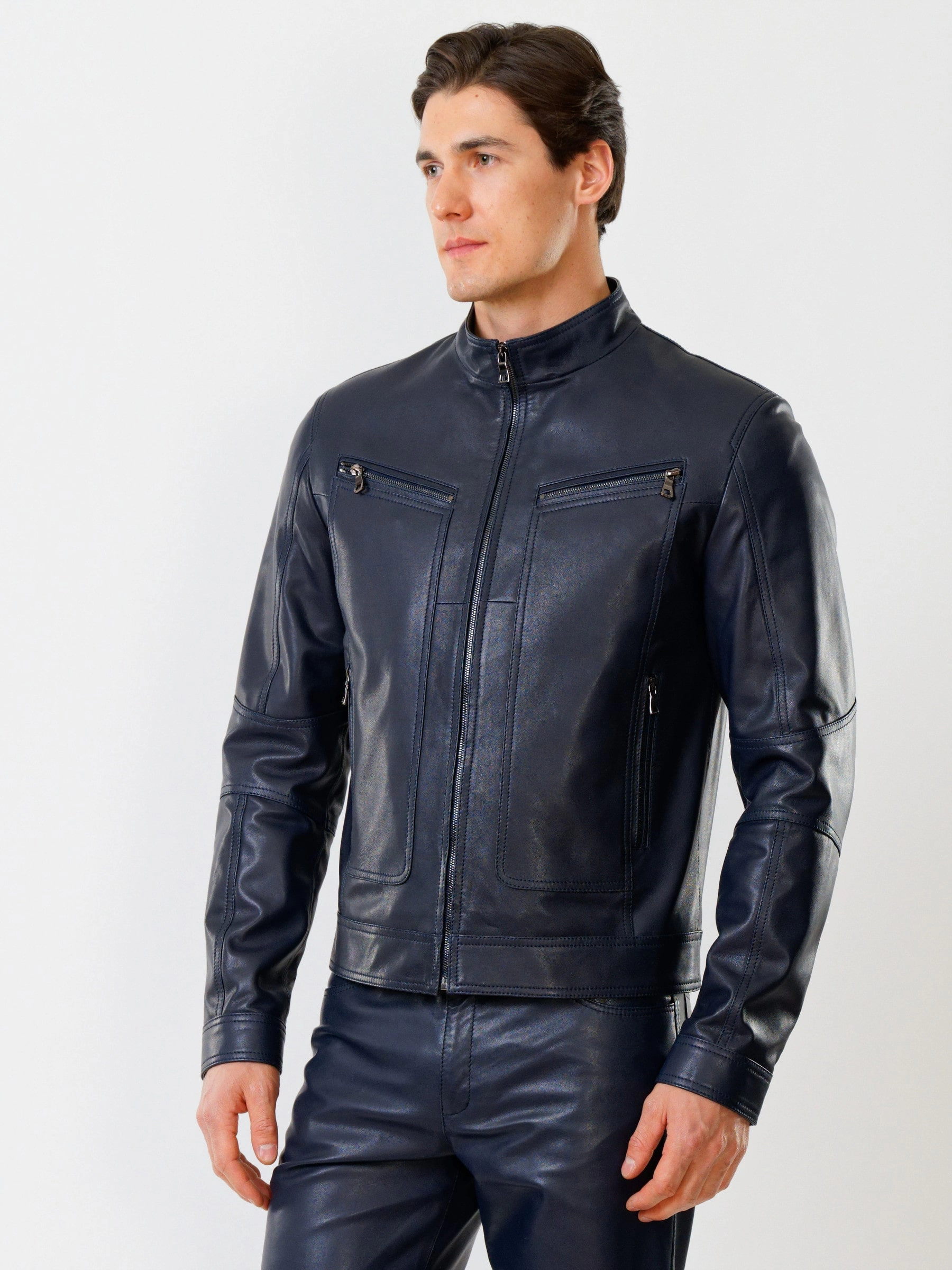 Кожаная куртка мужская 507, синяя, размер 50, артикул 28601