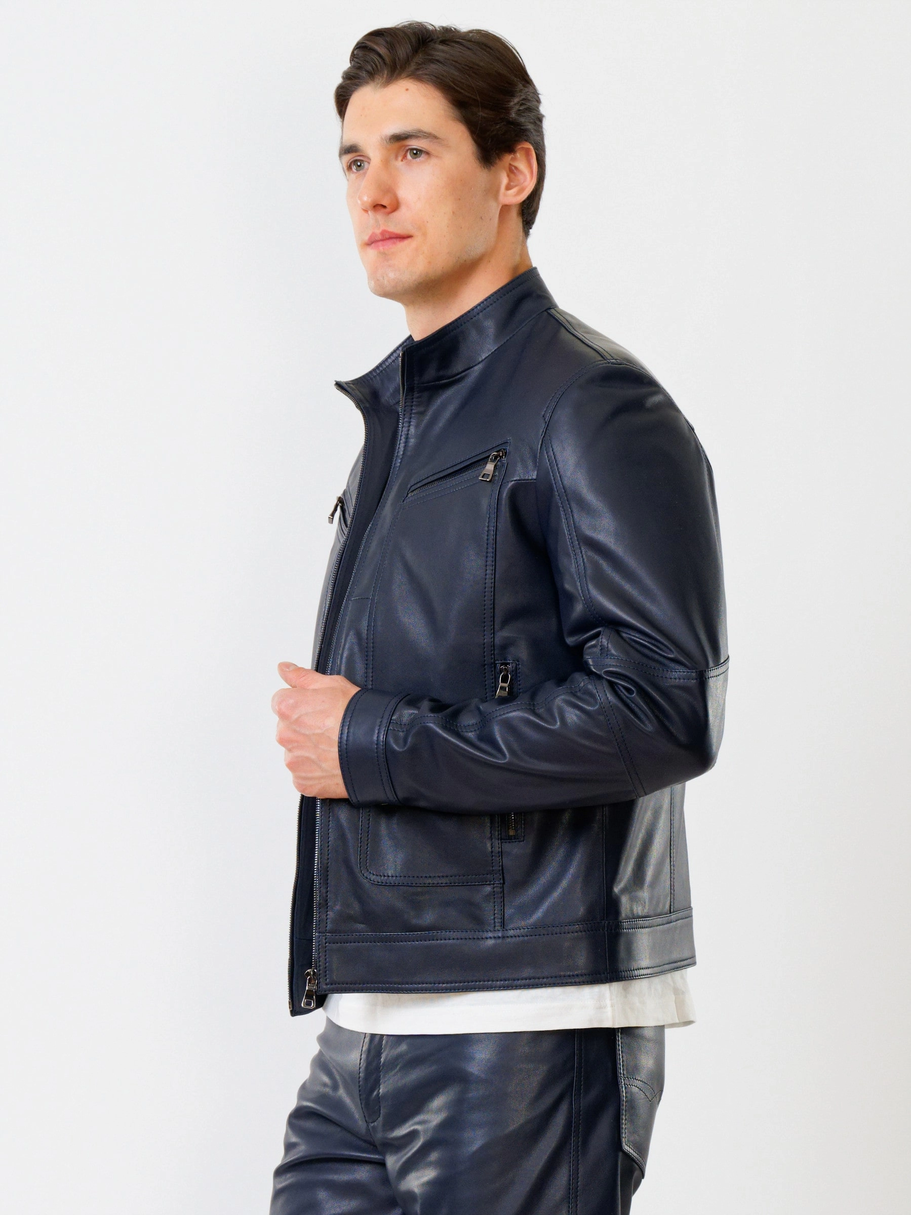 Товар кожаная куртка мужская 507, синяя, размер 50, артикул 28601 выполнен из натуральной кожи с застежкой молния. Рассчитан на сезон: весна-лето. Длина изделия 68 см, силуэт полуприлегающий.