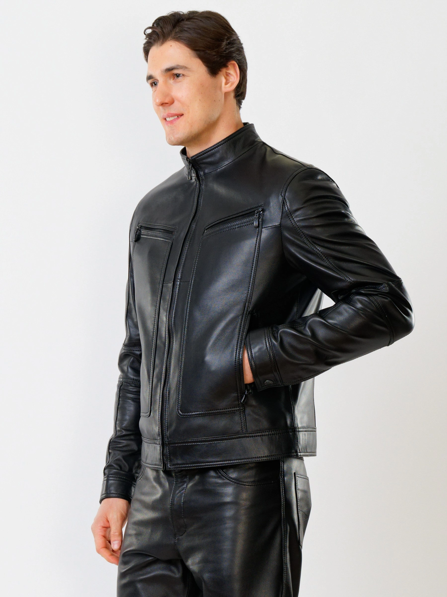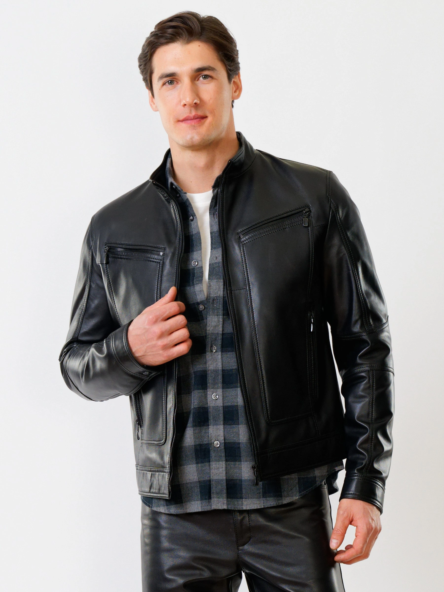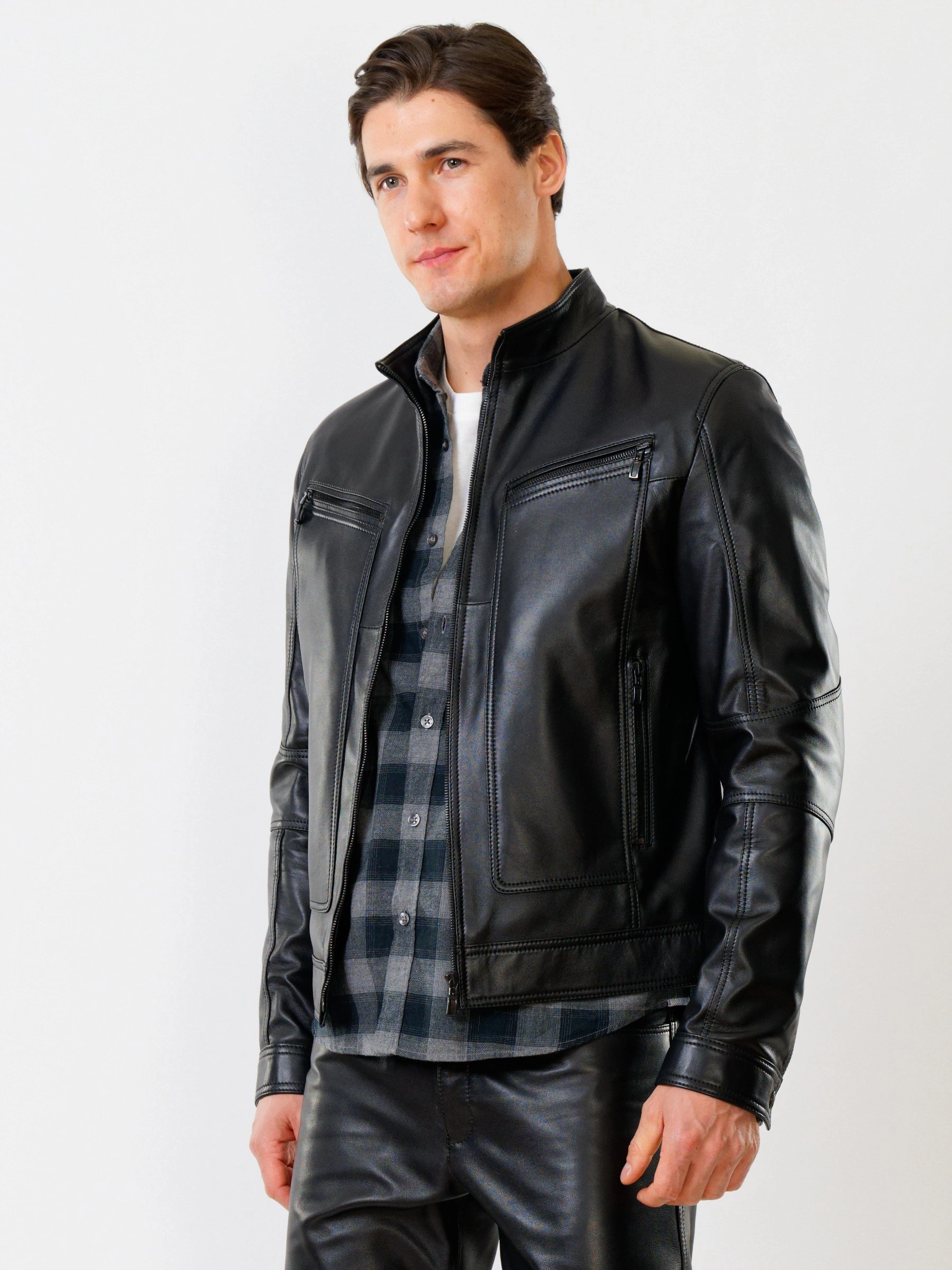 Кожаная куртка мужская 507, черная, размер 48, артикул 28611