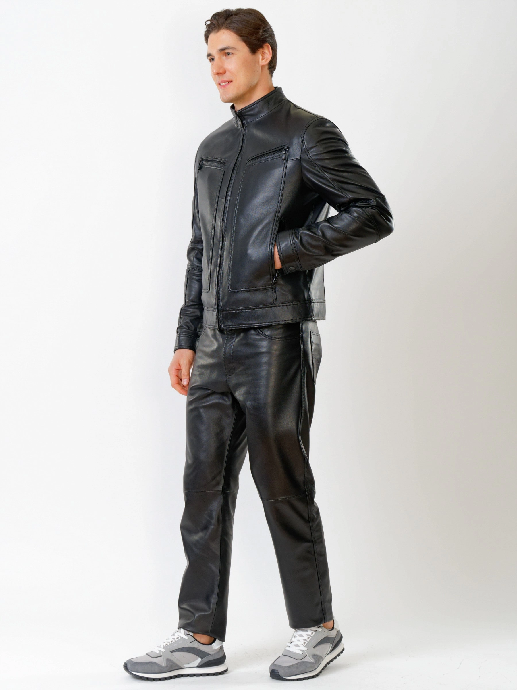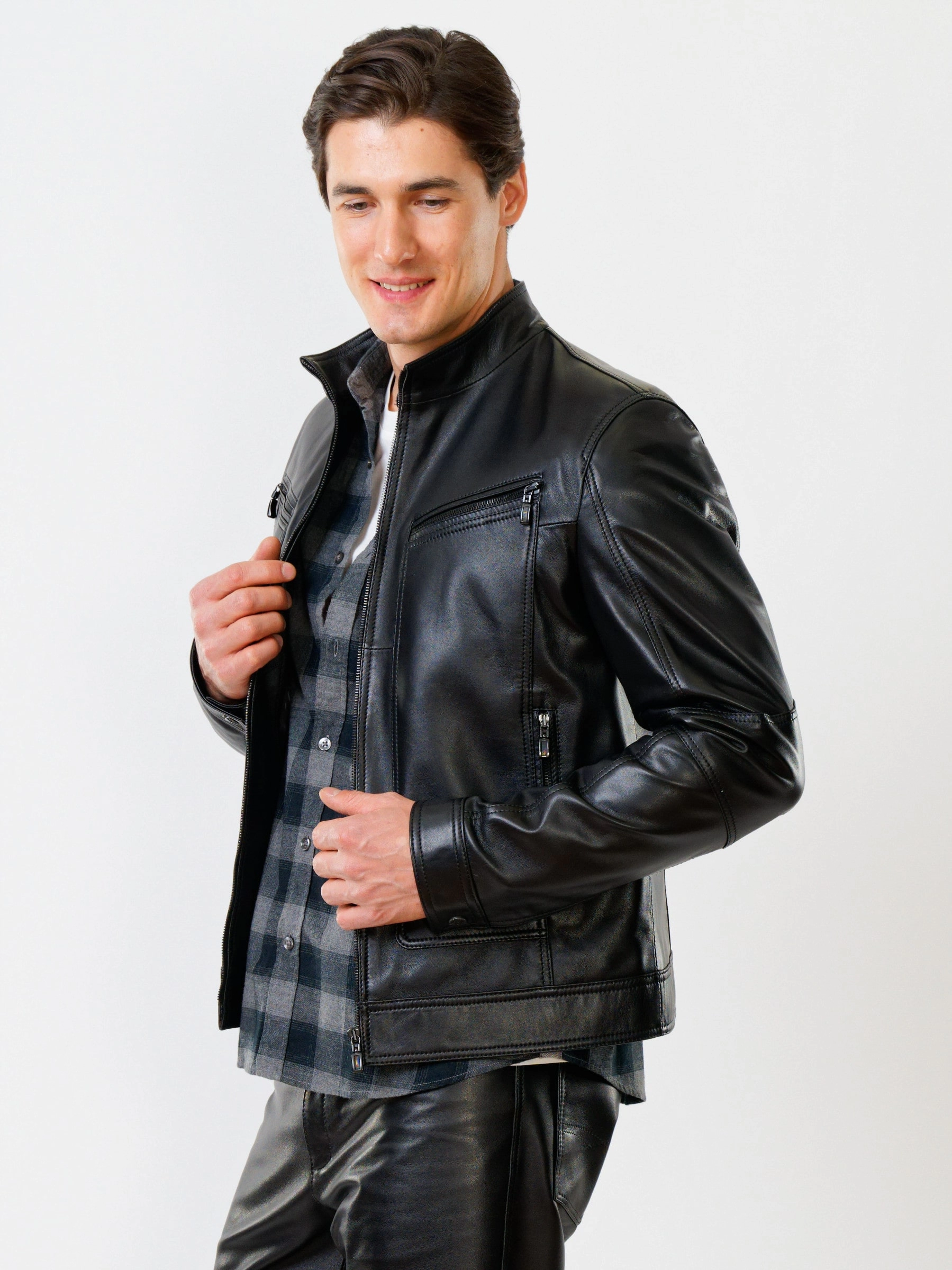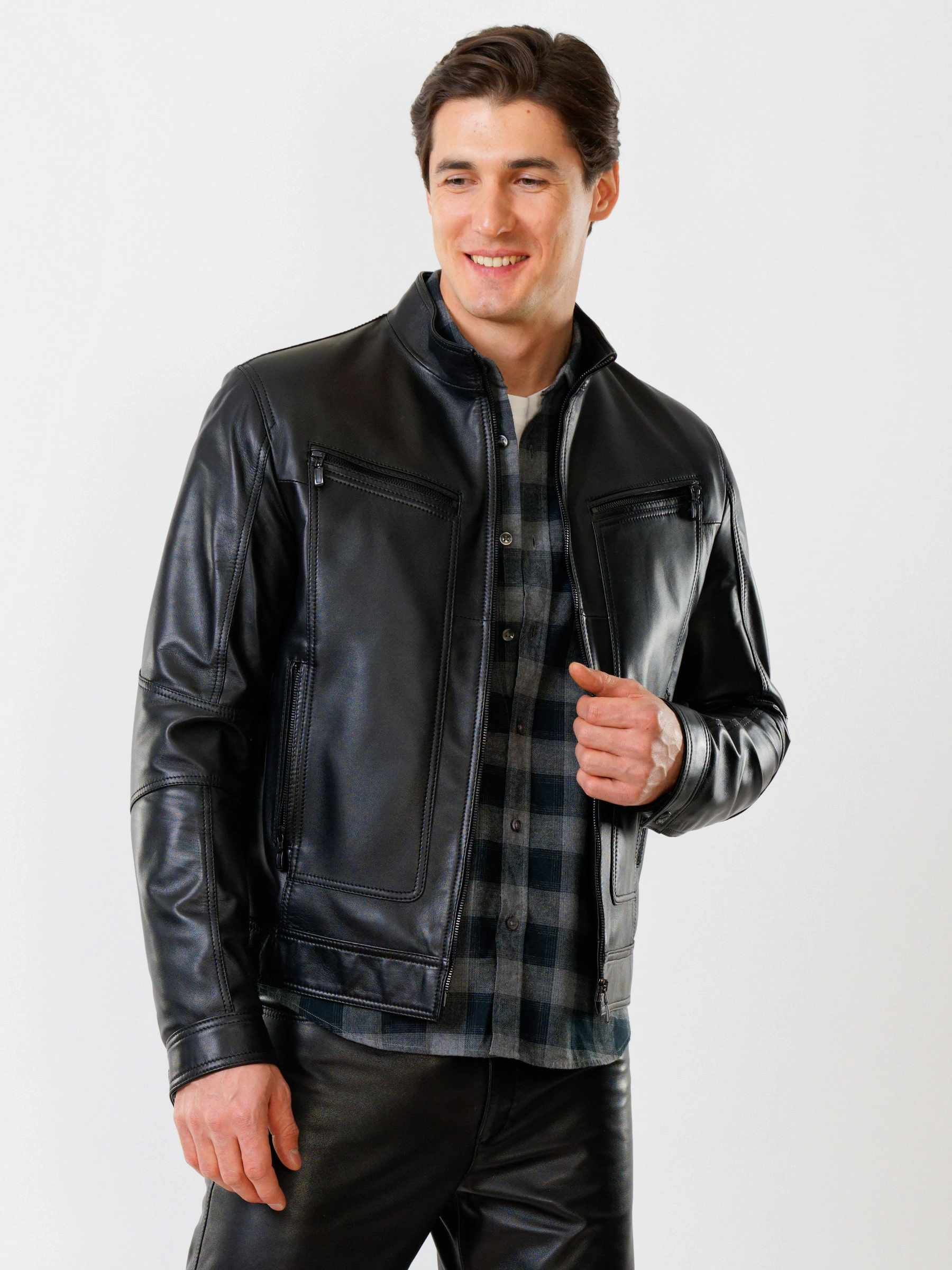 Кожаная куртка мужская 507, черная, размер 48, артикул 28611