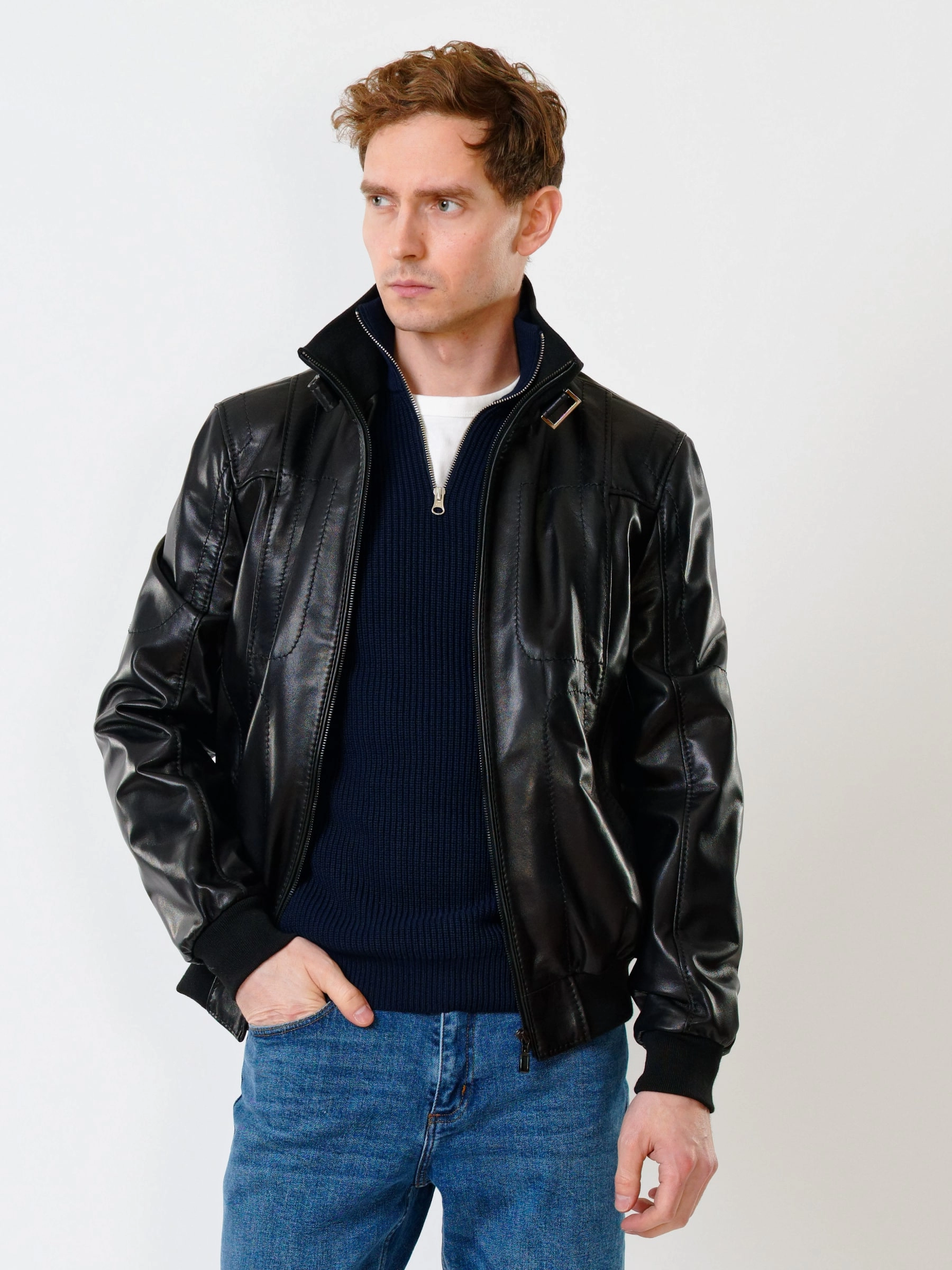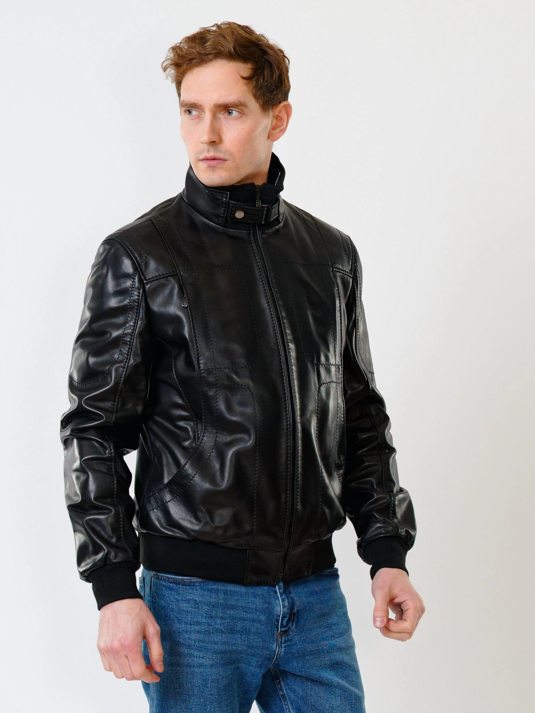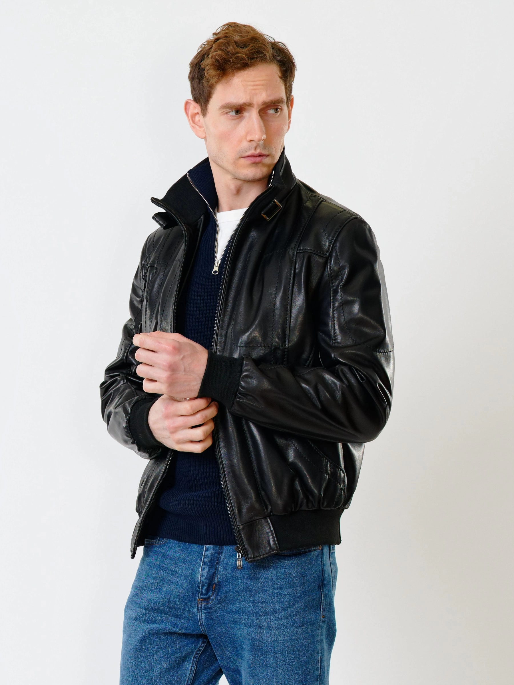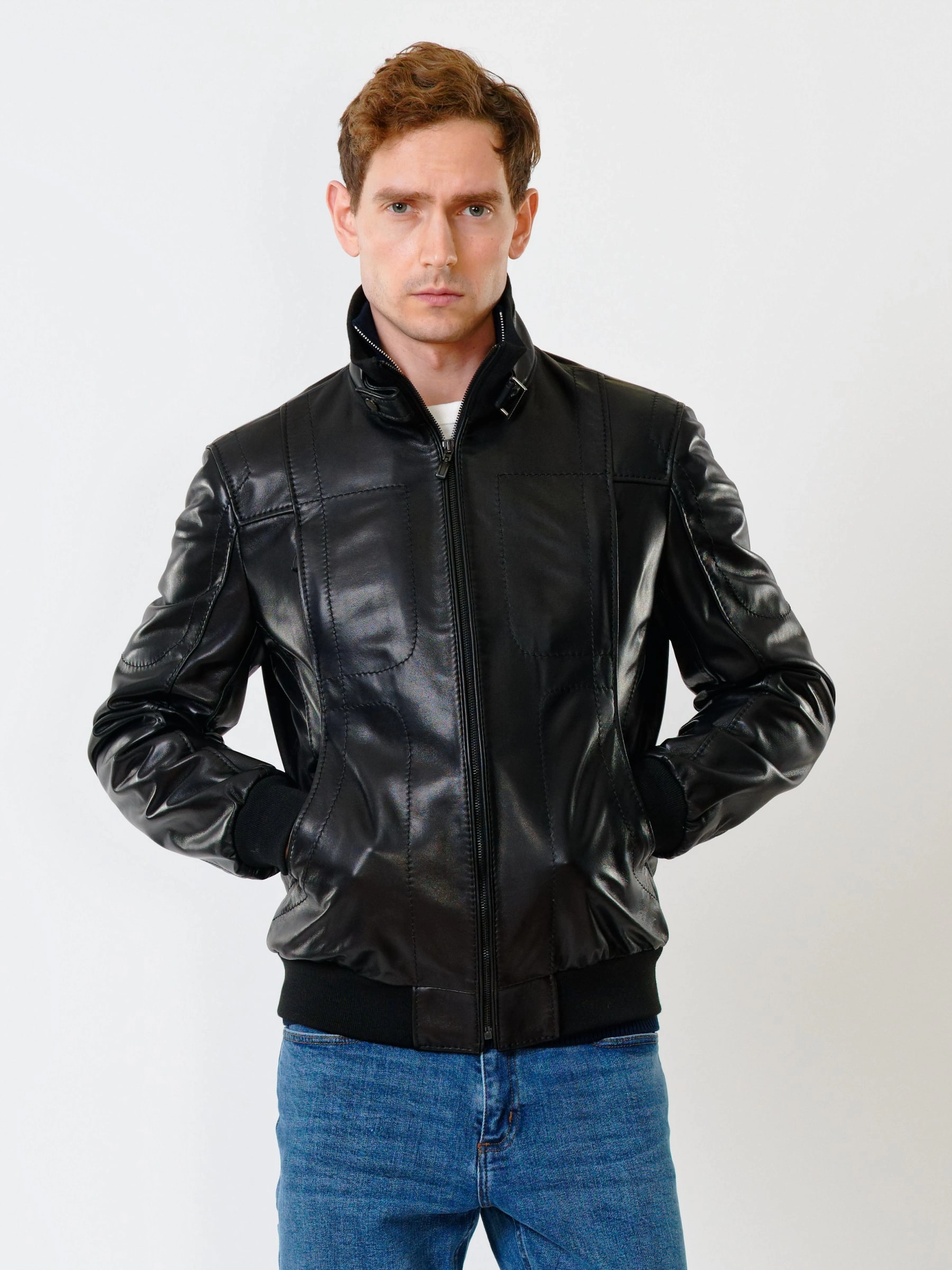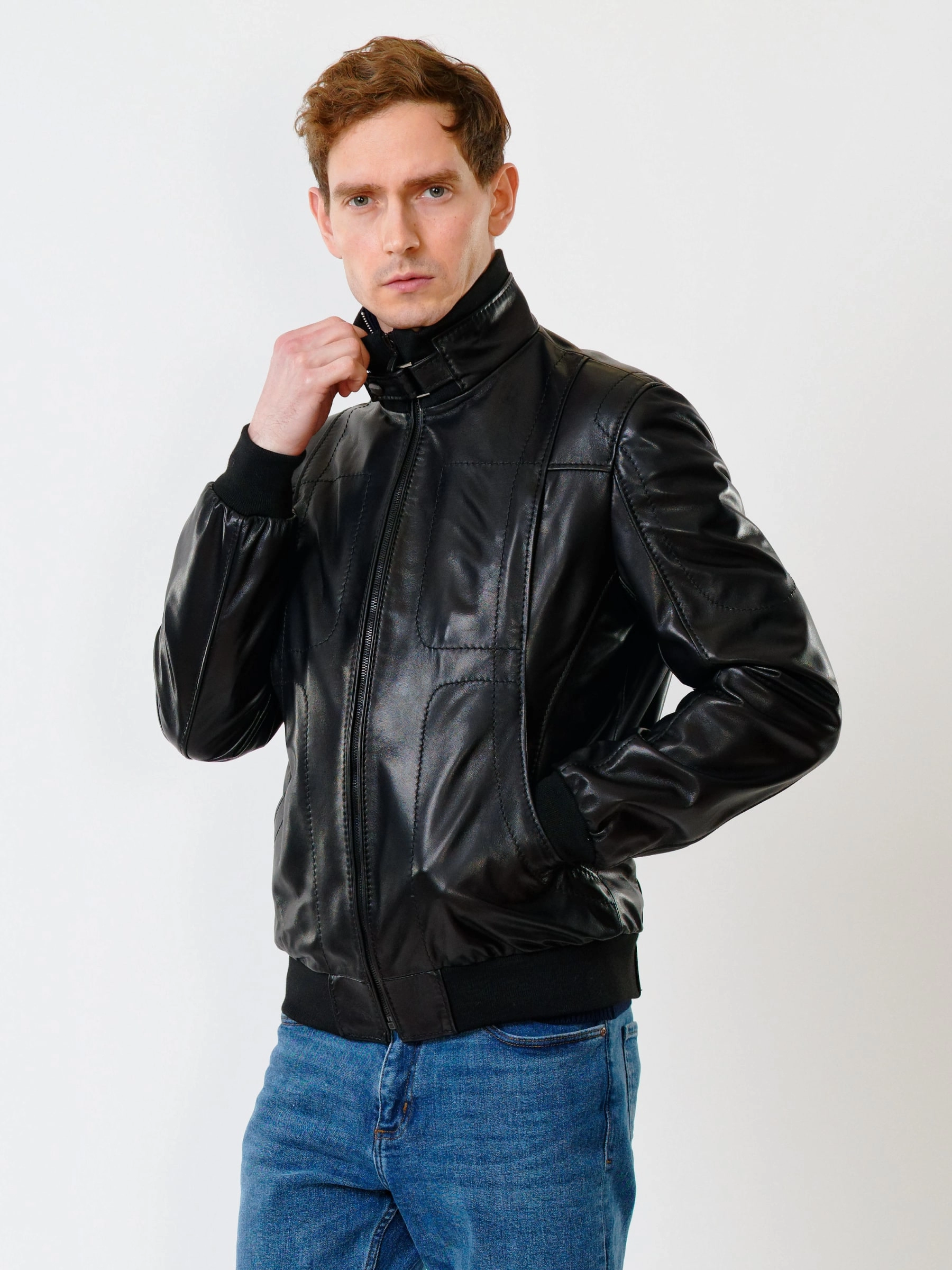 Кожаная куртка бомбер мужская премиум класса 521, черная, размер 48, артикул 28551