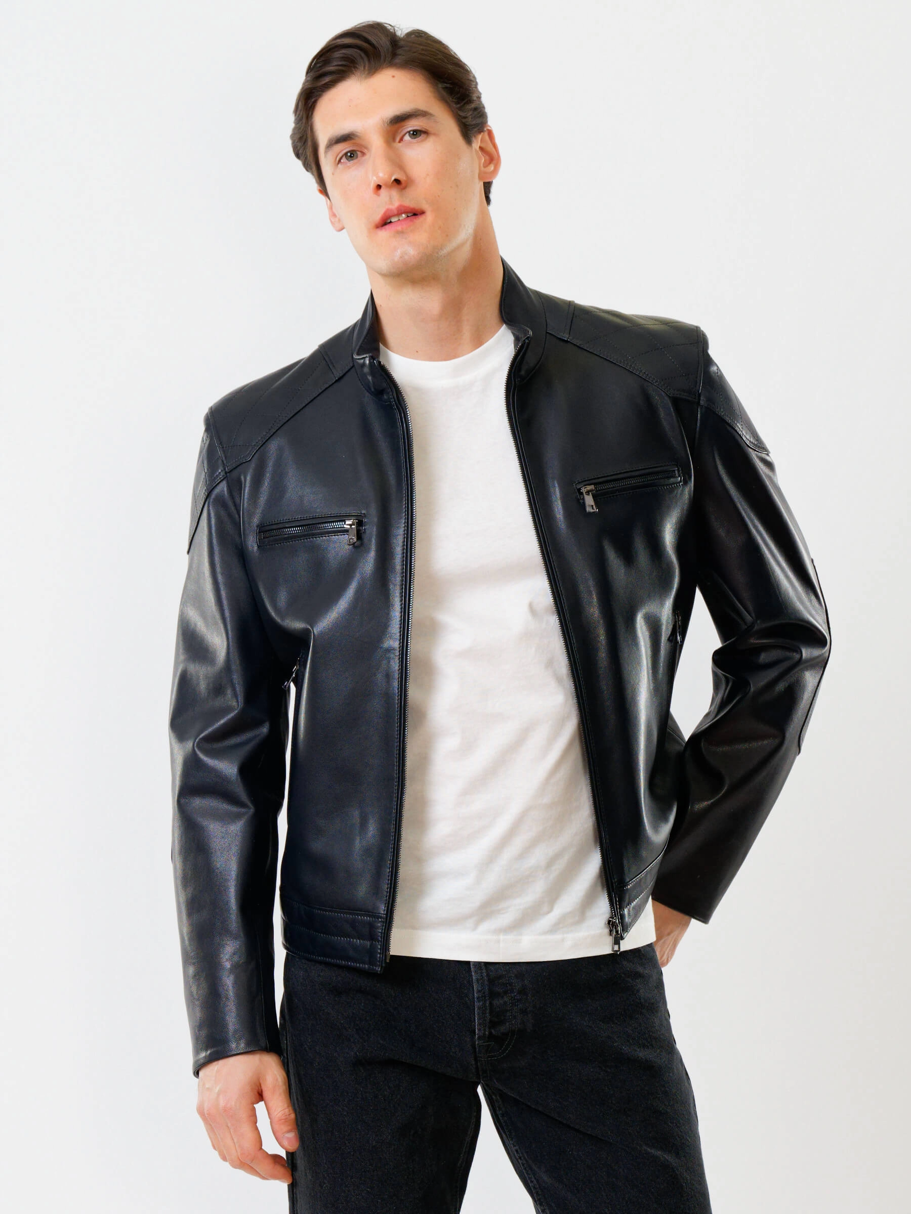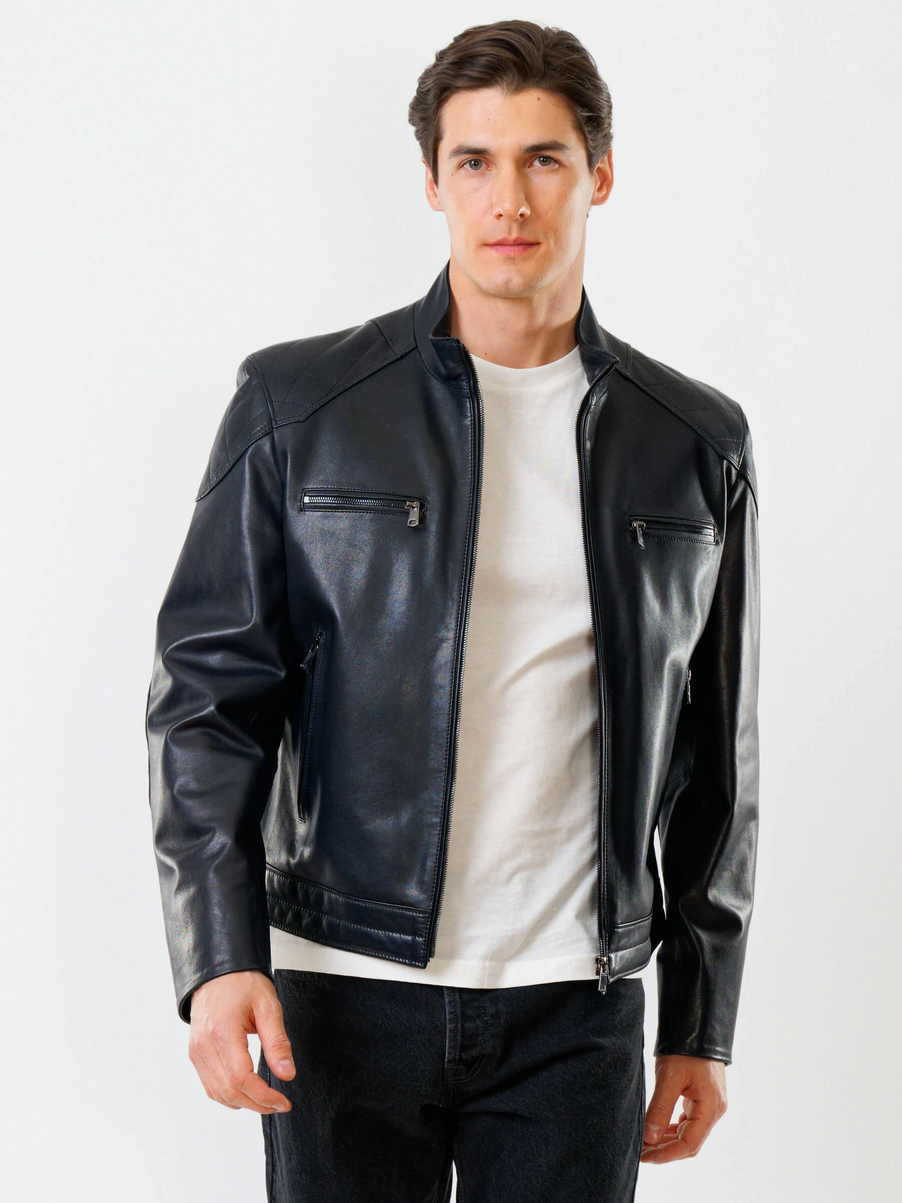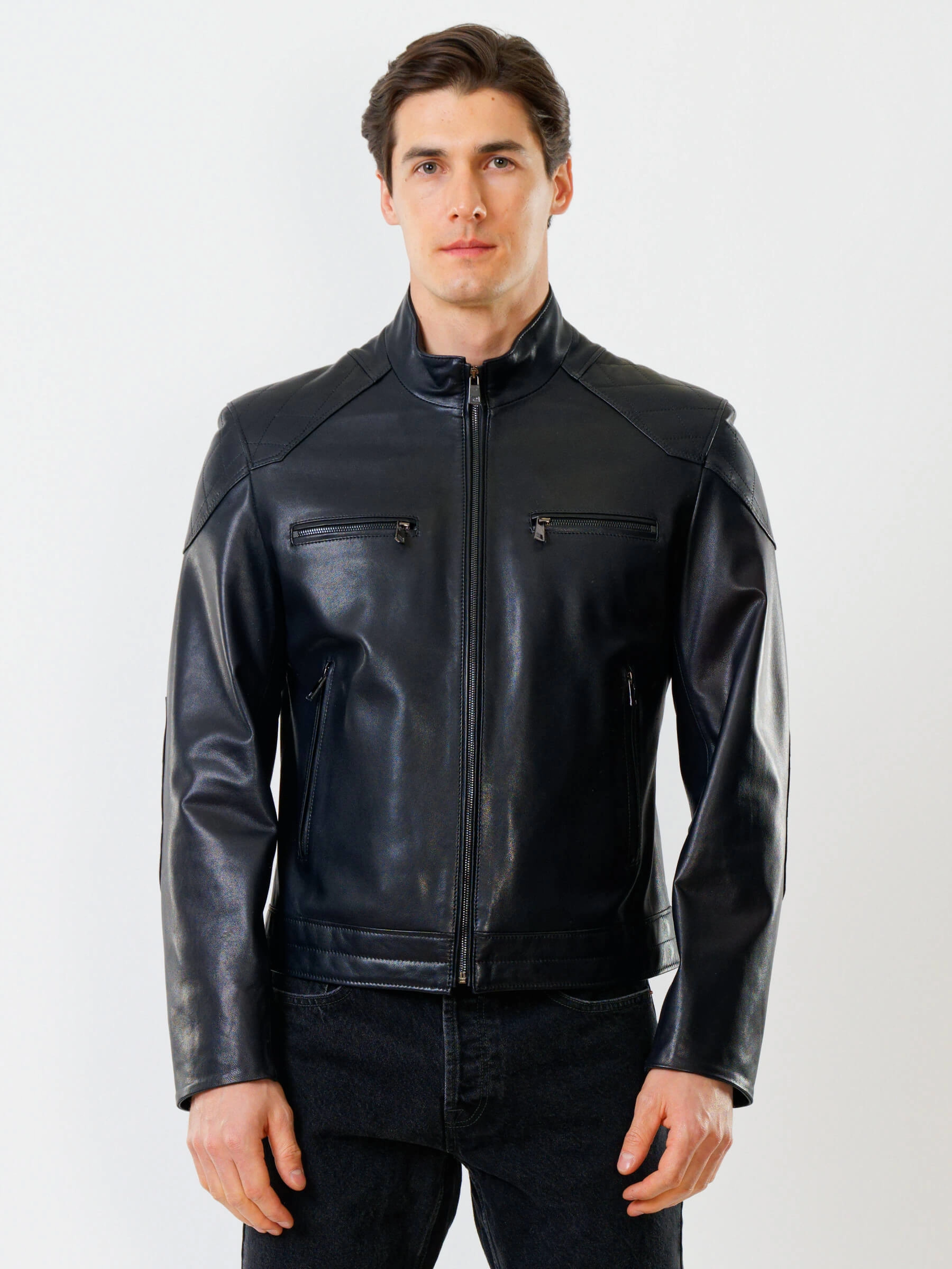 Кожаная куртка мужская 545, синяя, размер 50, артикул 28701