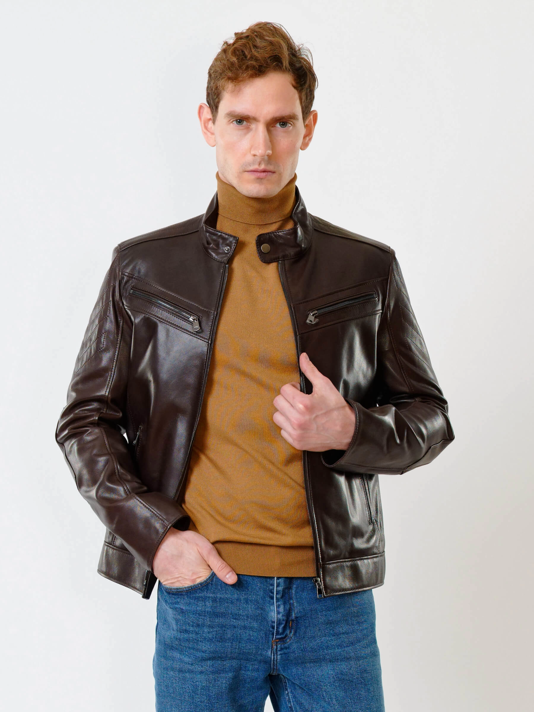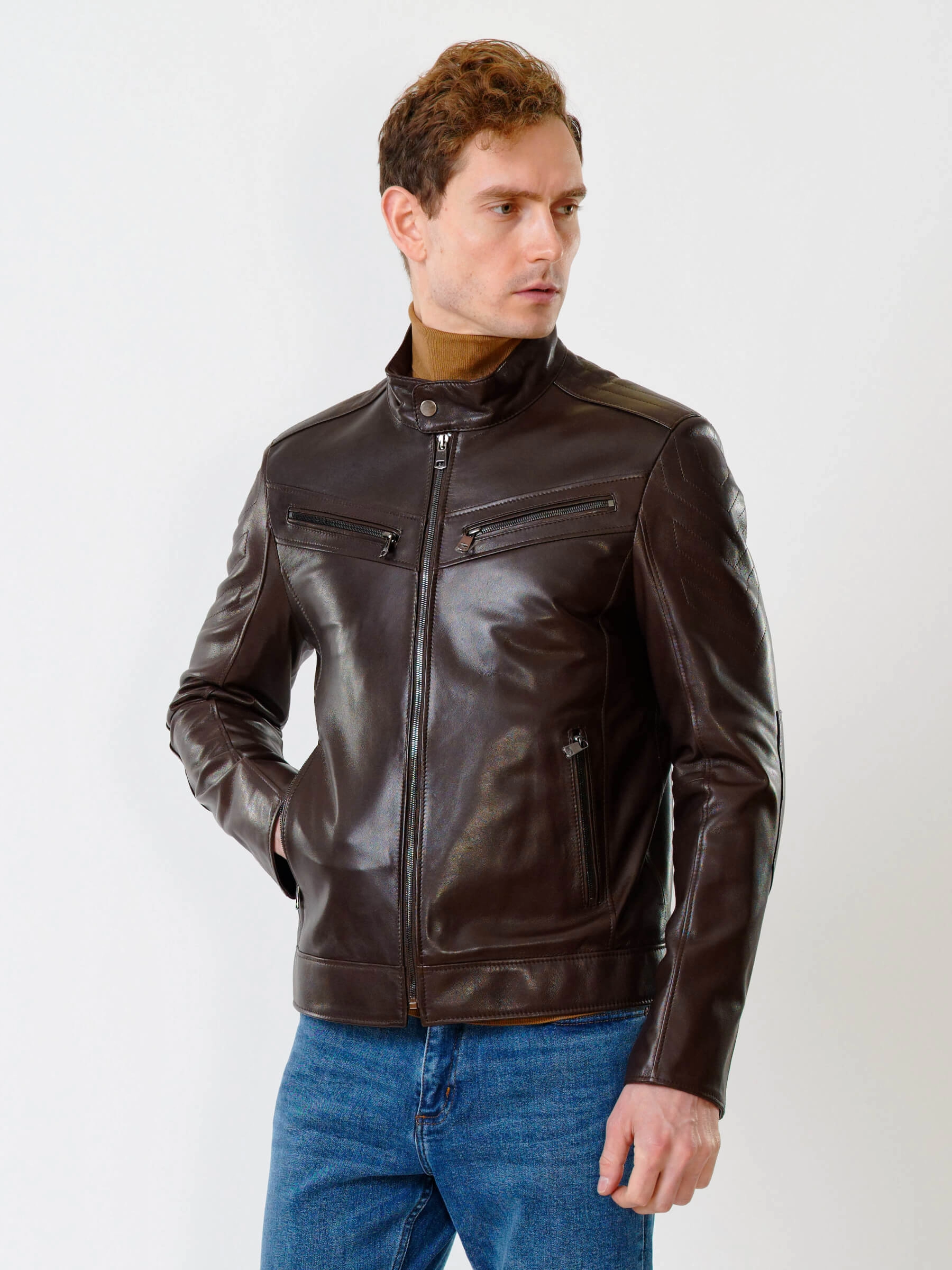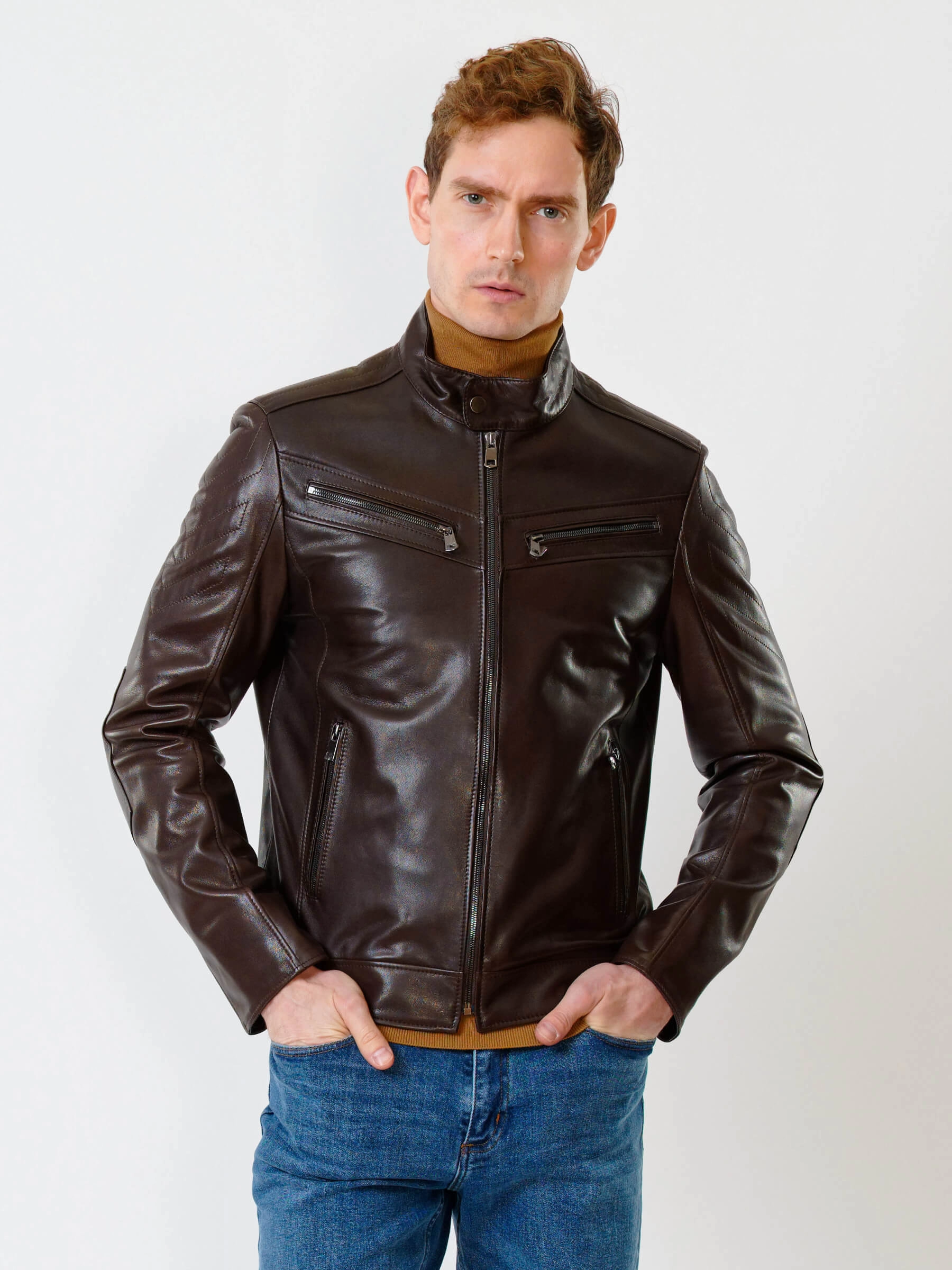 Кожаная куртка мужская 546, коричневая, размер 50, артикул 28460