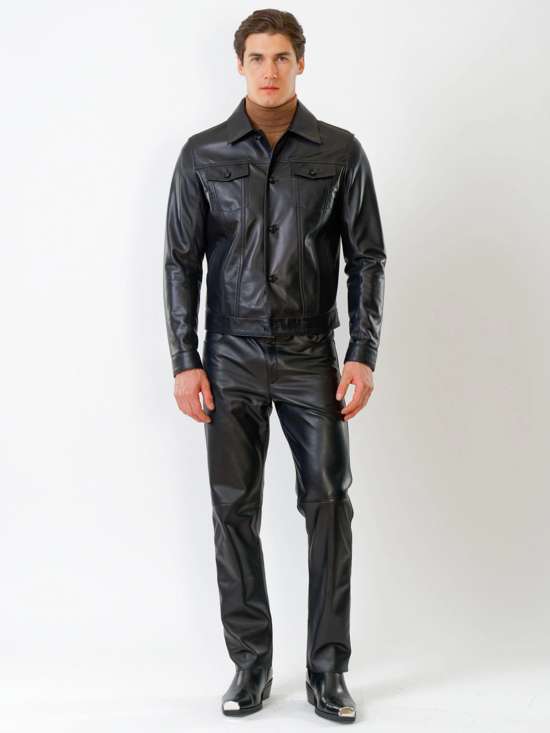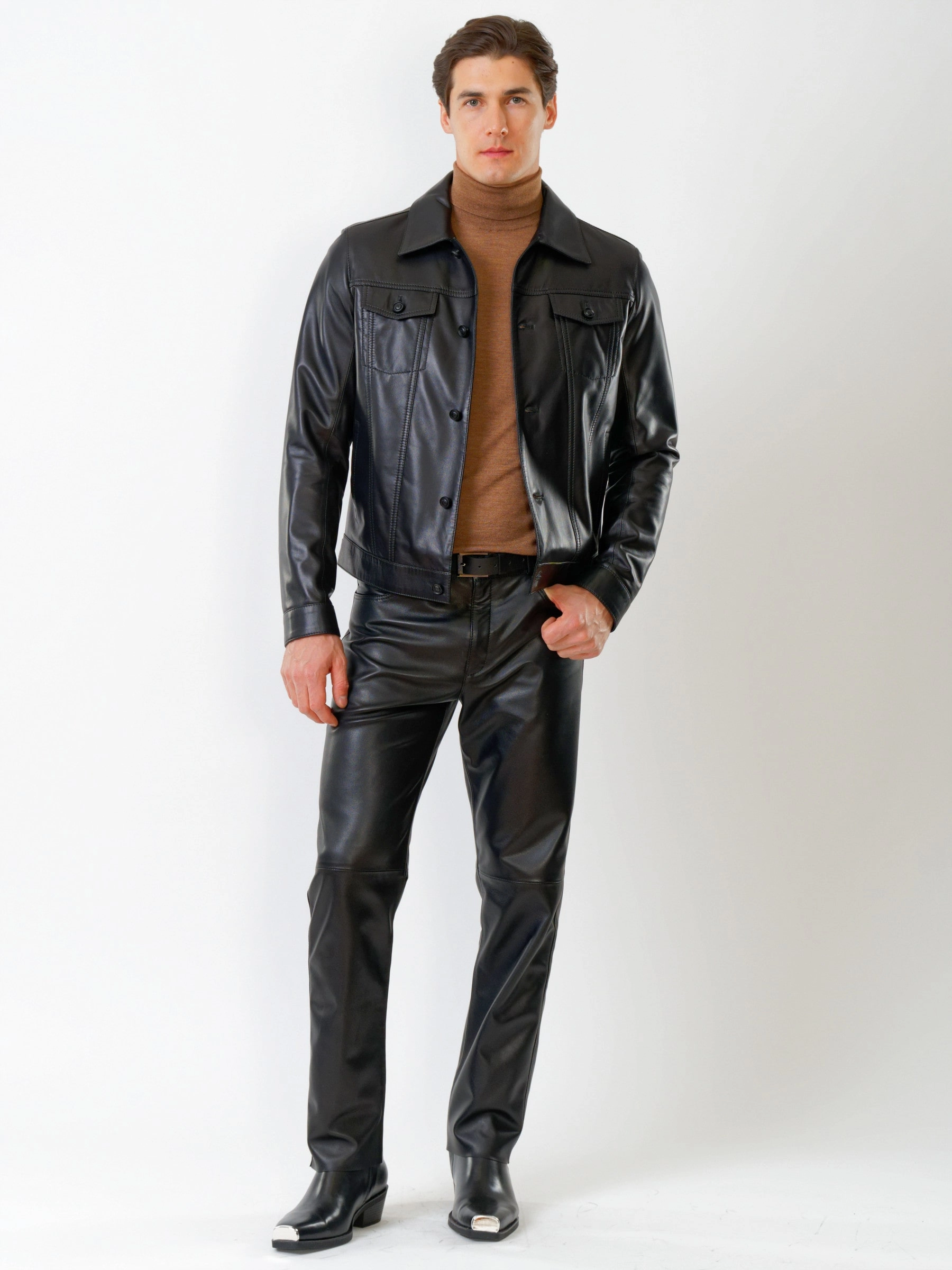 Кожаный комплект мужской: Куртка 550 + Брюки 01, черный, р. 48, артикул 140190