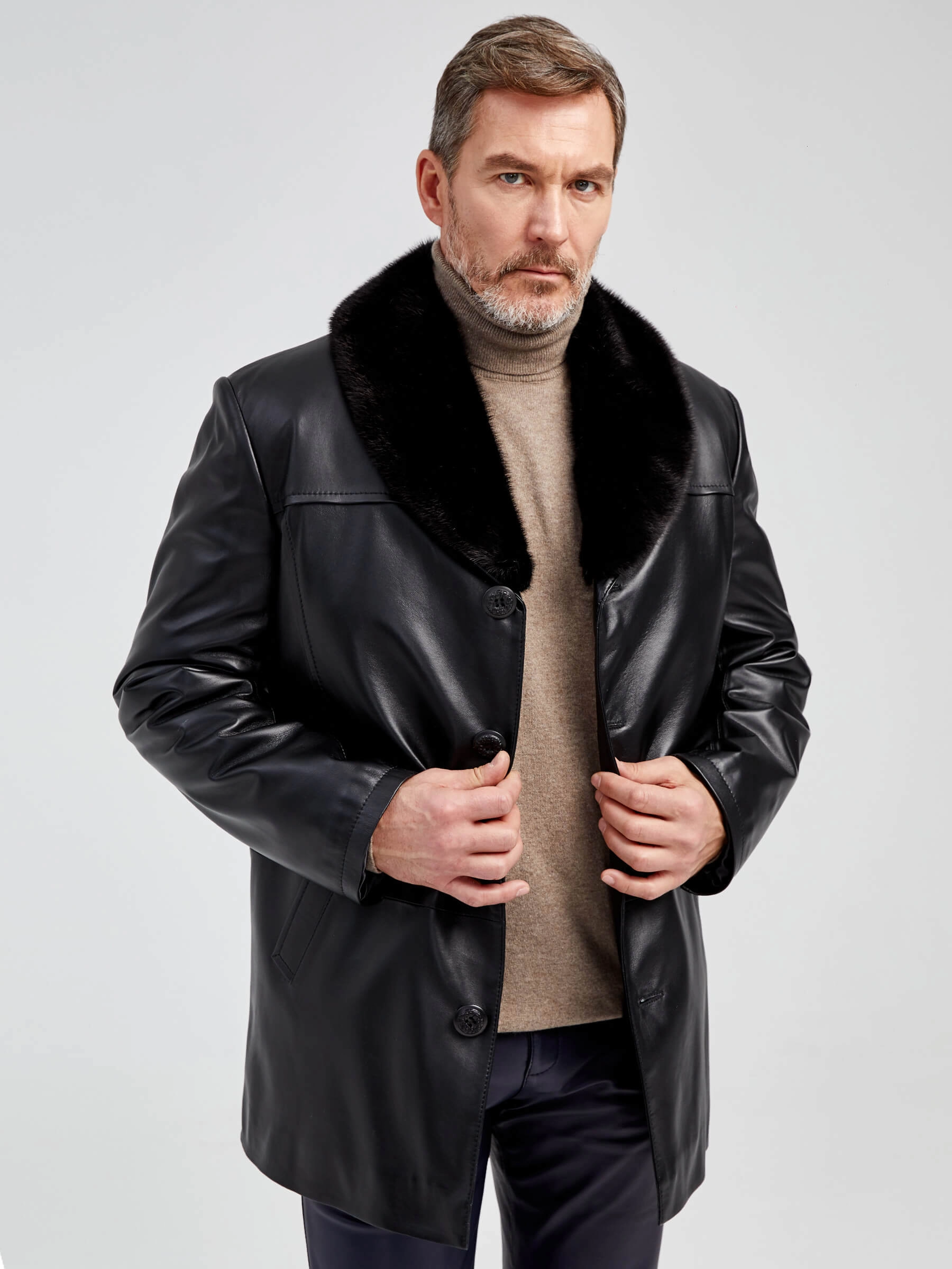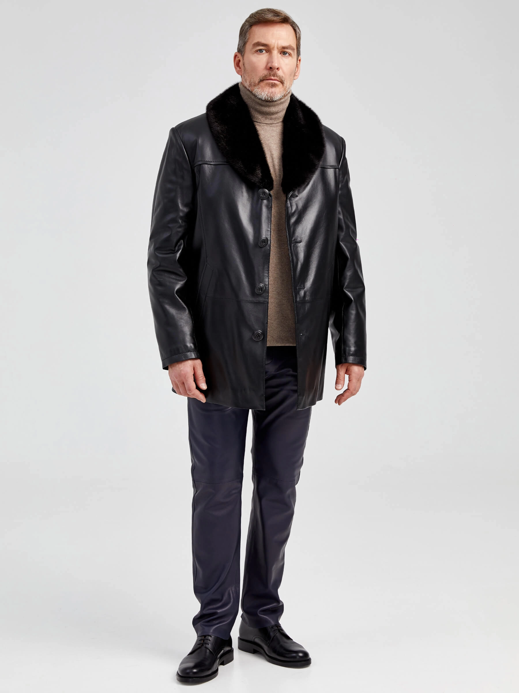 Классический дизайн. Кожа высшего качества. Великолепное исполнение. Модель гораздо сложнее, чем кажется на первый взгляд. Съёмный воротник из меха норки. Съёмная подстёжка из тонкорунной овчины. Редкая универсальность для одежды бизнес-класса. Всегда ко времени, независимо от сезона. Прекрасно сочетается как с деловым костюмом, так и с неофициальной одеждой, например, с джинсами.