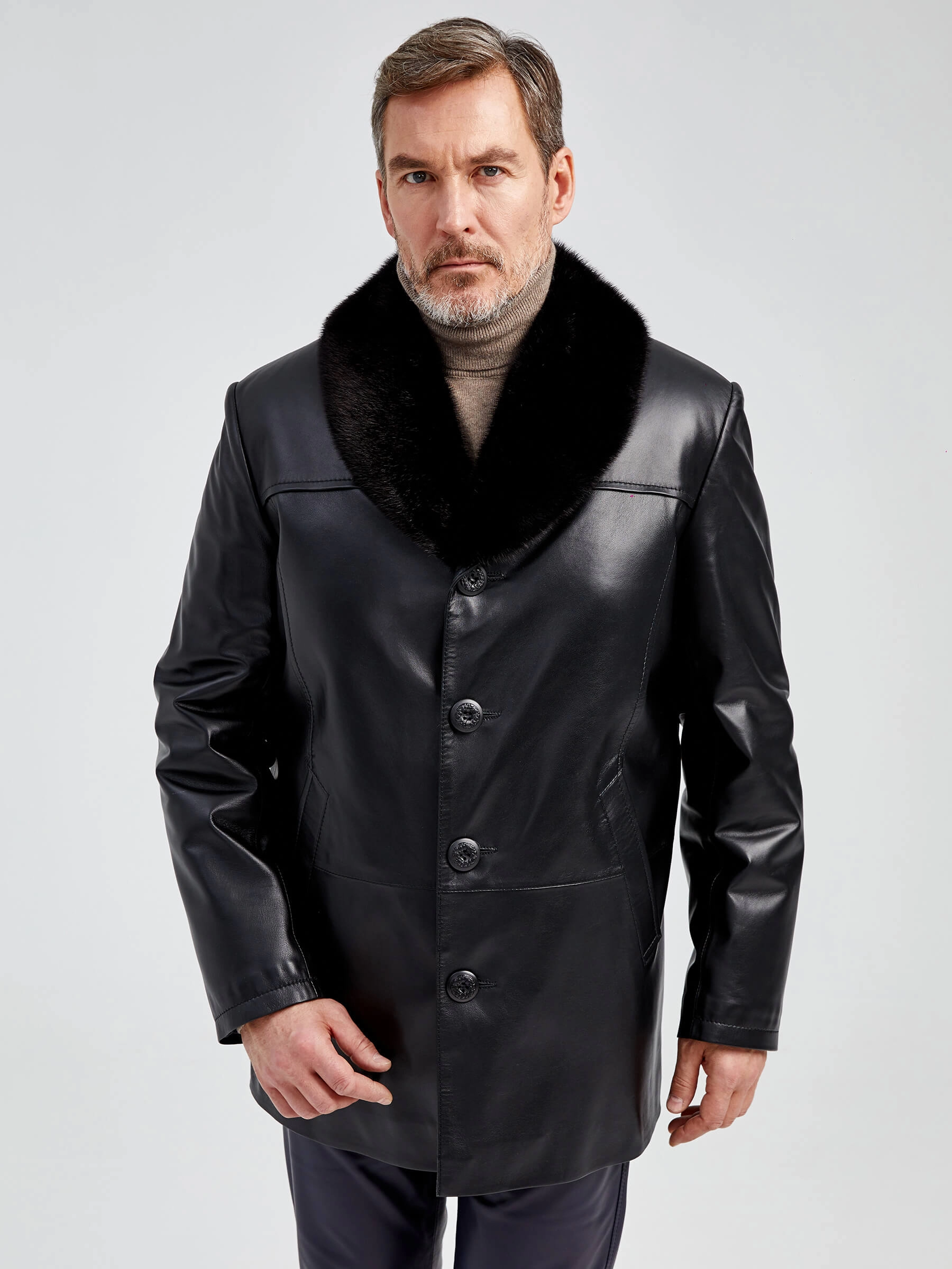 Товар мужская зимняя кожаная куртка с норковым воротником премиум класса 534мех, черная, размер 58, артикул 40492 выполнен из натуральной кожи с застежкой пуговицы. Рассчитан на сезон: осень-зима. Длина изделия 86 см, силуэт прямой.