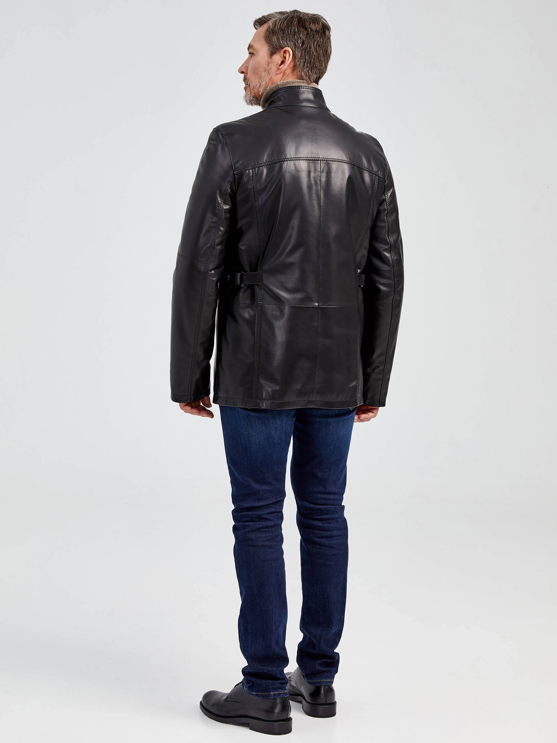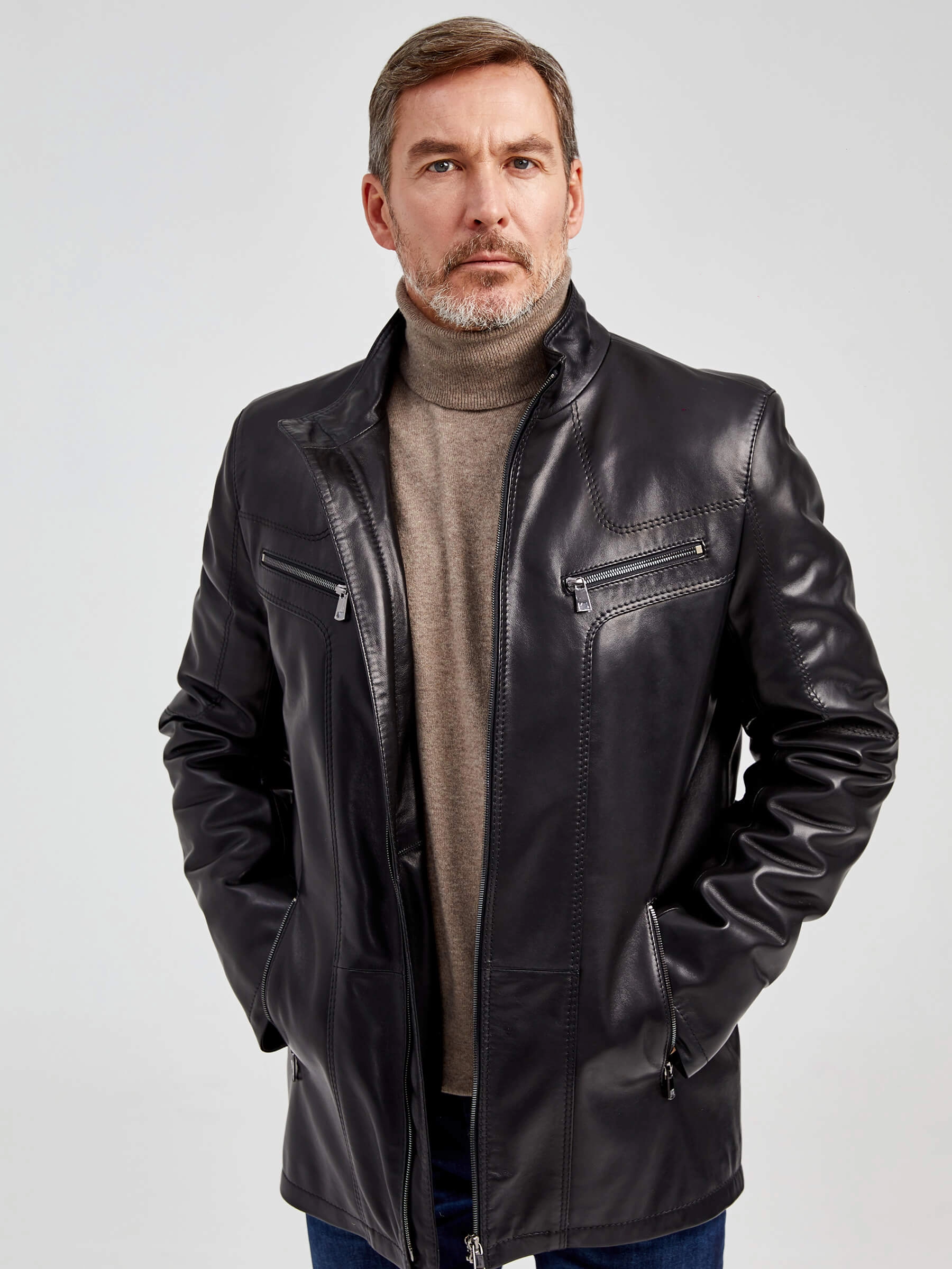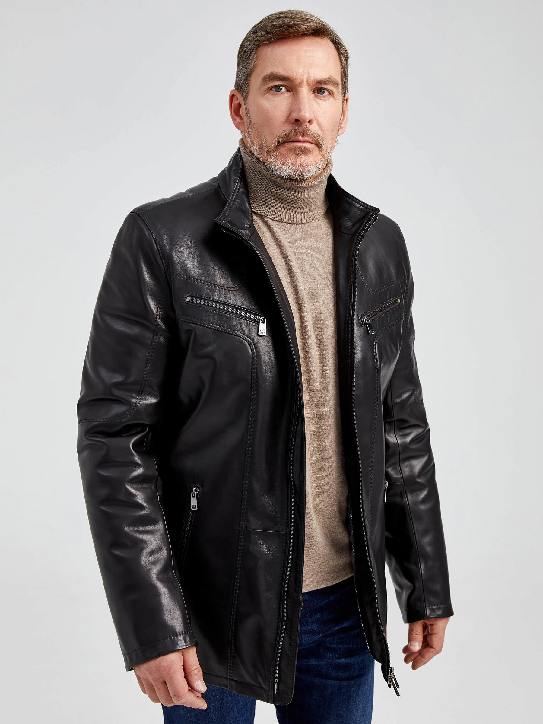 Мужская кожаная куртка. Кожа премиального качества. Воротник-стойка. Удобные наружные и внутренние карманы на молниях. Прекрасная свобода движений. Чёткая посадка по фигуре. Идеальная работа наших портных.