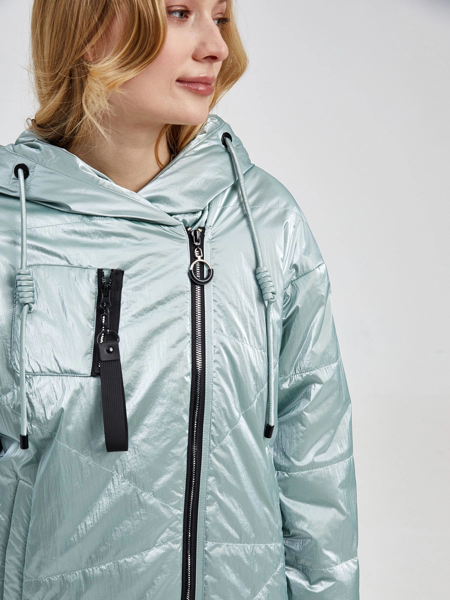 Товар женская текстильная утепленная куртка с капюшоном 20032, мятная, размер 42, артикул 25050 выполнен из текстиль с застежкой молния. Рассчитан на сезон: демисезон. Длина изделия 51-74 см, силуэт прямой.