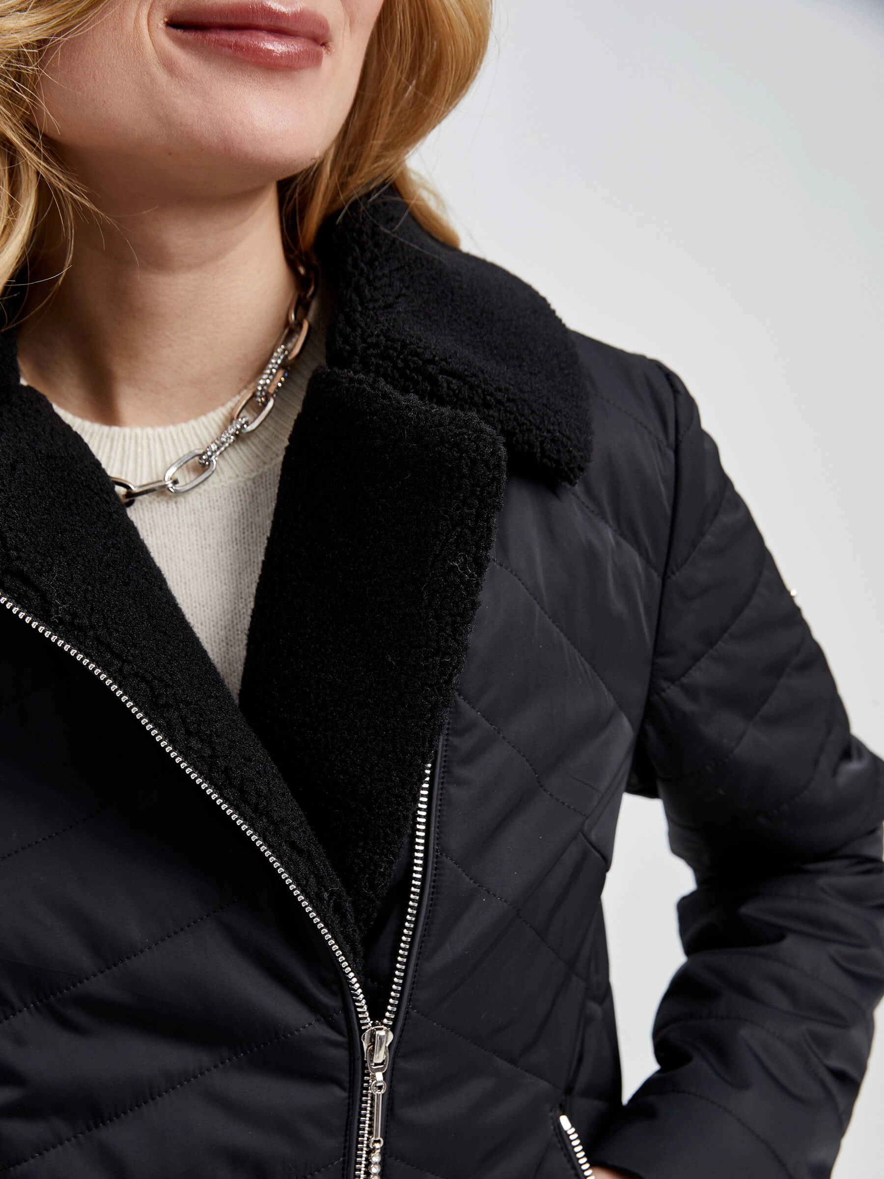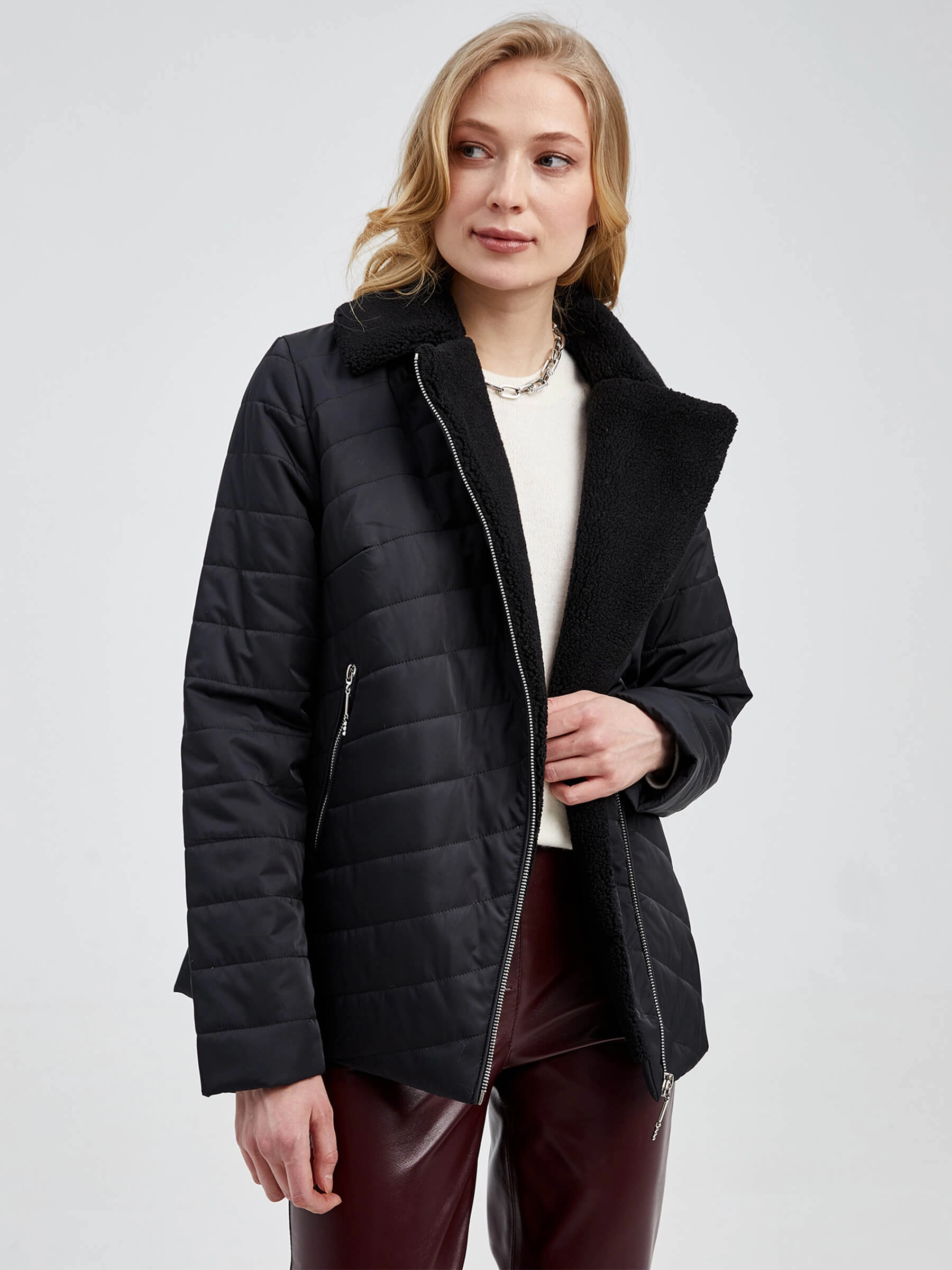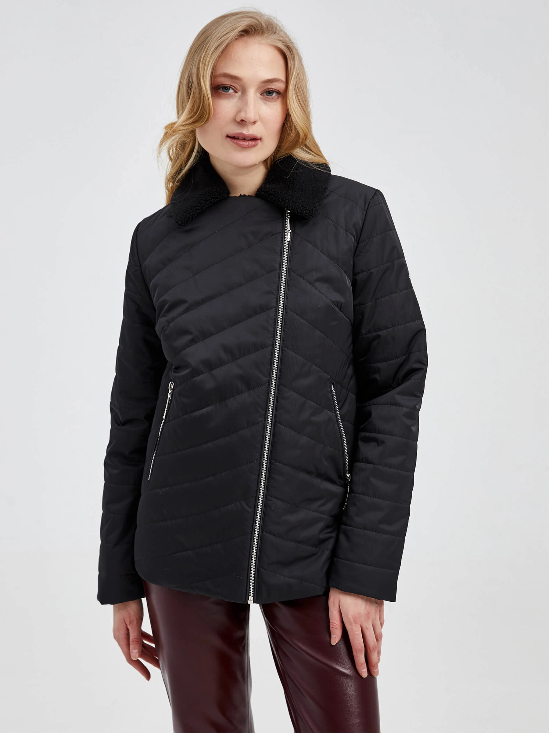 Товар текстильная утепленная женская куртка косуха 21130, черная, размер 42, артикул 25000 выполнен из текстиль с застежкой молния. Рассчитан на сезон: демисезон. Длина изделия 51-74 см, силуэт прямой.