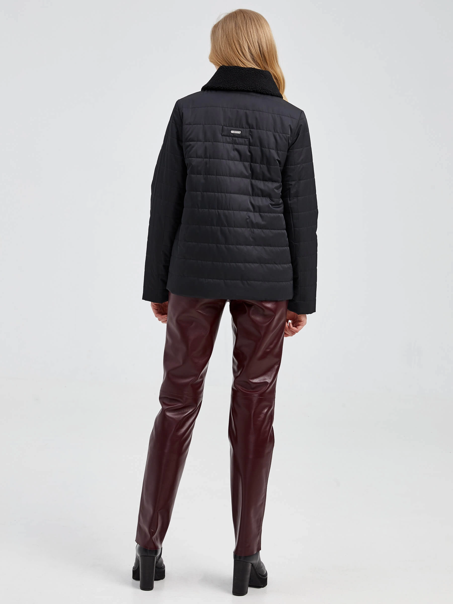 Текстильная утепленная женская куртка косуха 21130, черная, размер 42, артикул 25000