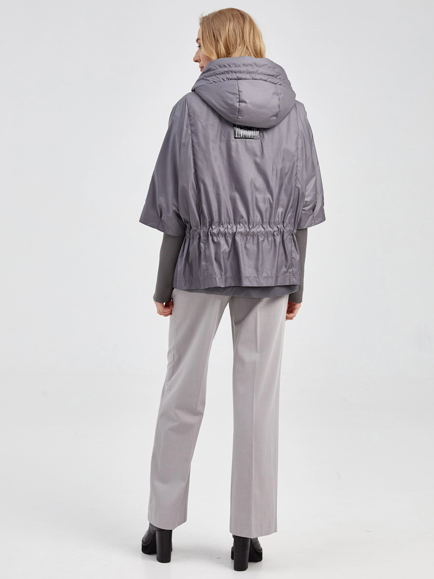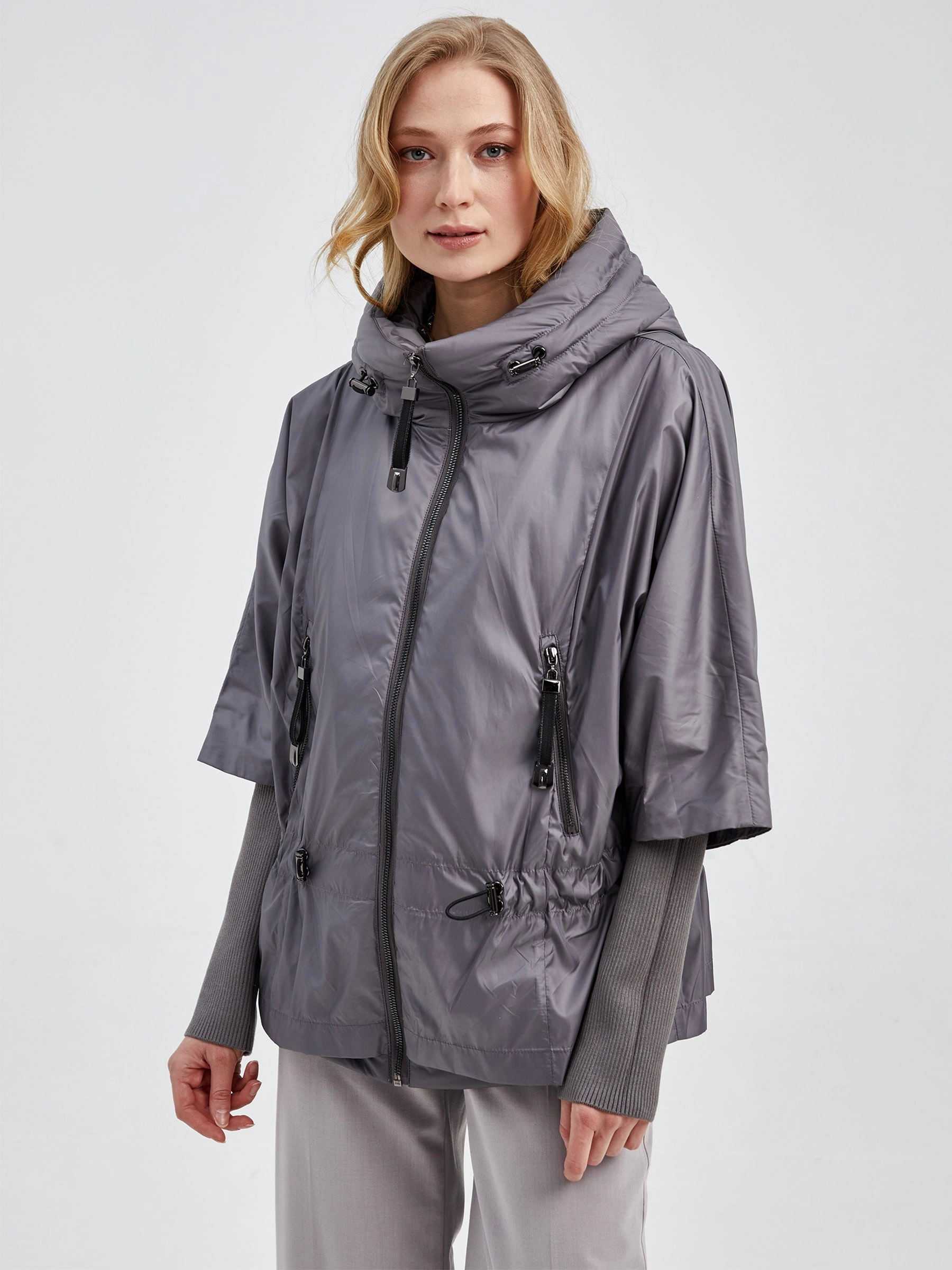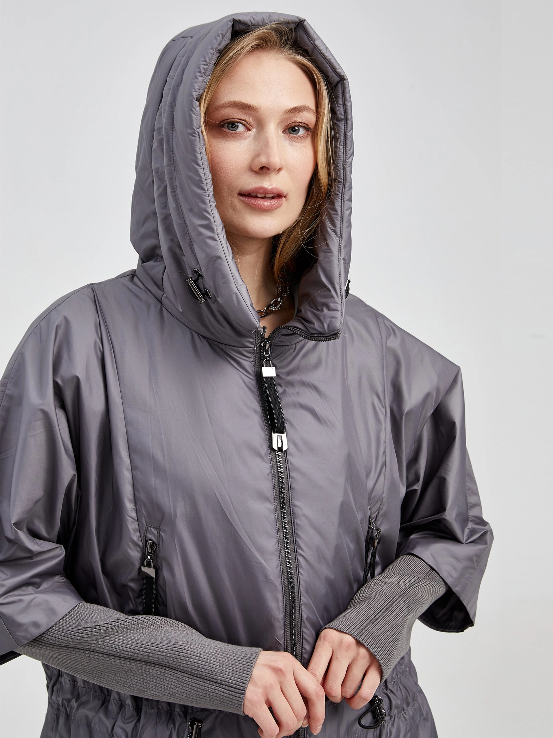 Товар текстильная утепленная с капюшоном женская куртка 21420, серая, размер 42, артикул 25120 выполнен из текстиль с застежкой молния. Рассчитан на сезон: демисезон. Длина изделия 51-74 см, силуэт прямой.