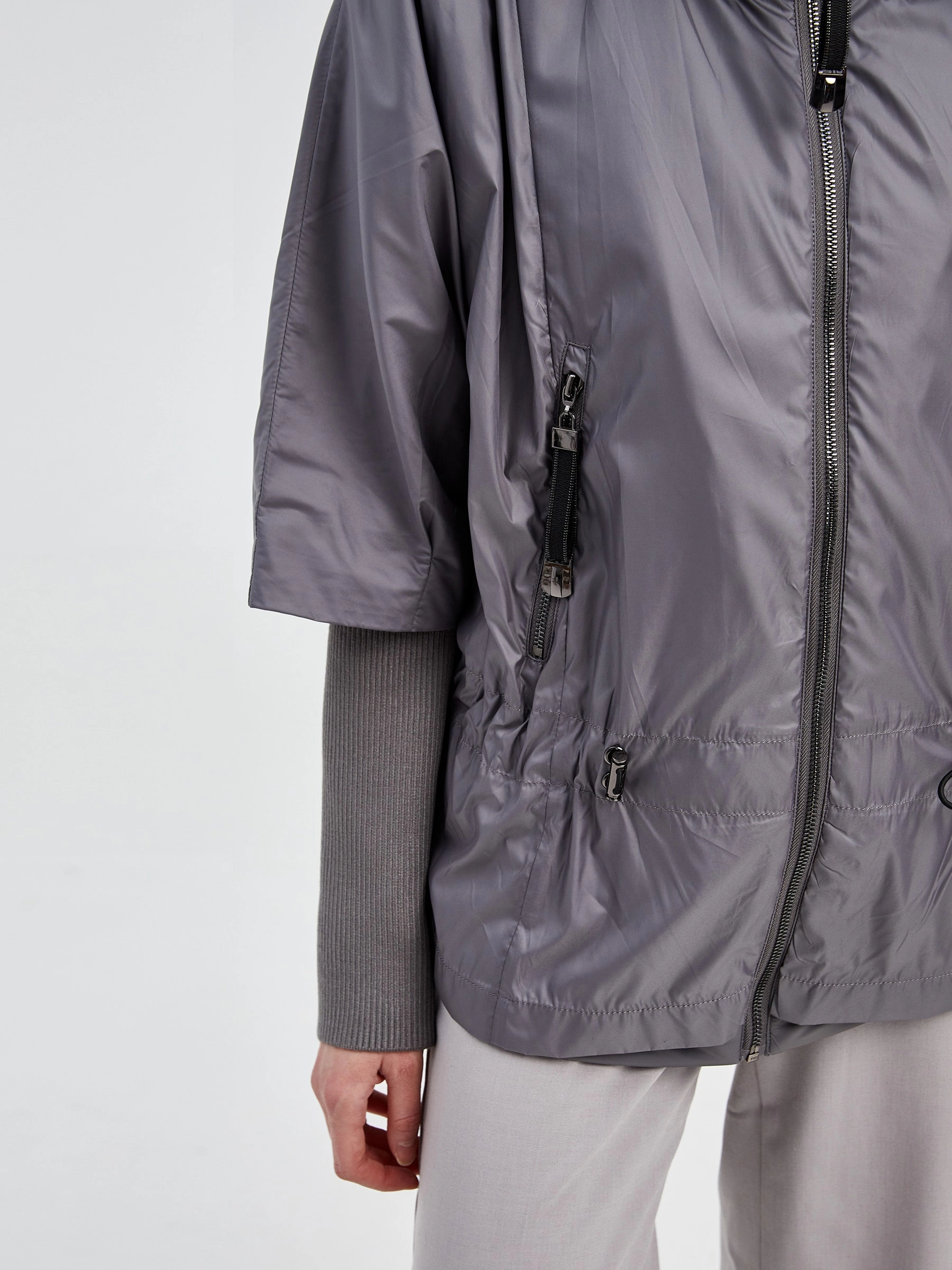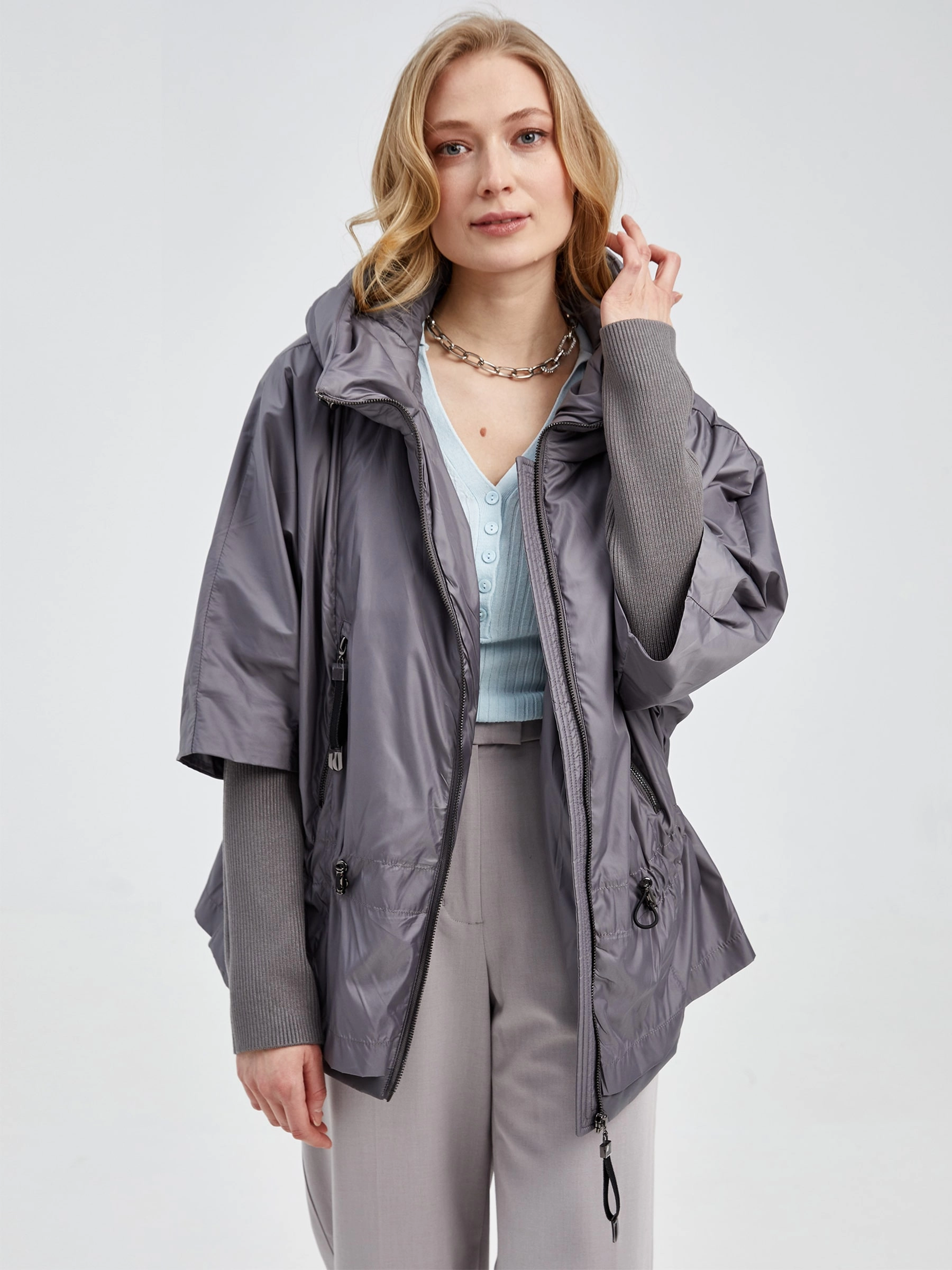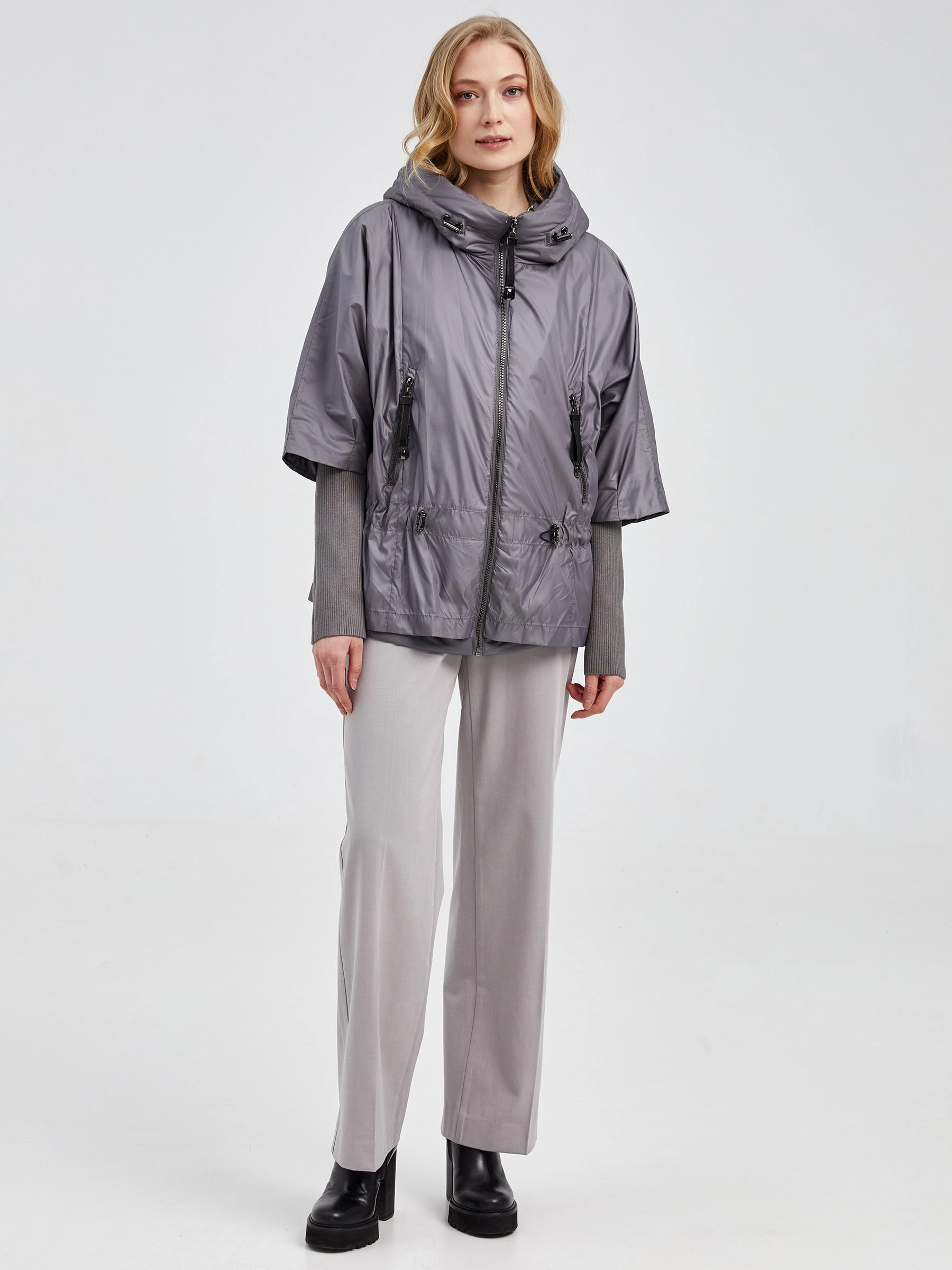 Товар текстильная утепленная с капюшоном женская куртка 21420, серая, размер 42, артикул 25120 выполнен из текстиль с застежкой молния. Рассчитан на сезон: демисезон. Длина изделия 51-74 см, силуэт прямой.