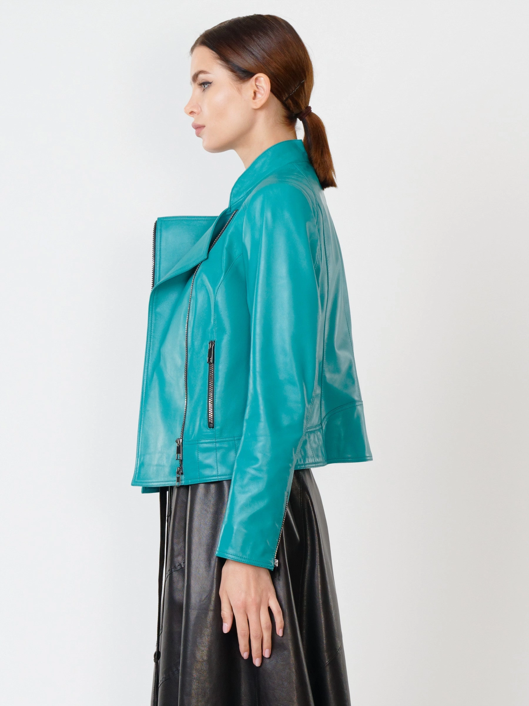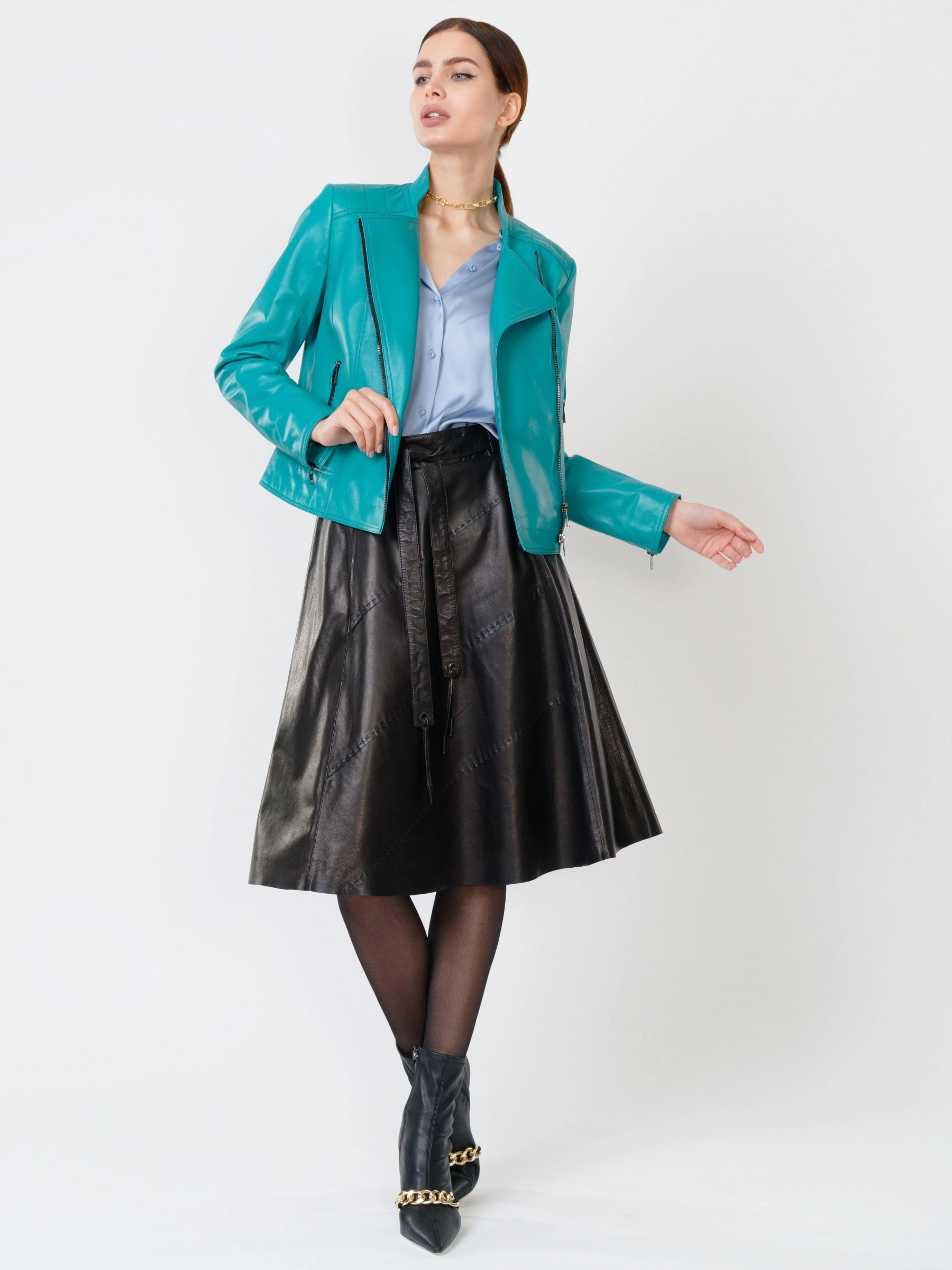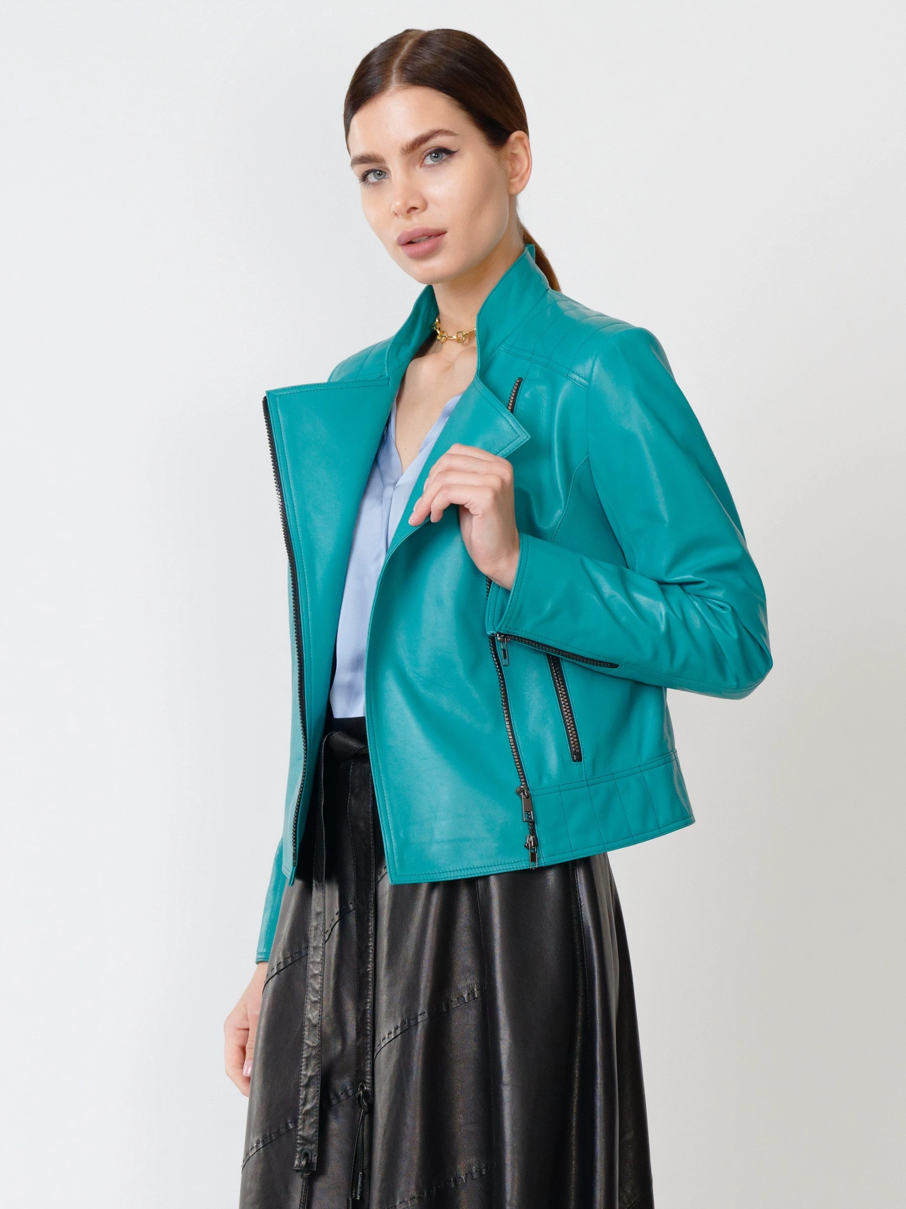 Кожаная куртка косуха женская 300, бирюзовая, размер 46, артикул 90951