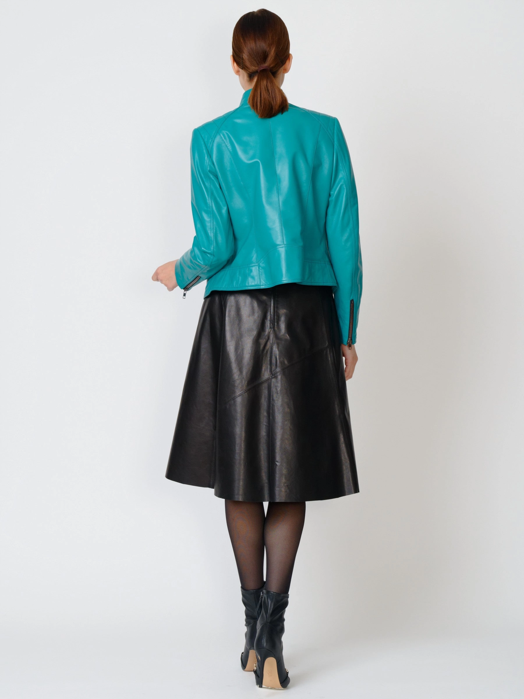 Товар кожаная куртка косуха женская 300, бирюзовая, размер 46, артикул 90951 выполнен из натуральной кожи с застежкой молния. Рассчитан на сезон: весна-лето. Длина изделия 50 см, силуэт полуприлегающий.