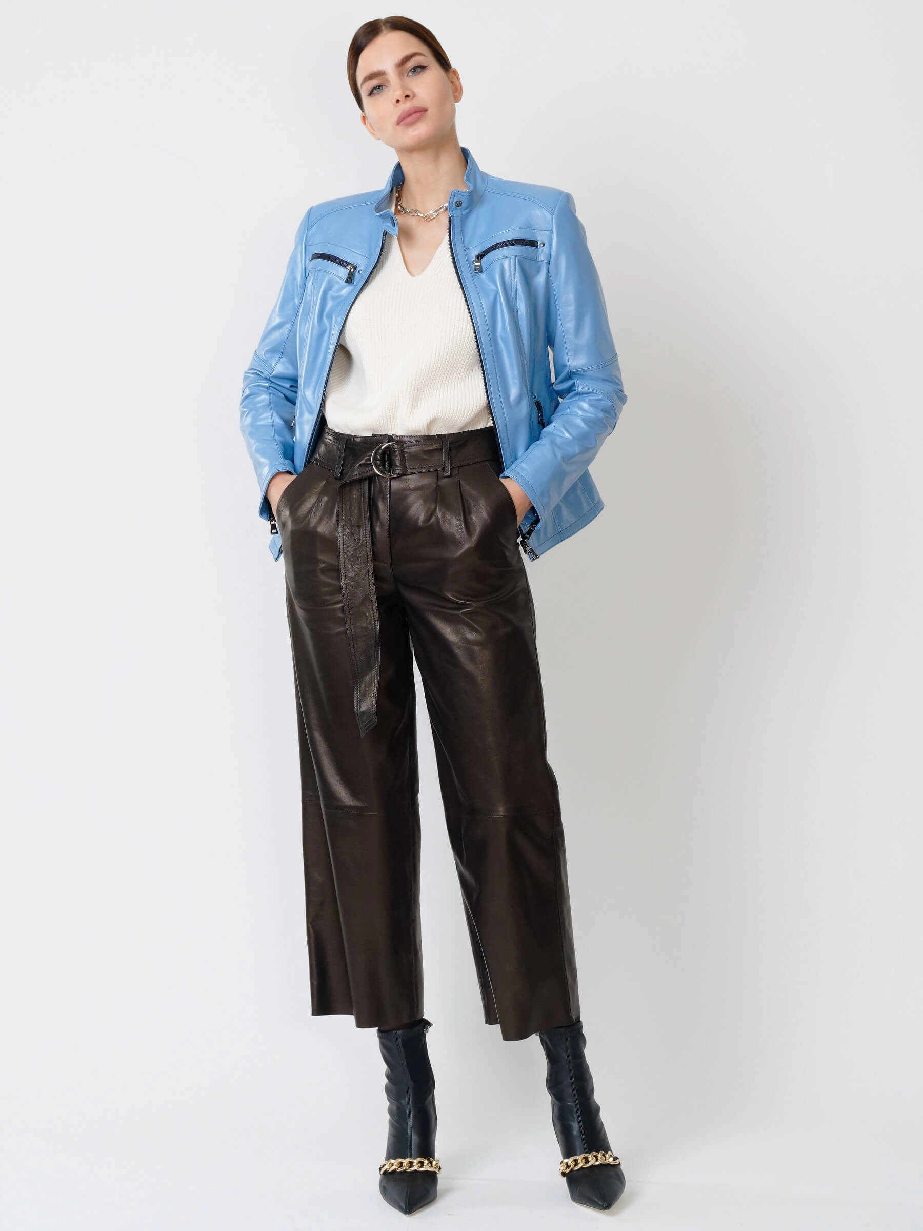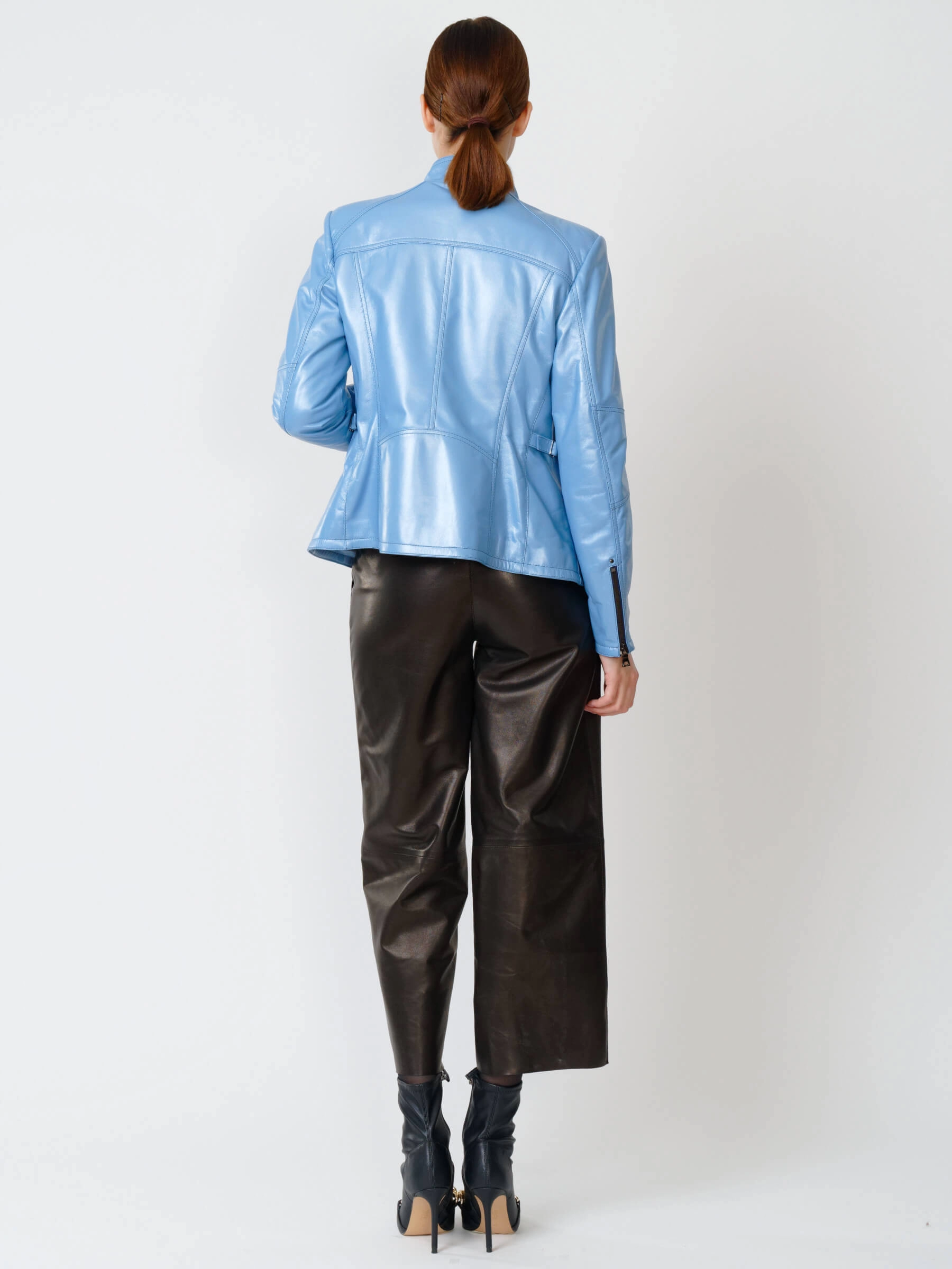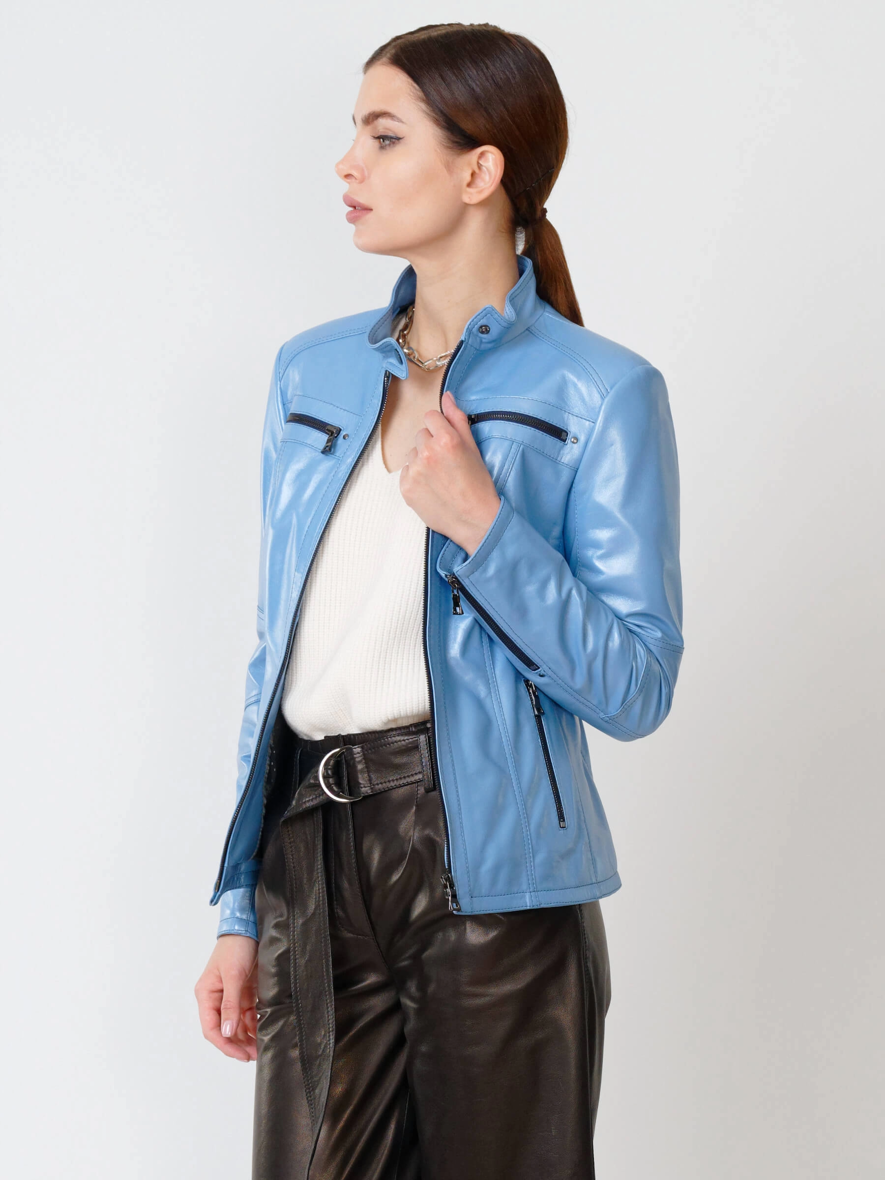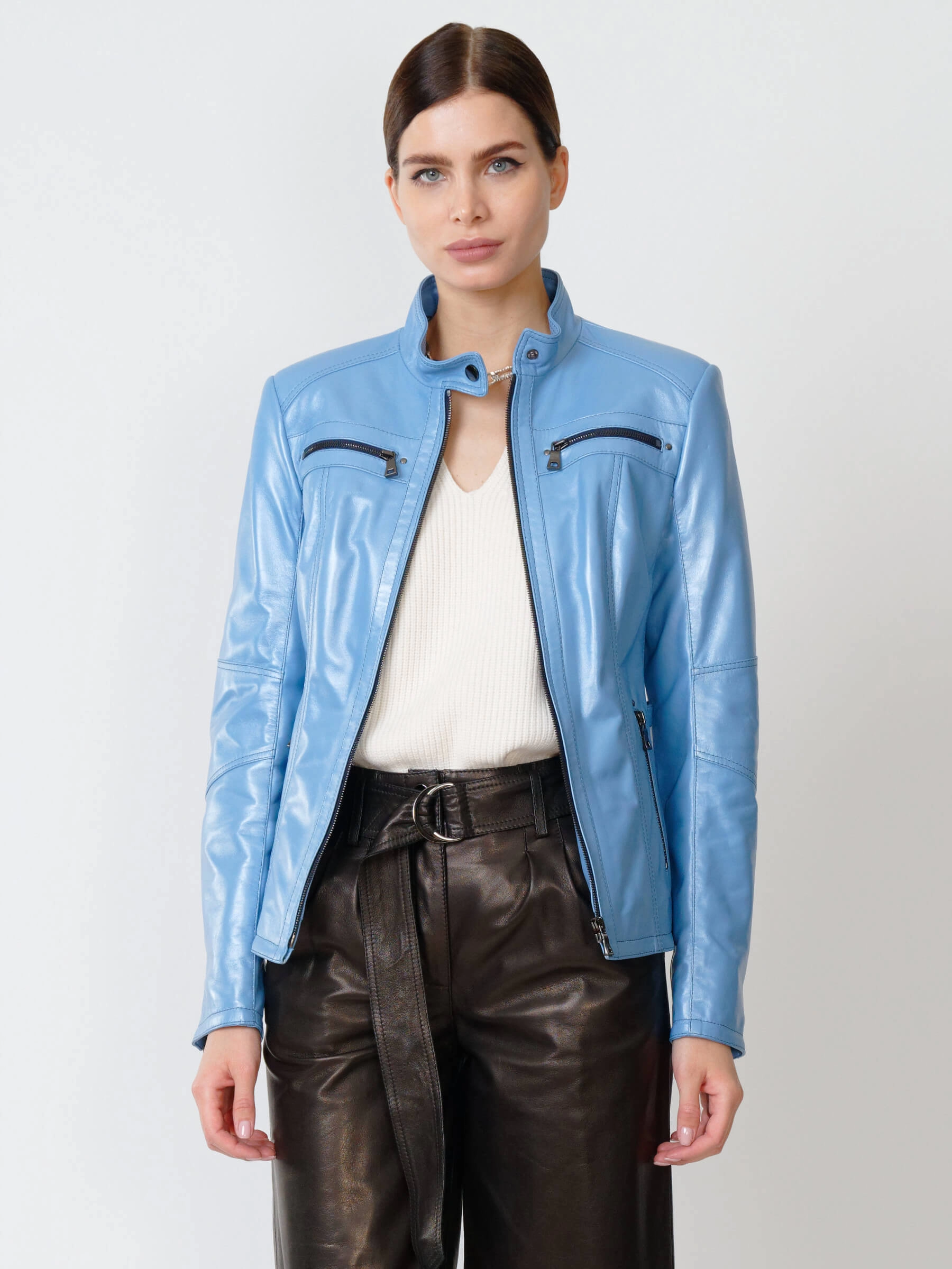 Кожаная куртка женская 301, голубой перламутр, размер 44, артикул 90790