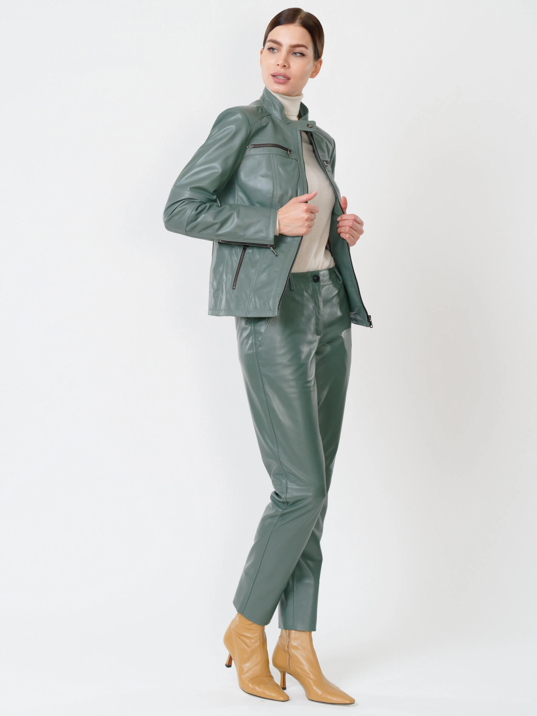 Товар кожаная куртка женская 301, оливковая, размер 44, артикул 90780 выполнен из натуральной кожи с застежкой молния. Рассчитан на сезон: весна-лето. Длина изделия 57 см, силуэт полуприлегающий.