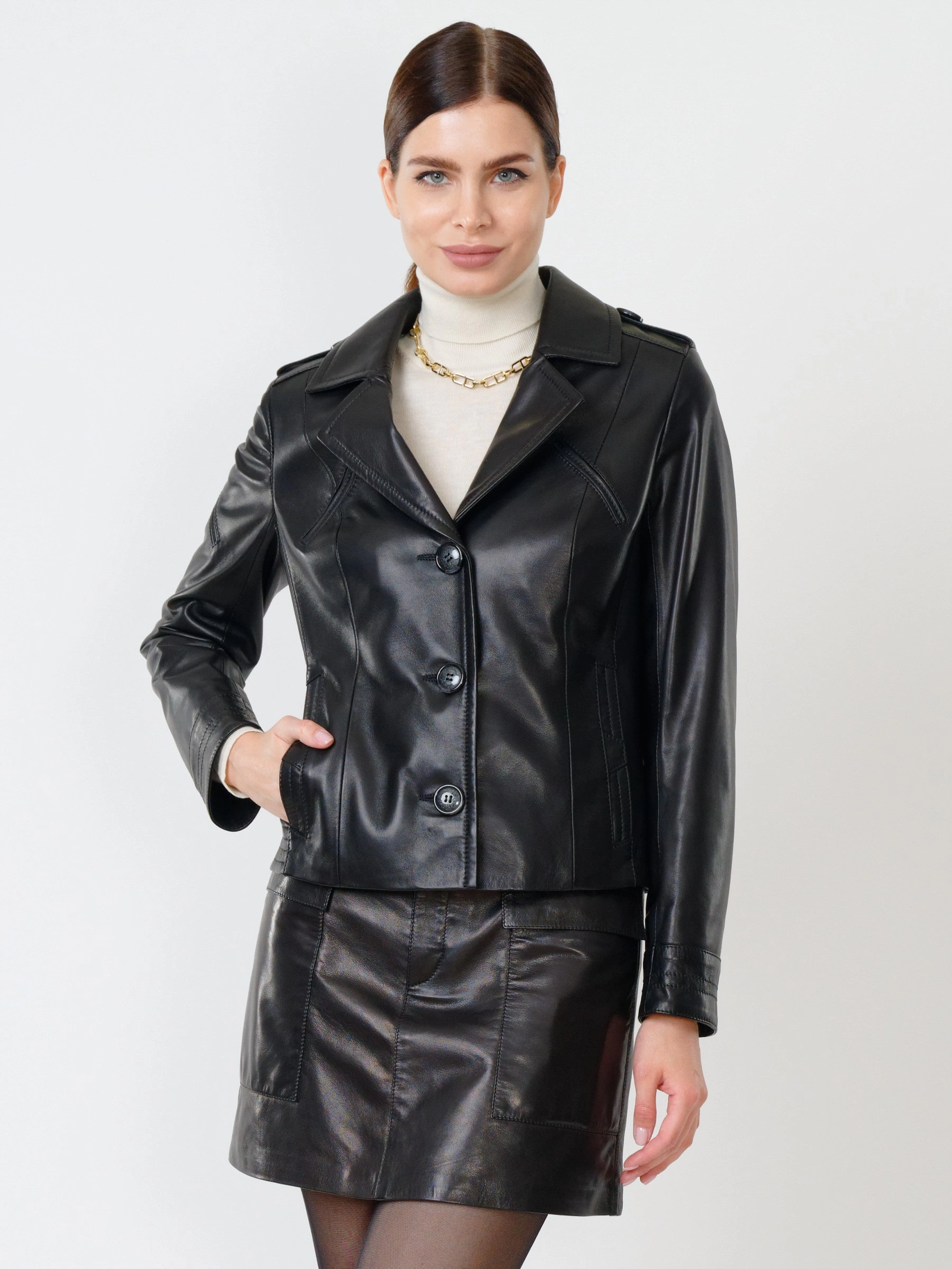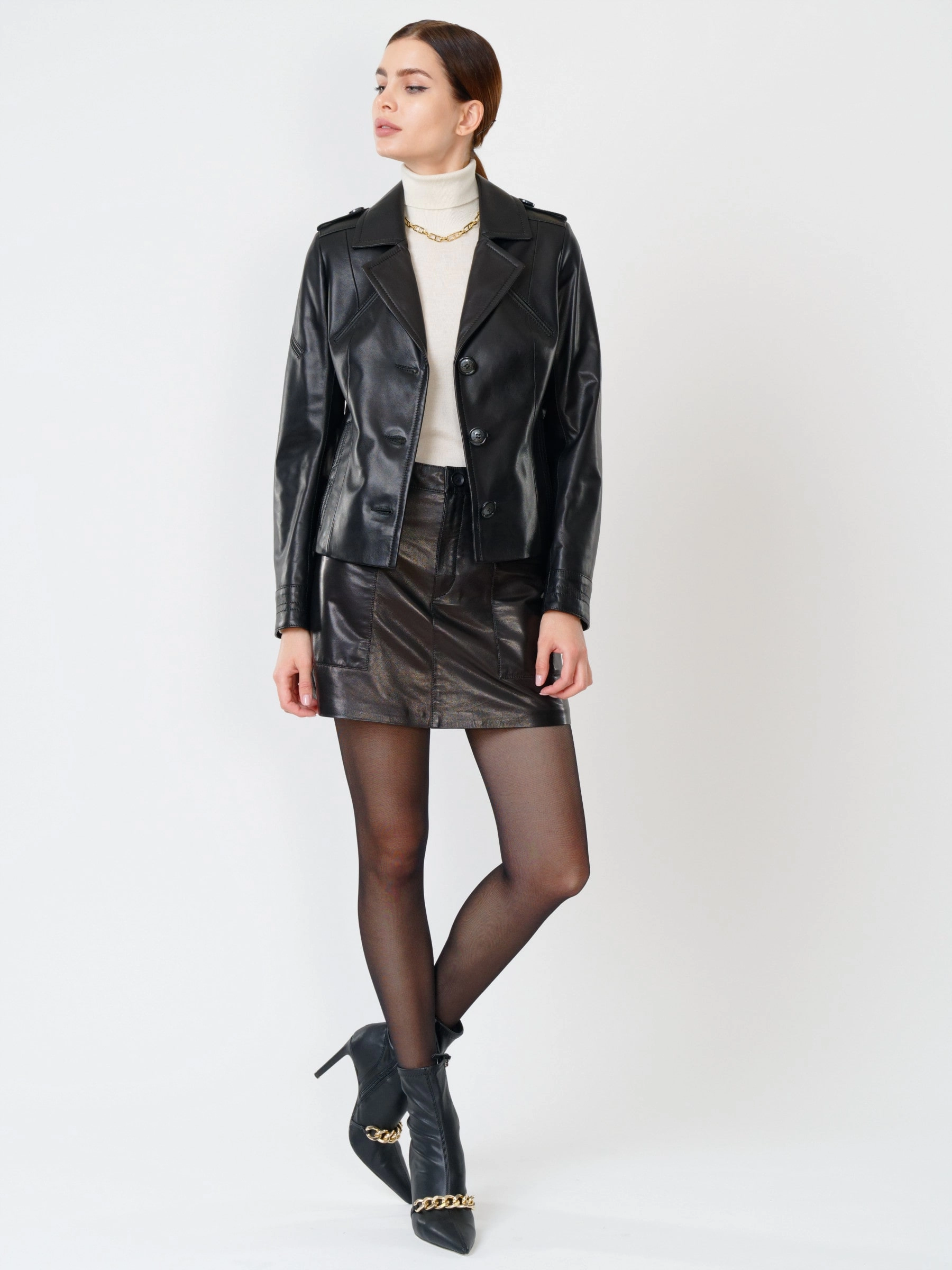 Короткая женская кожаная куртка пиджак 304, черная, размер 46, артикул 90812