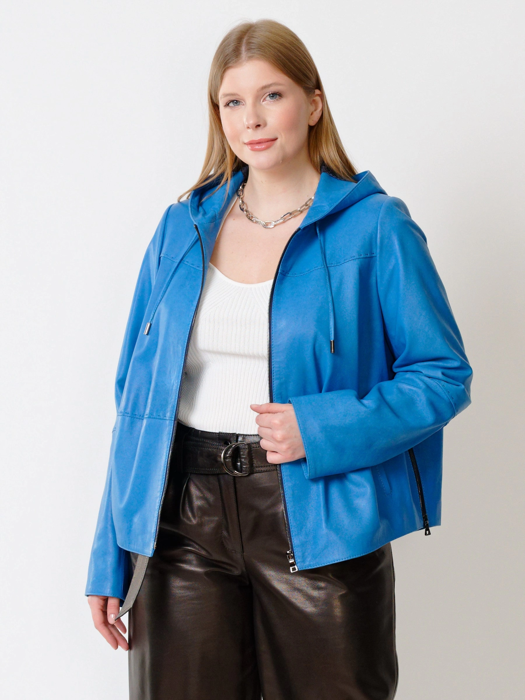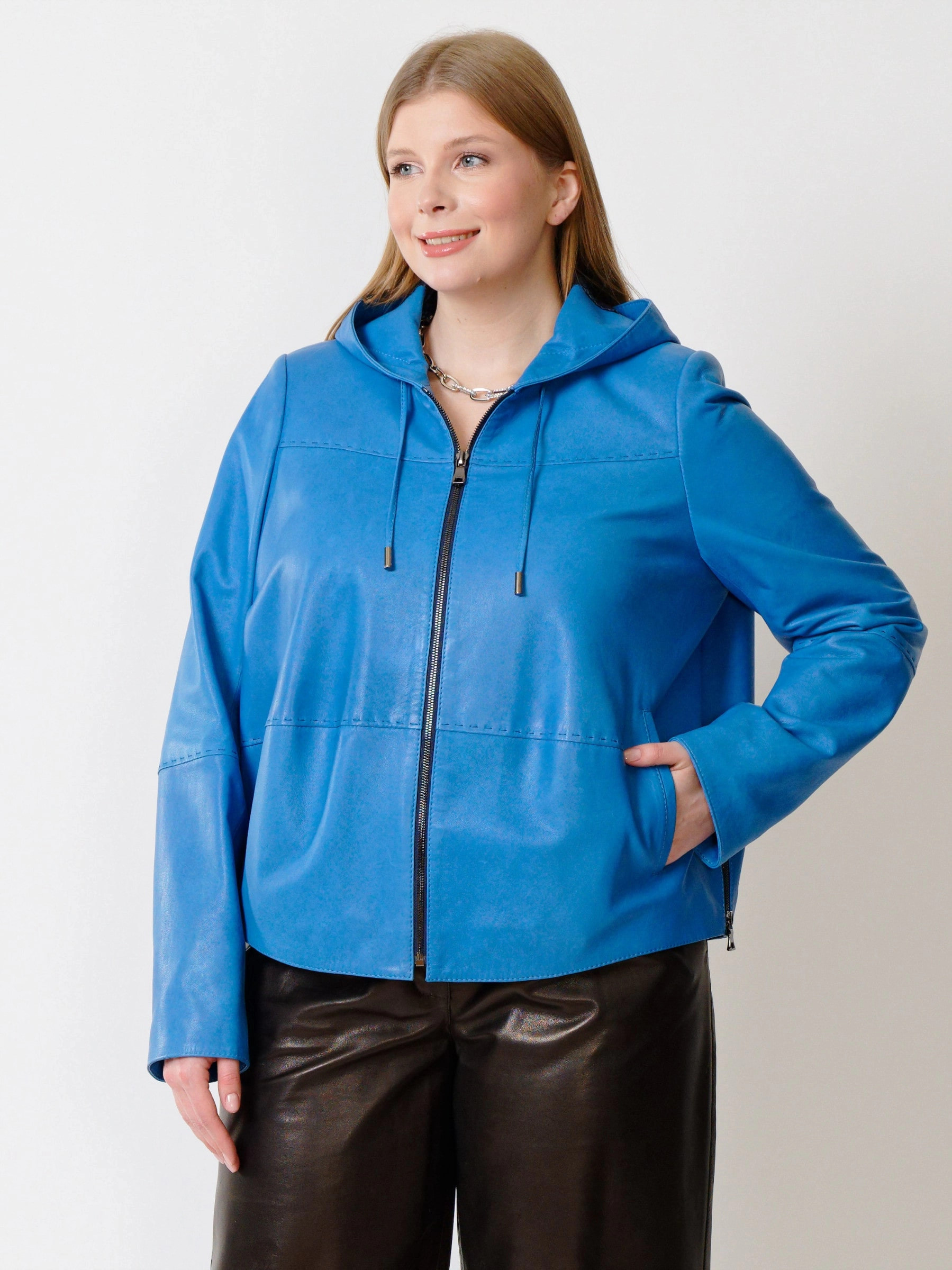 Женская кожаная куртка с капюшоном 308рс, голубая, размер 46, артикул 91221