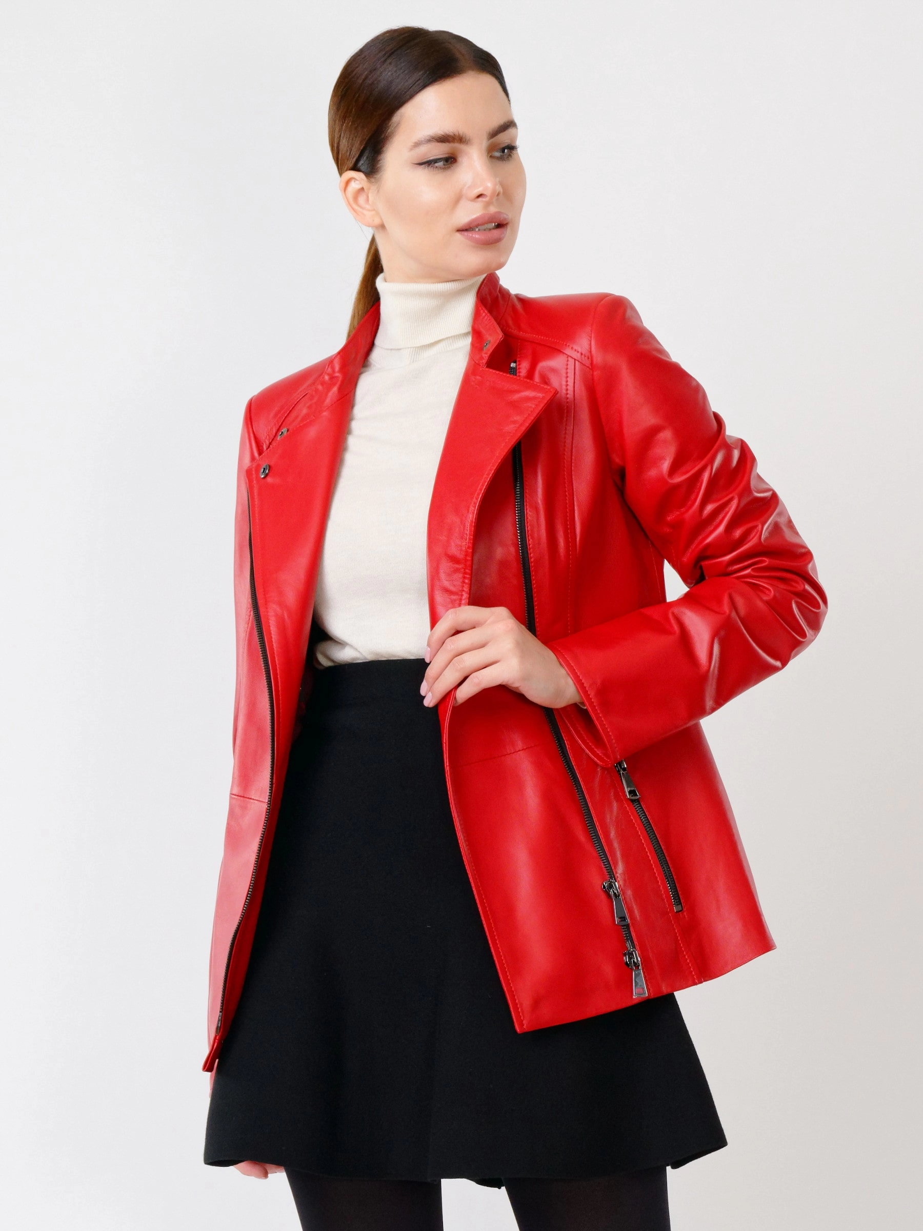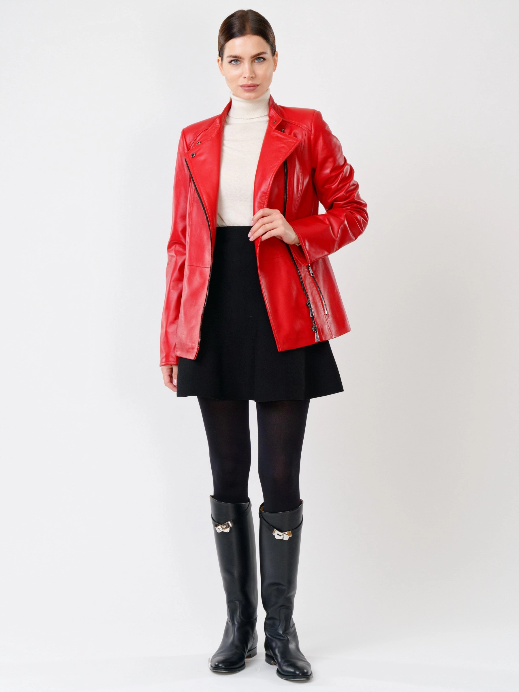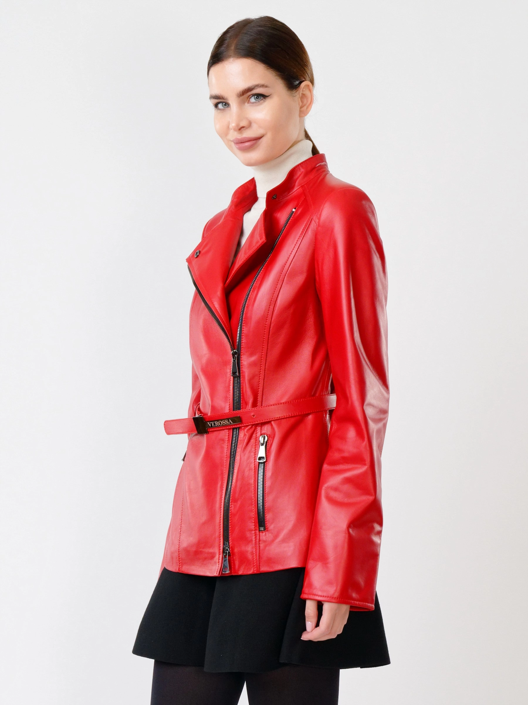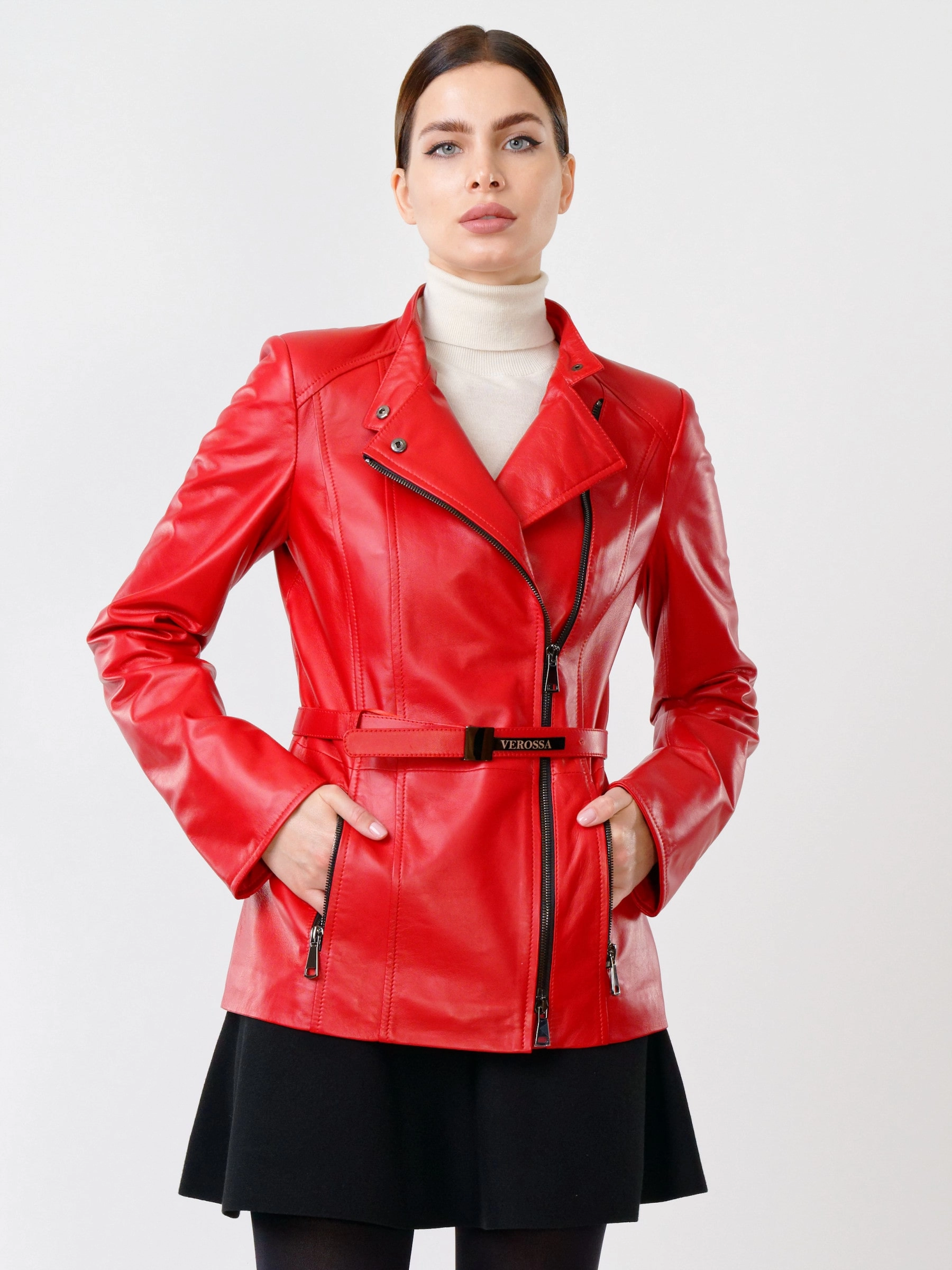 Товар женская кожаная куртка косуха с поясом 320(нв), красная, размер 46, артикул 90731 выполнен из натуральной кожи с застежкой молния. Рассчитан на сезон: весна-лето. Длина изделия 67 см, силуэт полуприлегающий.